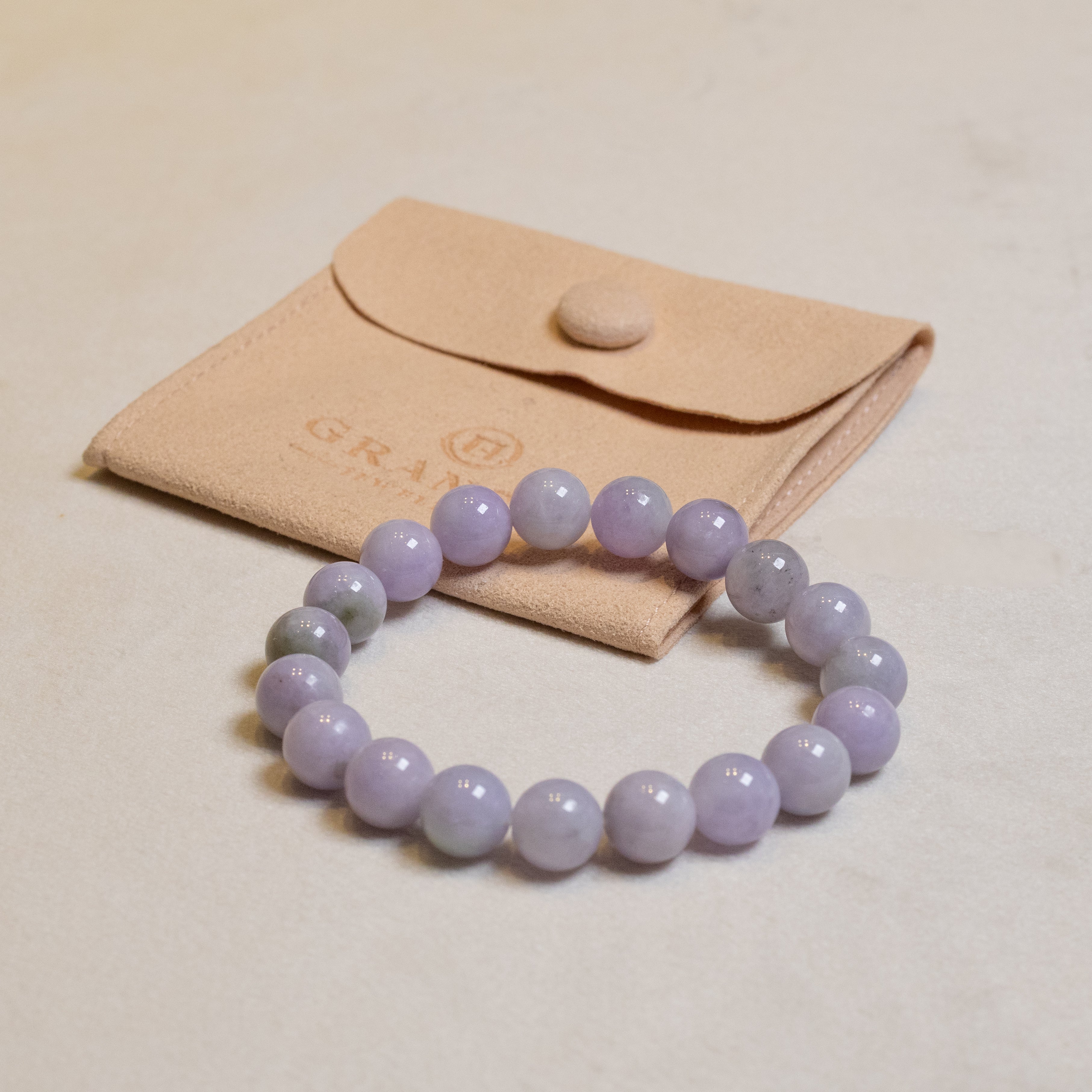 Entdecken Sie unsere klassischen Armbänder aus lila Jadeperlen für Ihr Alltagsoutfit. Sie sind aus natürlichem burmesischen Jadeit Typ A gefertigt. Entdecken Sie helle Jadearmbänder, Edelsteinperlen und Bettelarmbänder, die zu unseren anderen Jadeitkollektionen passen. Das Armband ist mit einem Gummiband versehen, das für bequemes Tragen und Komfort sorgt.
