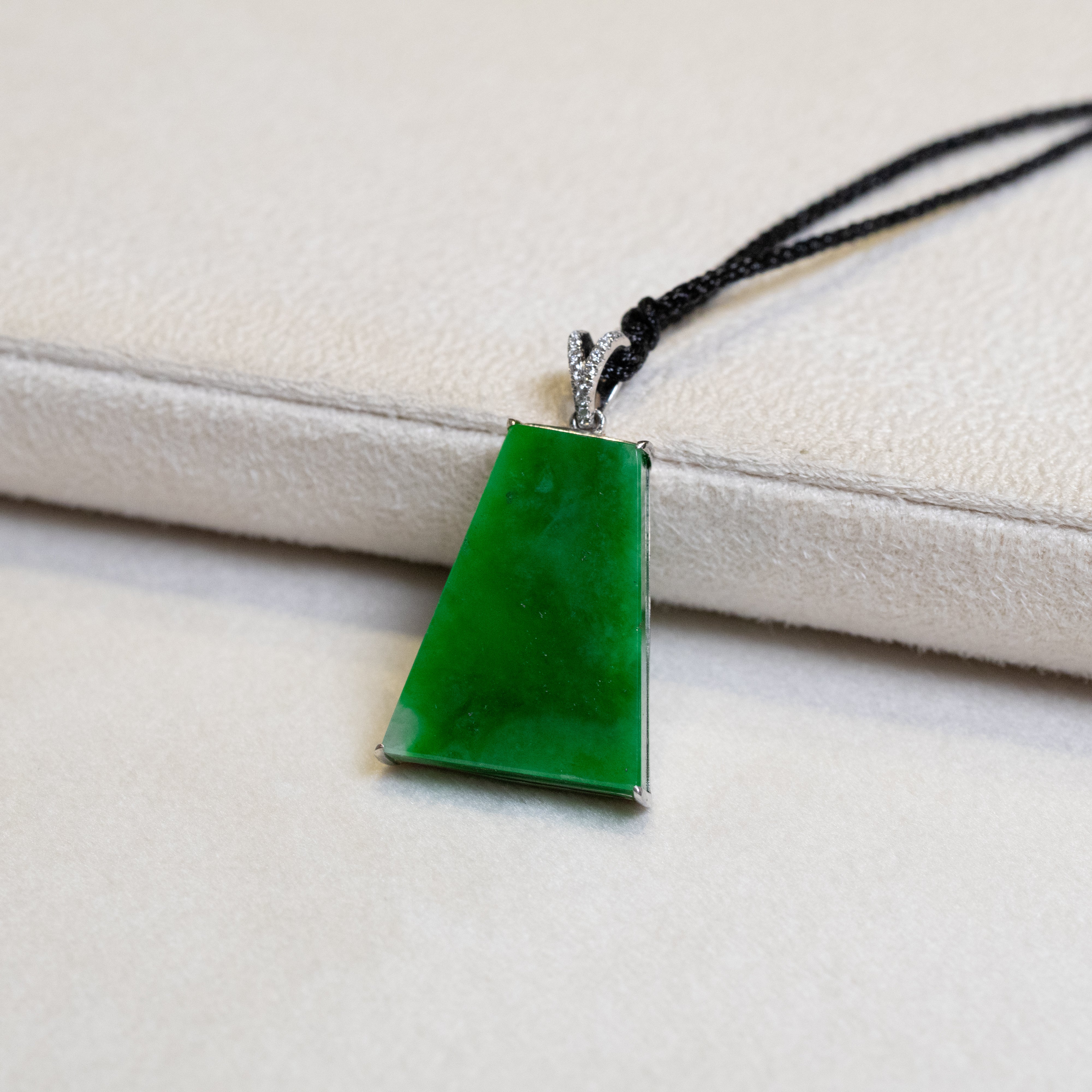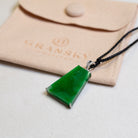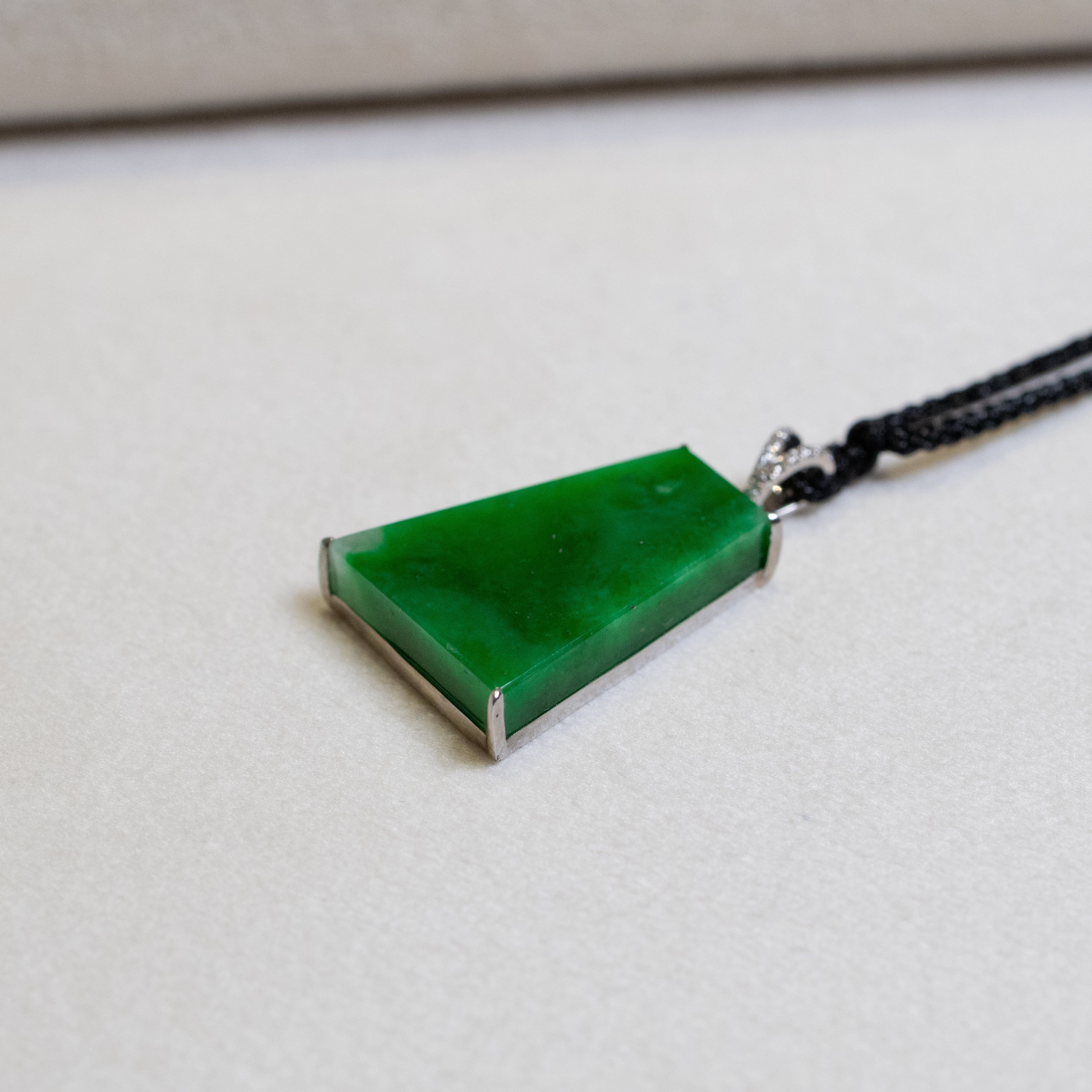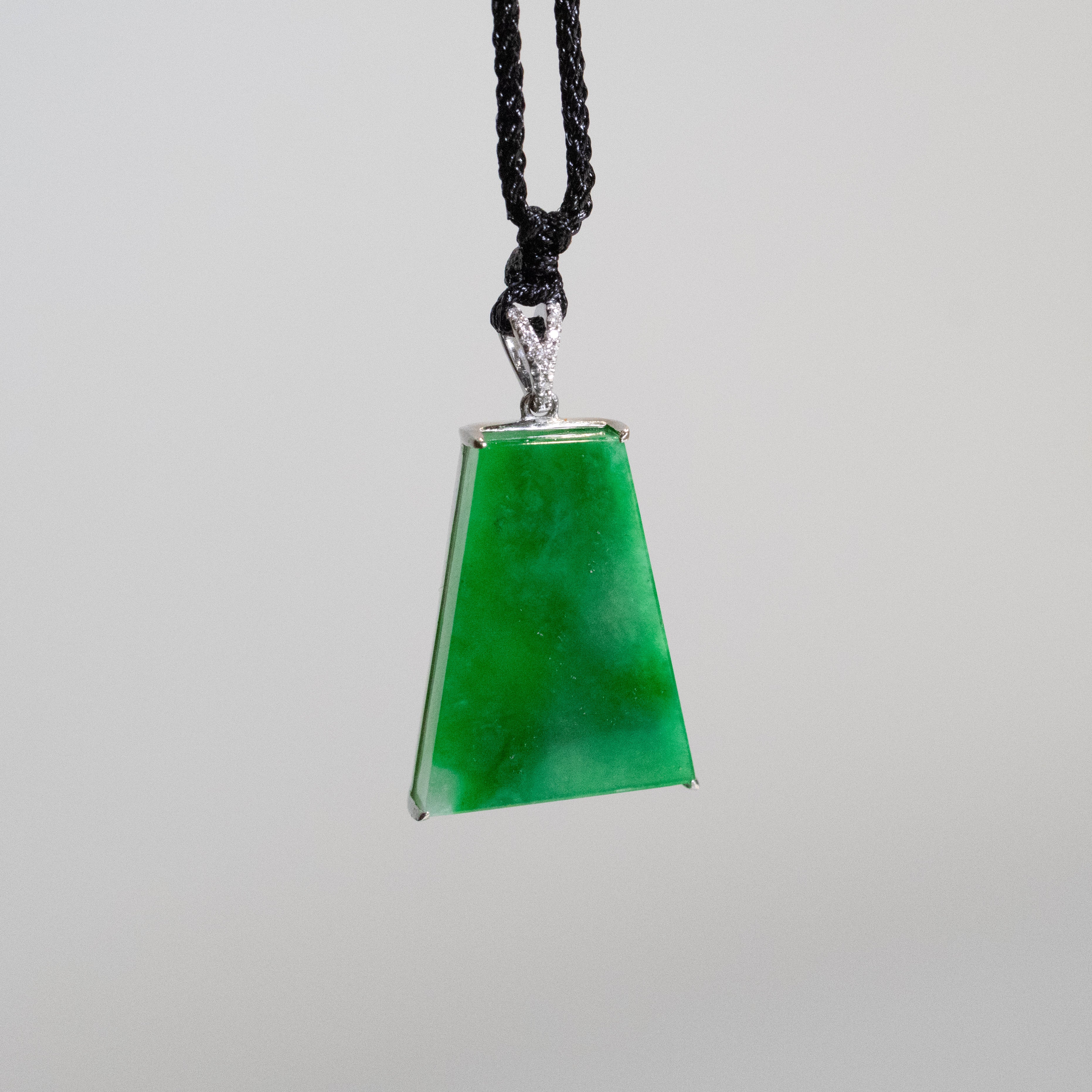Green Jade Block Pendant in 18K White Gold with Diamonds - Certified Type-A Jadeite (Certificate Included)