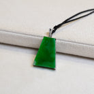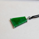 ✅Enhance your jewelry collection with this captivating pendant featuring a trapezoid-shaped jade block in an 18k white gold clasp. The elegant gold beautifully complements the jade's rich green hue. Sparkling diamond accents add a dazzling touch, creating a mesmerizing interplay of light. With its exquisite craftsmanship and timeless design, this pendant is a stunning statement piece that combines sophistication and natural beauty.