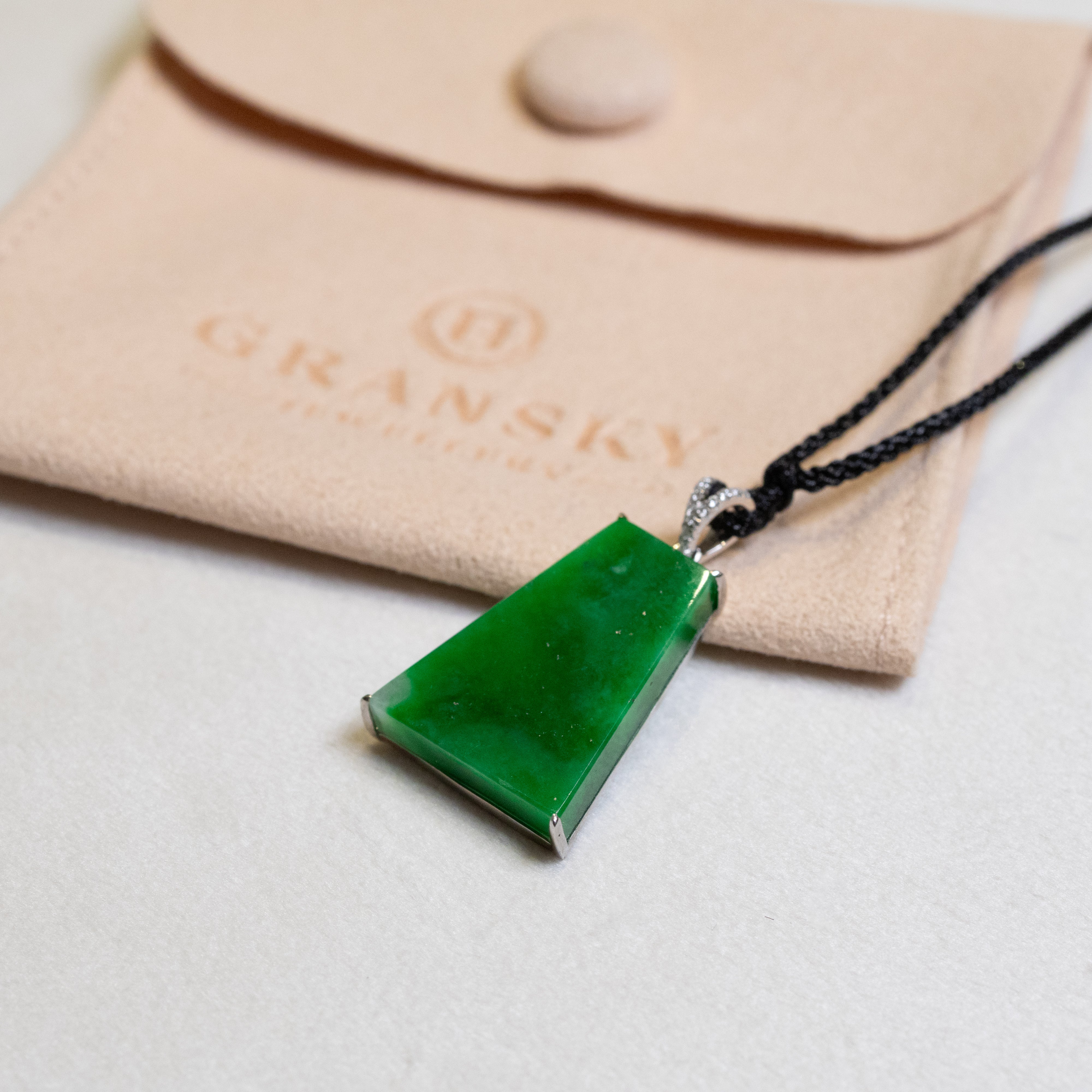 At Gransky, every piece of jade that is used in our jewelry is guaranteed to be created from natural jade rough and of Hong Kong Jade & Stone Laboratory Ltd. (HKJSL) certifiable jadeite grade in type A. That is 100% natural and free from any form of chemical treatment.
