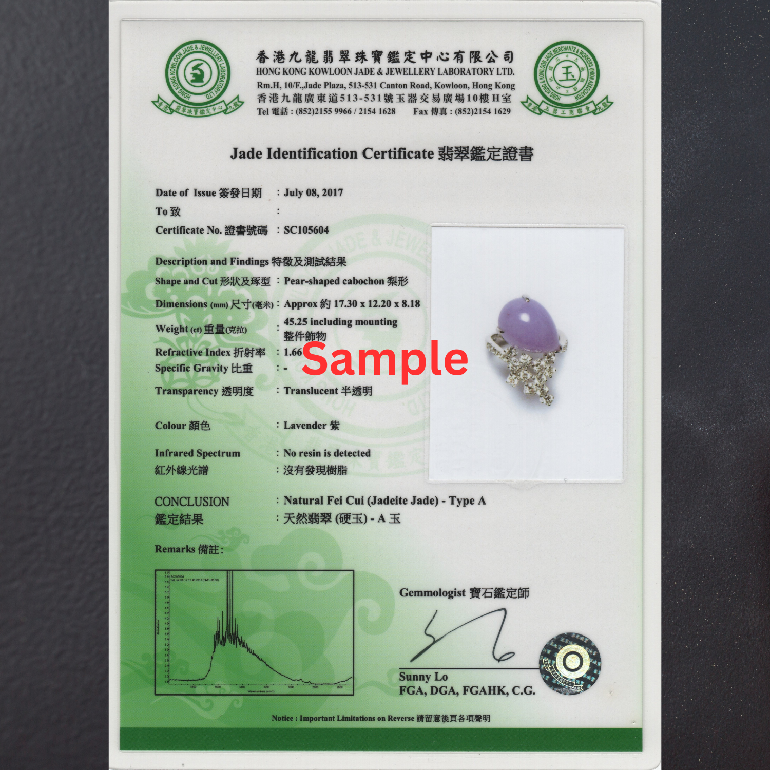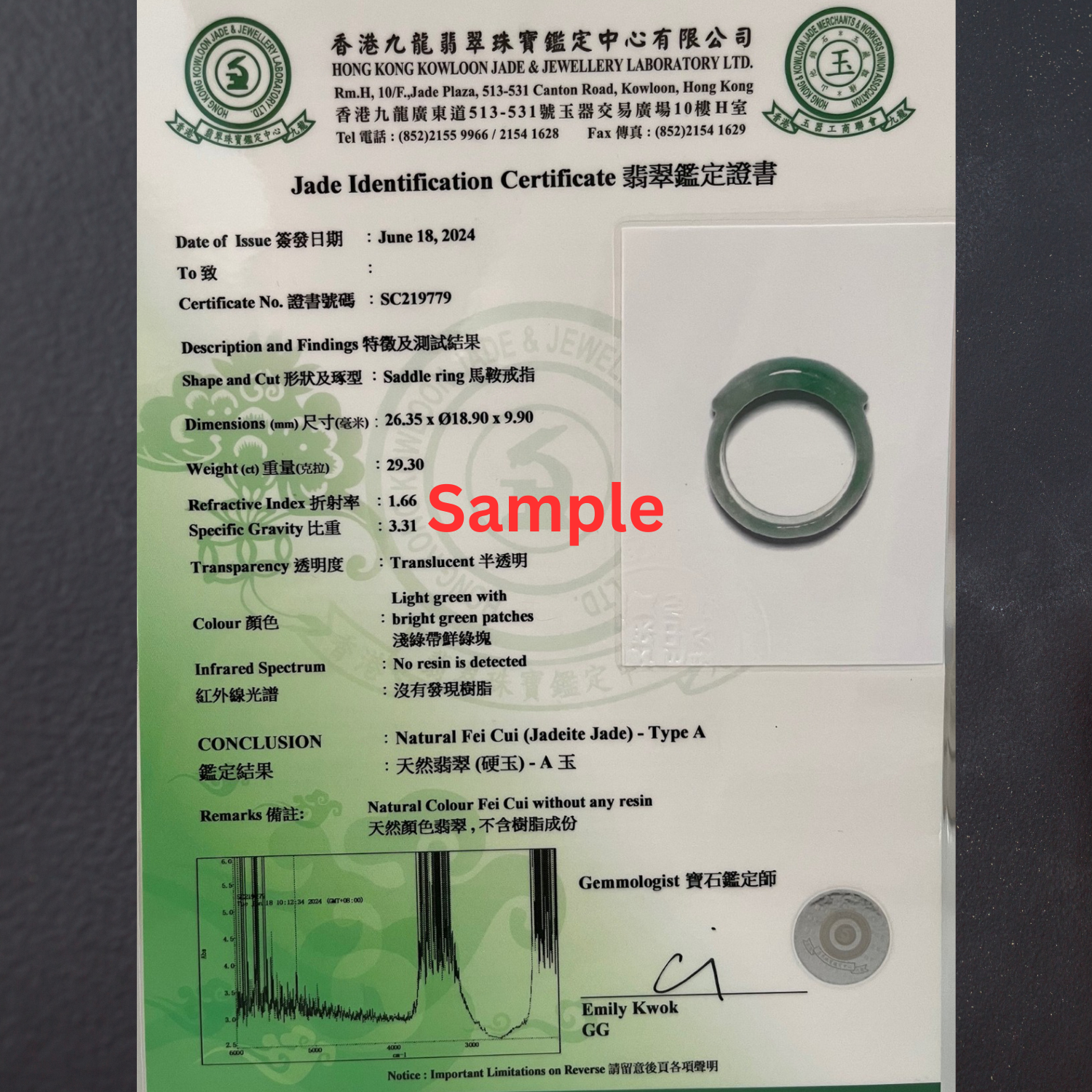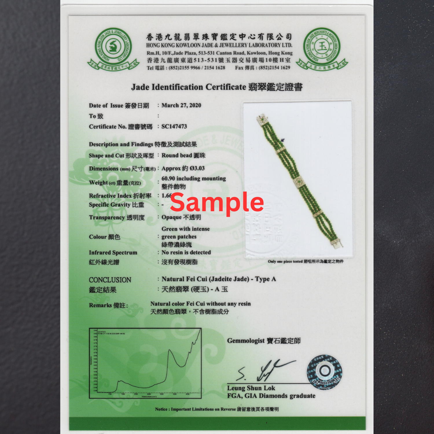 Jadeite Certification Service (HKJSL) – Official Laboratory Report (Non-Refundable Service)
