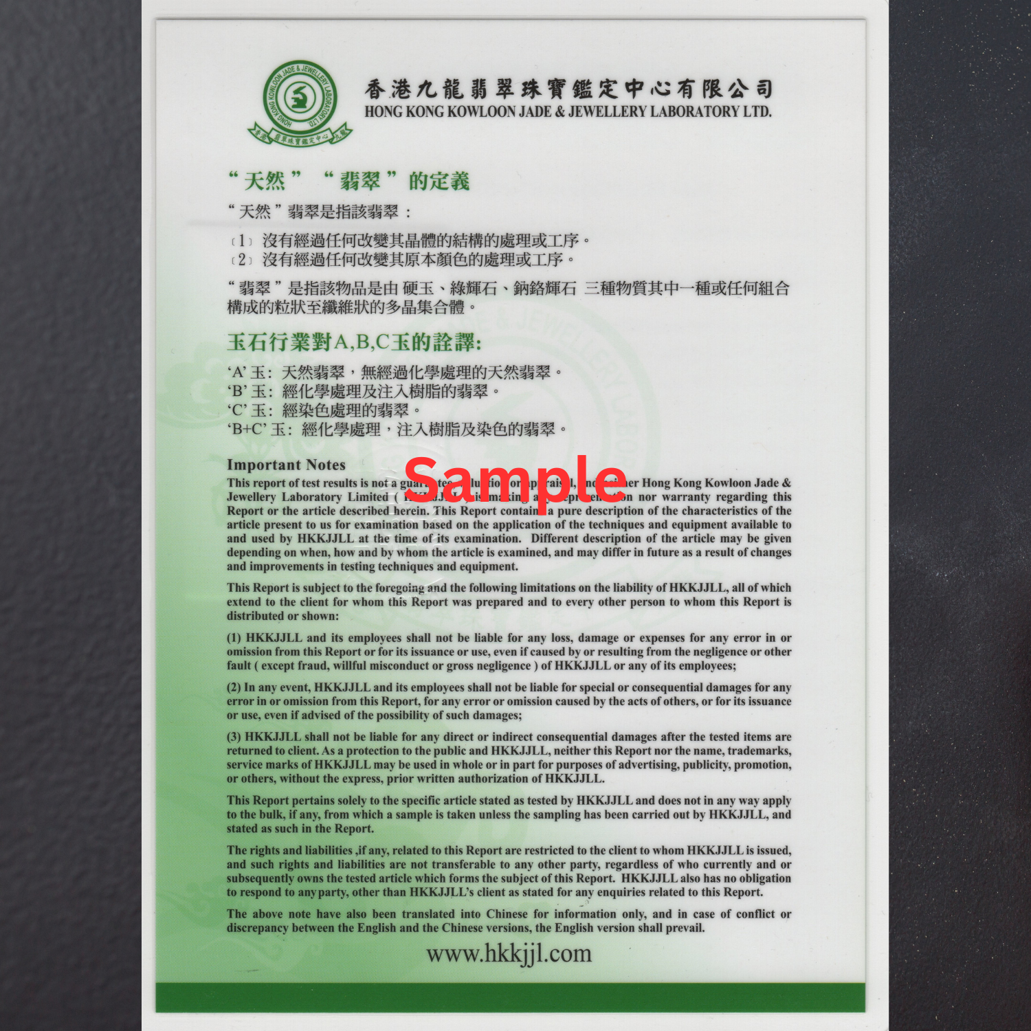 Jade Authenticity Certificate by HKKJJLL – Hardcopy or Scanned (Non-Refundable Service)