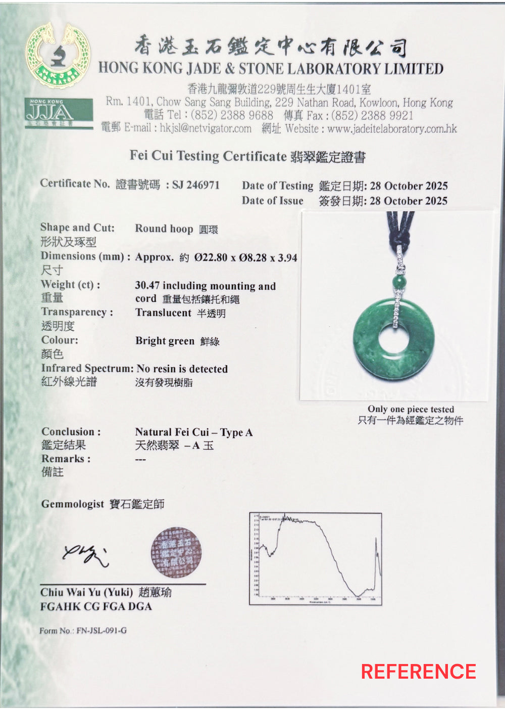 Jadeite Certification Service (HKJSL) – Official Laboratory Report (Non-Refundable Service)
