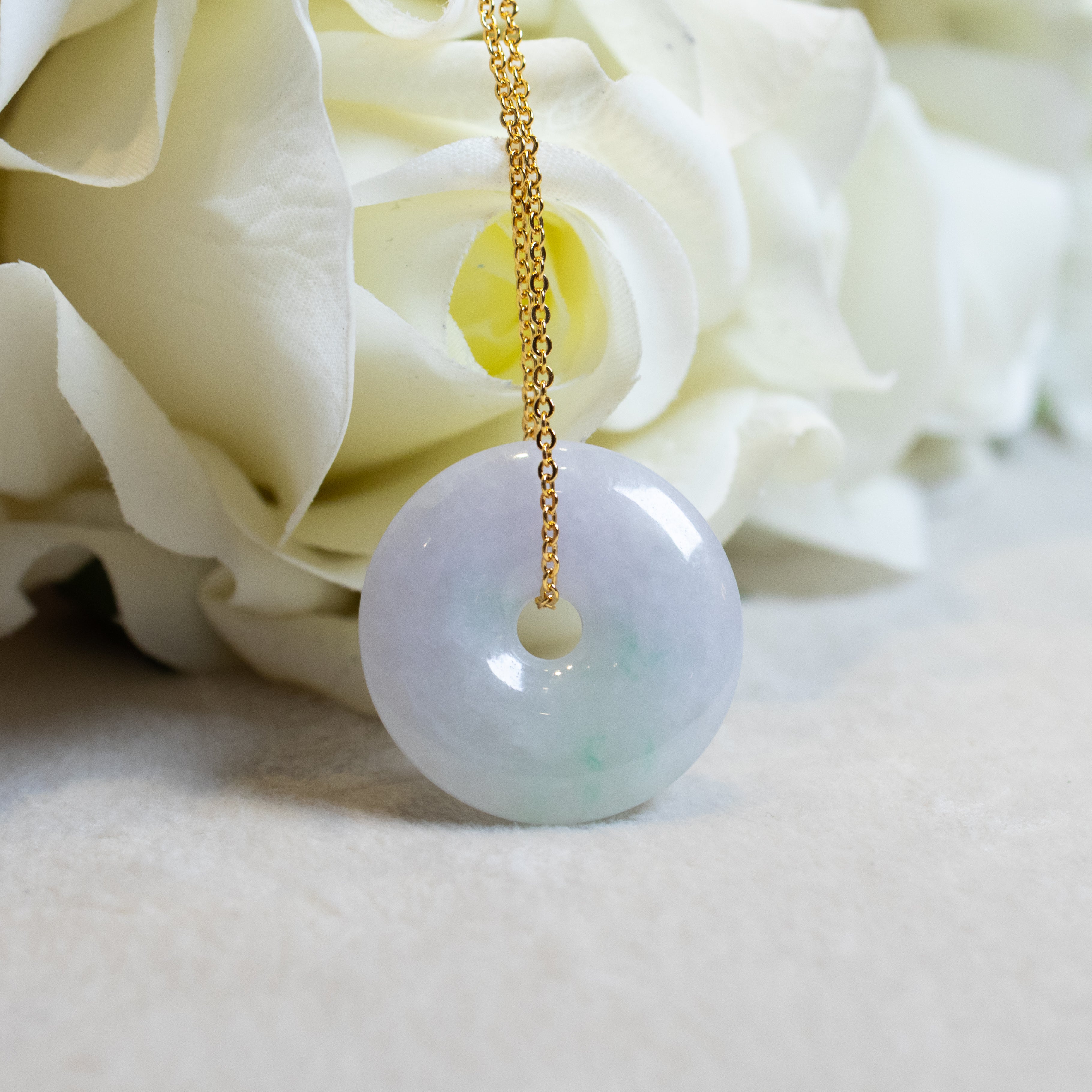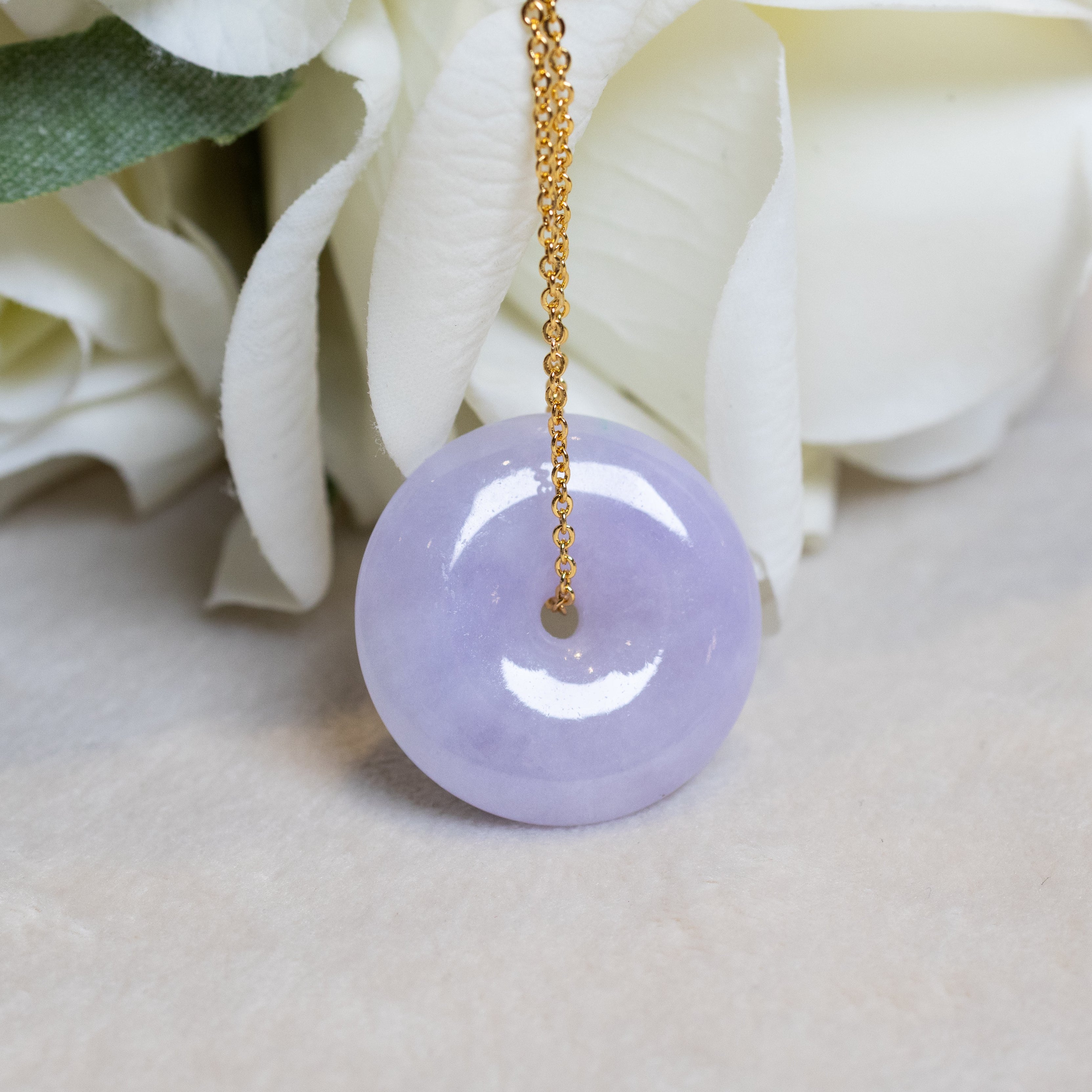 Purple Jade Donut Pendant Necklace - Type-A Burmese Jadeite