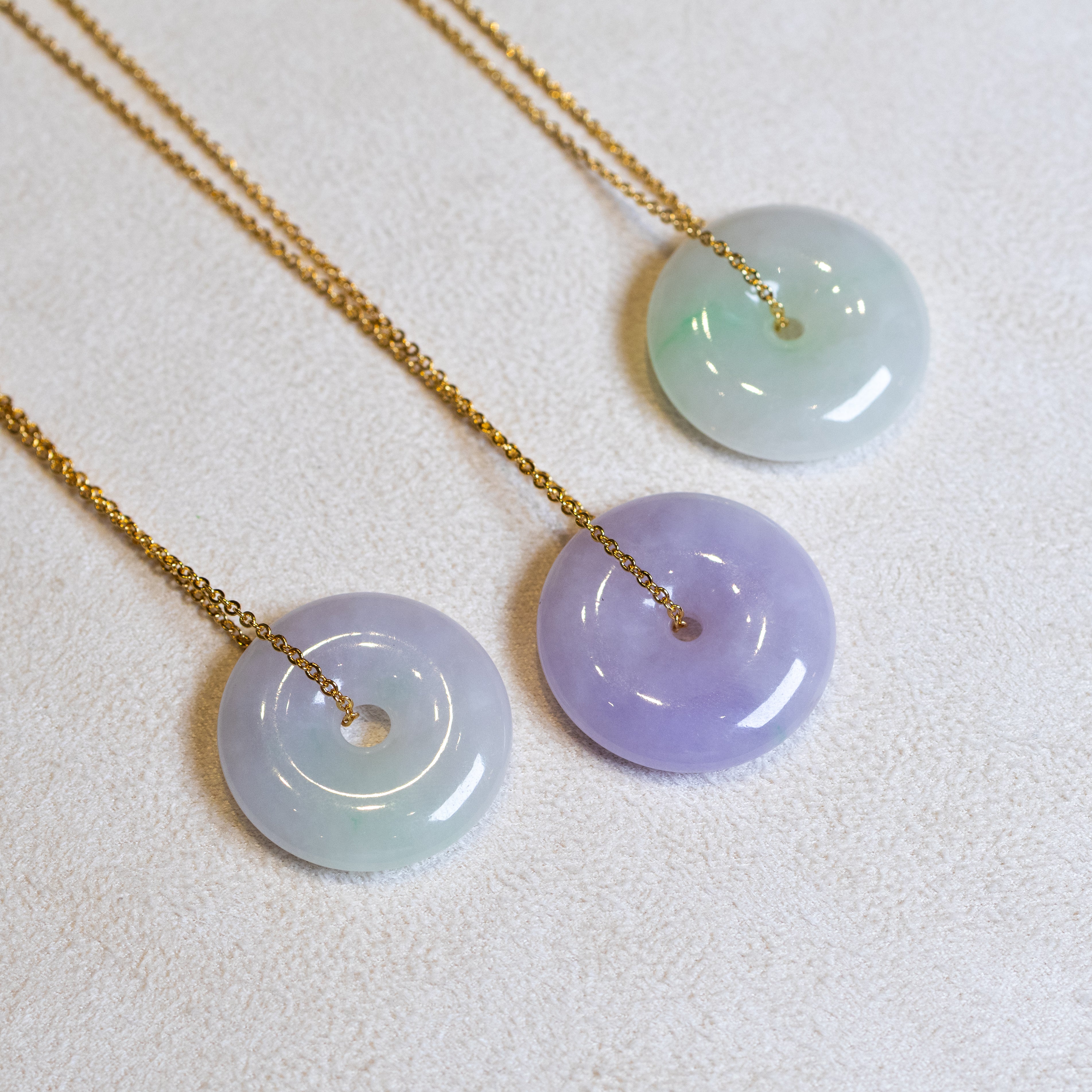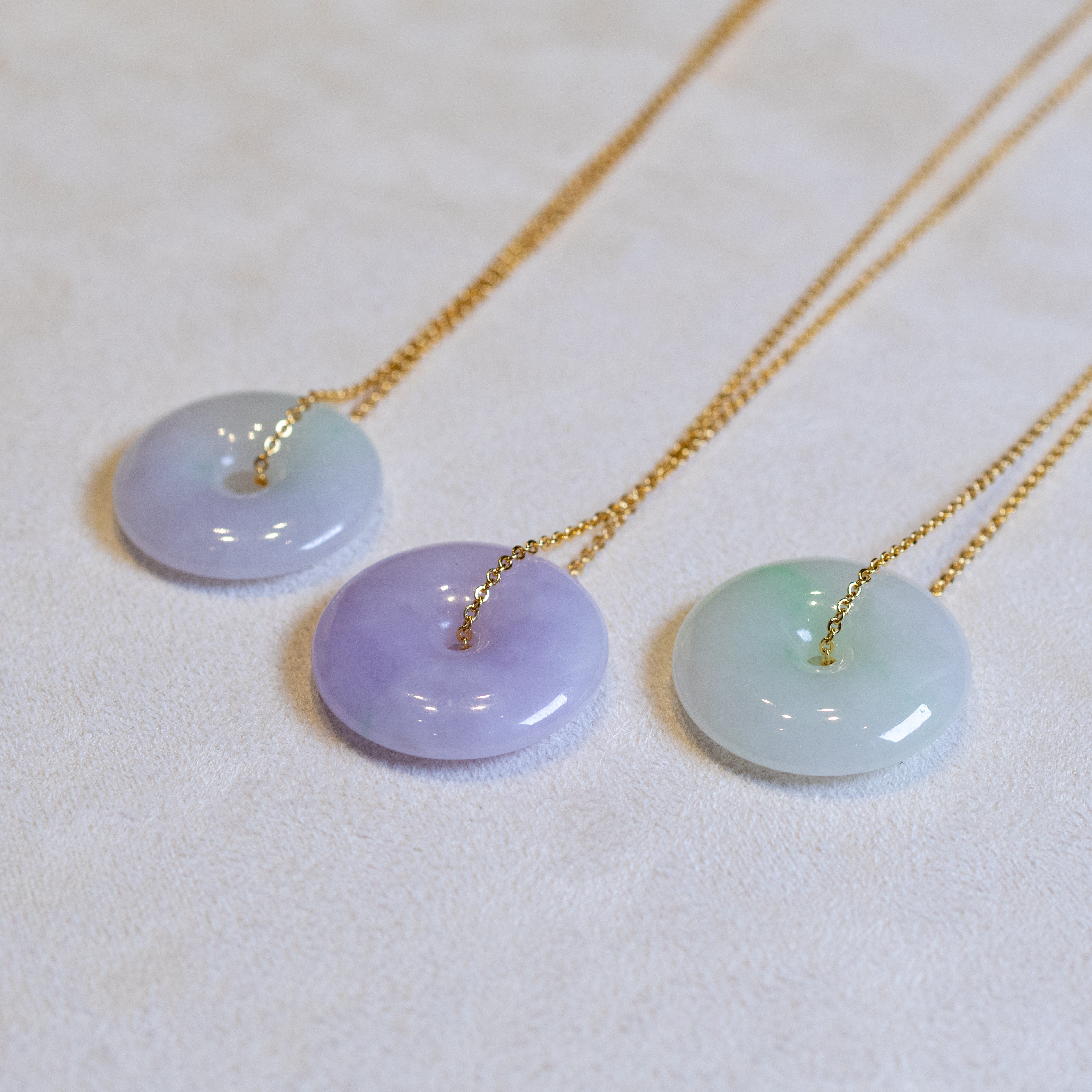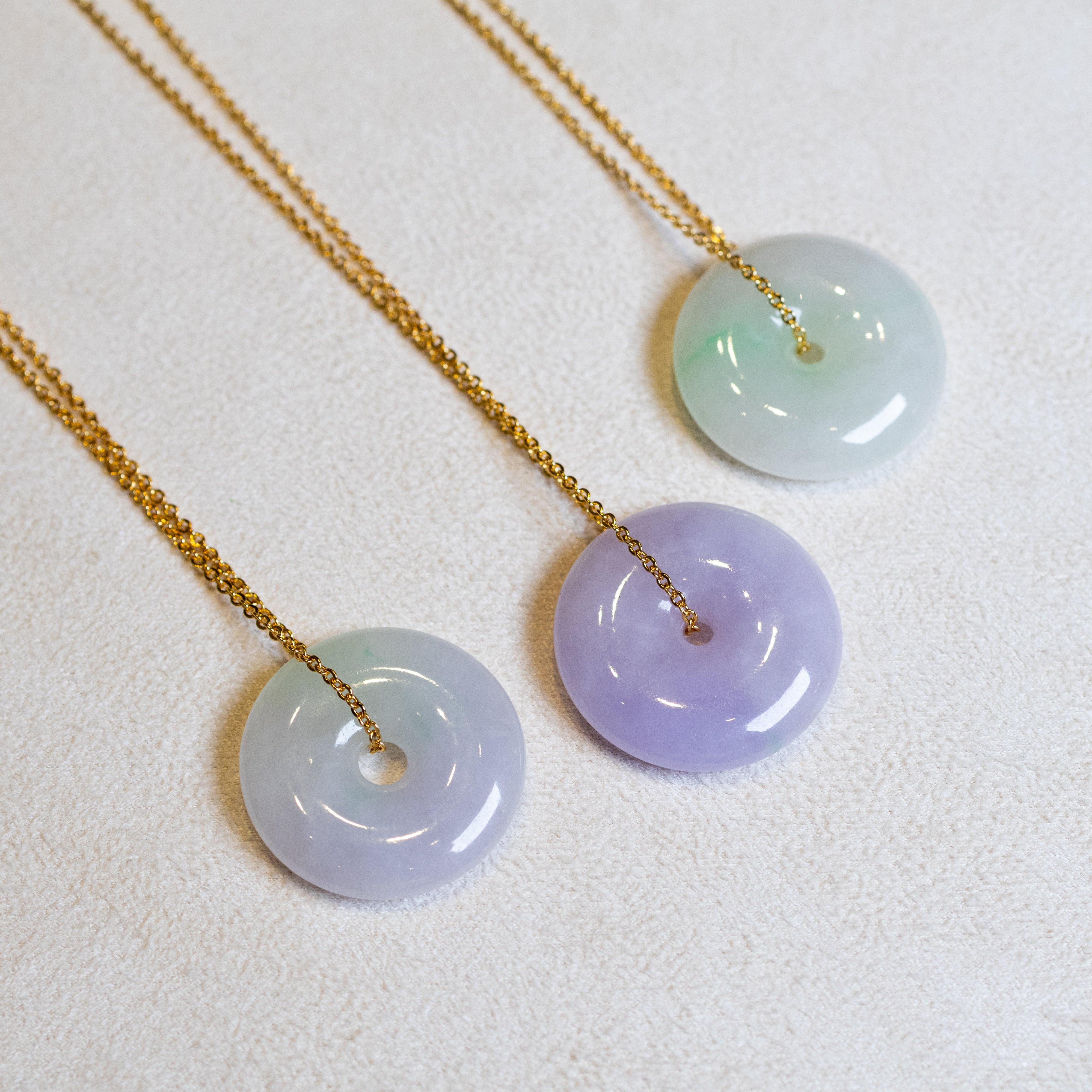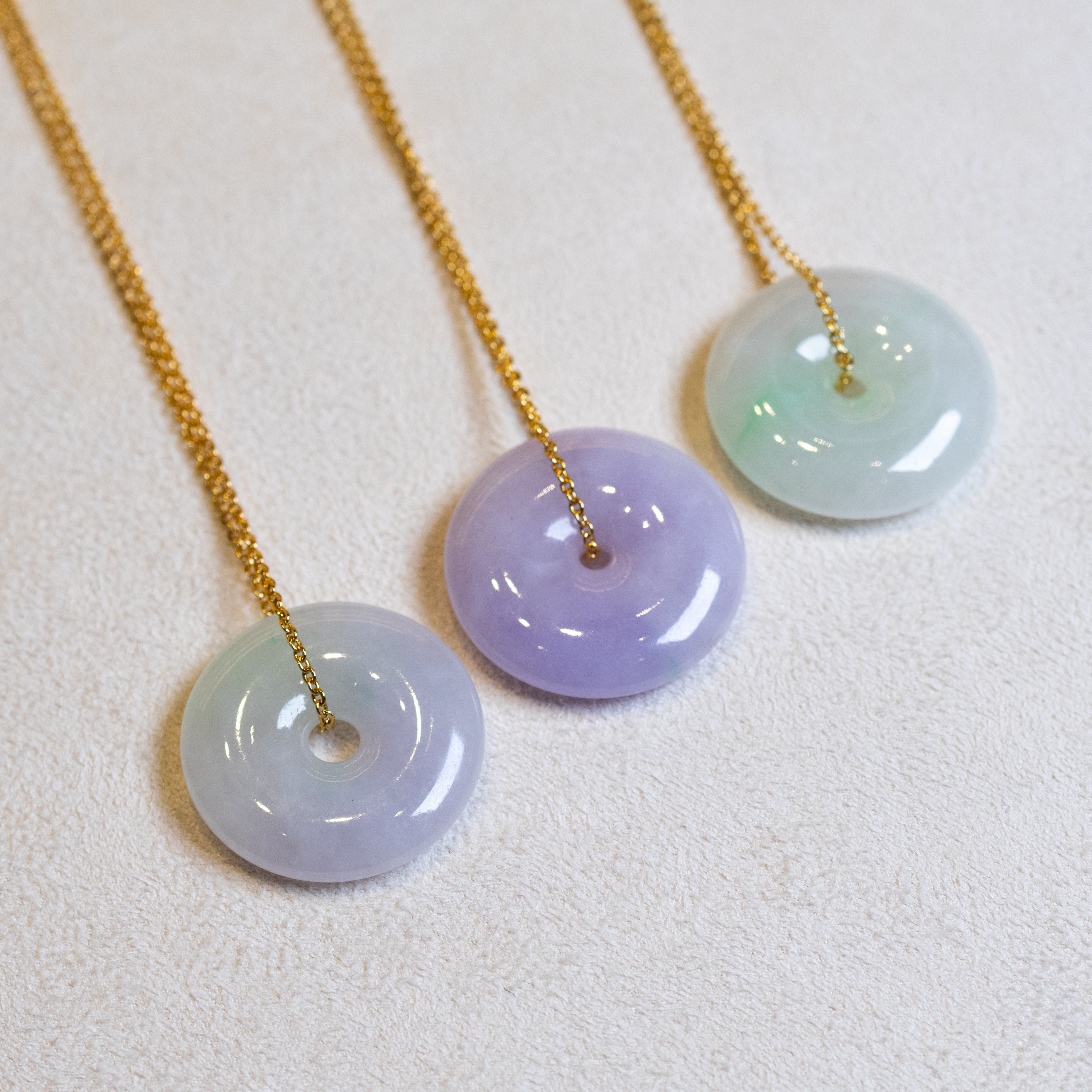 ✅These Purple Round Donut-Shaped Pendant Necklace features natural untreated Type-A Burmese jadeite in a vibrant purple hue. All of these round purple pendants offers distinct color distribution, hue, and intensity for a one-of-a-kind look. Handcrafted in Hong Kong, the design blends modern elegance with exceptional craftsmanship. The pendant pairs with your choice of an 18k gold or 925 sterling silver gold-plated necklace. Perfect for a standout, timeless jewelry piece.