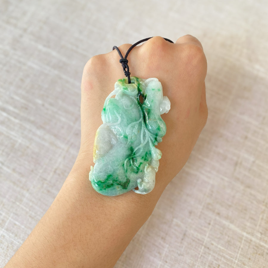 Gransky Handmade Jadeite Lime Green Peach Jade Pendant Necklace