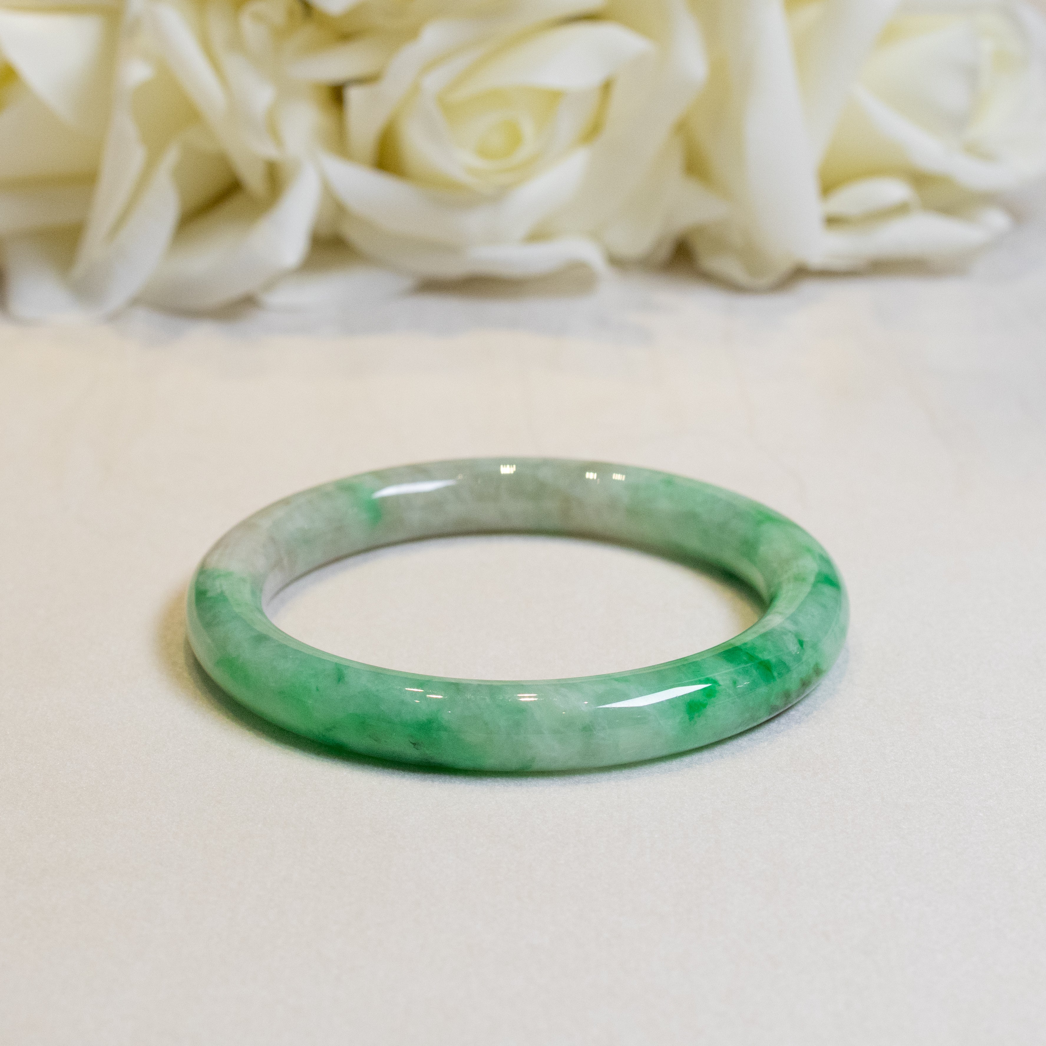 56mm Apple Green Color Jadeite Bangle – Untreated Natural Type-A Burmese Jadeite