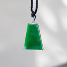Green Jade Block Pendant in 18K White Gold with Diamonds - Certified Type-A Jadeite (Certificate Included)