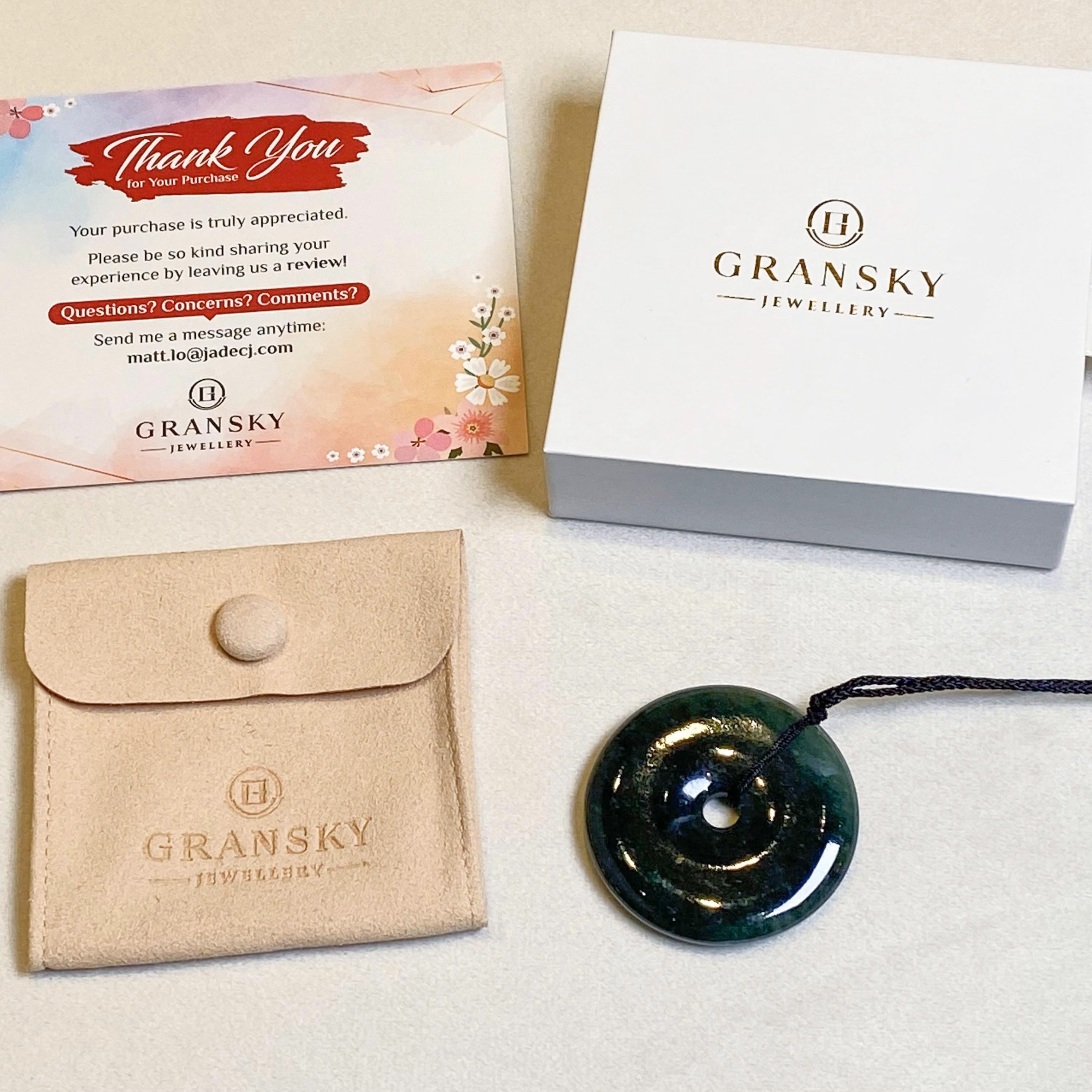 At Gransky, every piece of jade that is used in our jewelry is guaranteed to be created from natural jade rough and of Hong Kong Jade & Stone Laboratory Ltd. (HKJSL) certifiable jadeite grade in type A. That is 100% natural and free from any form of chemical treatment.