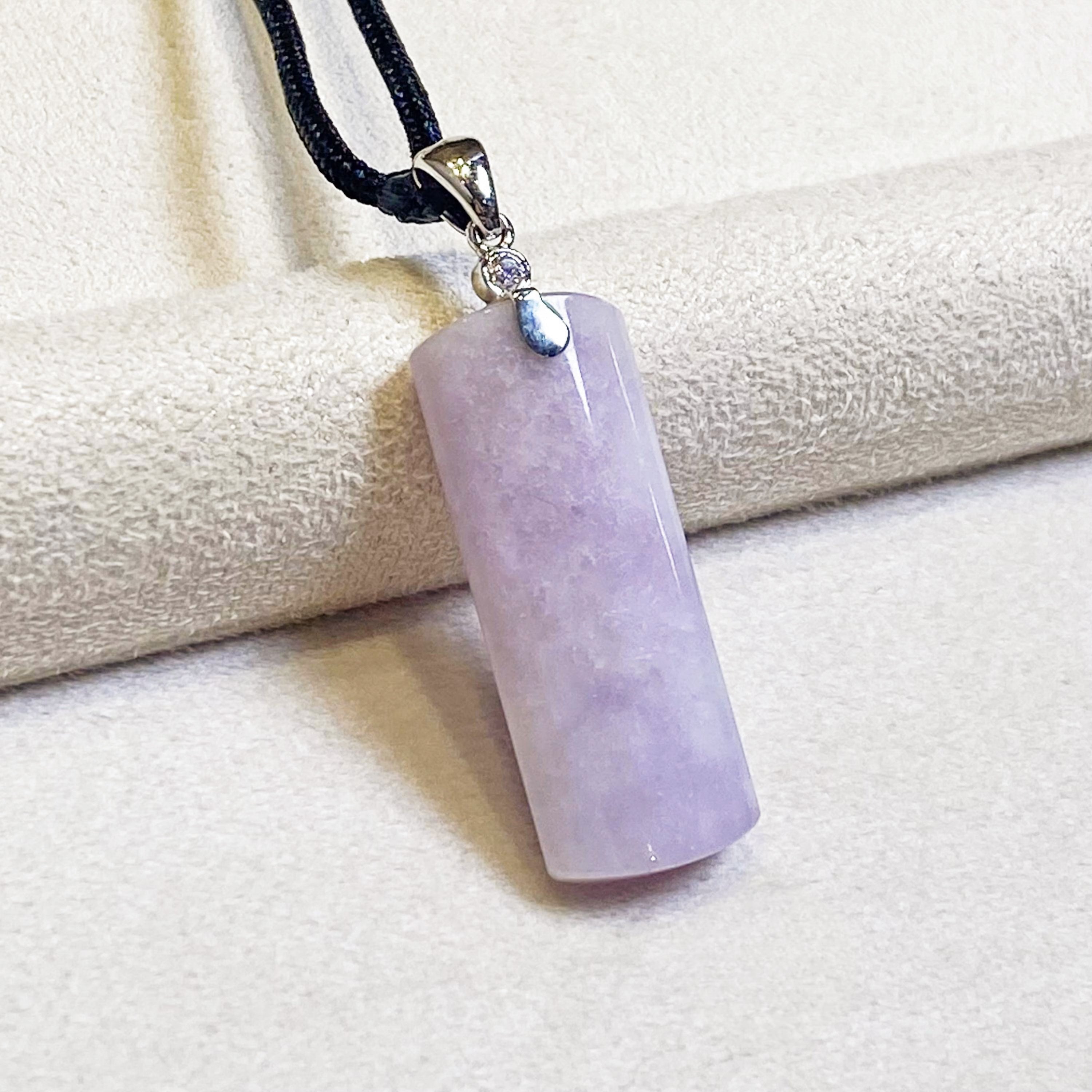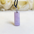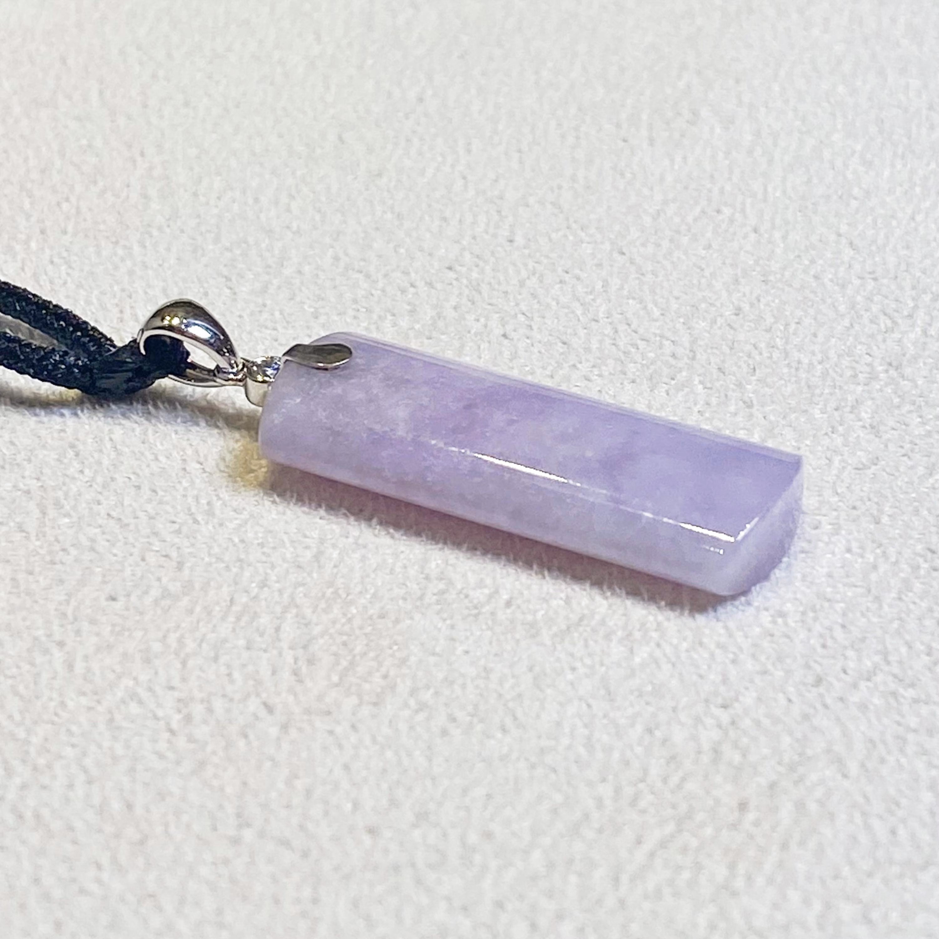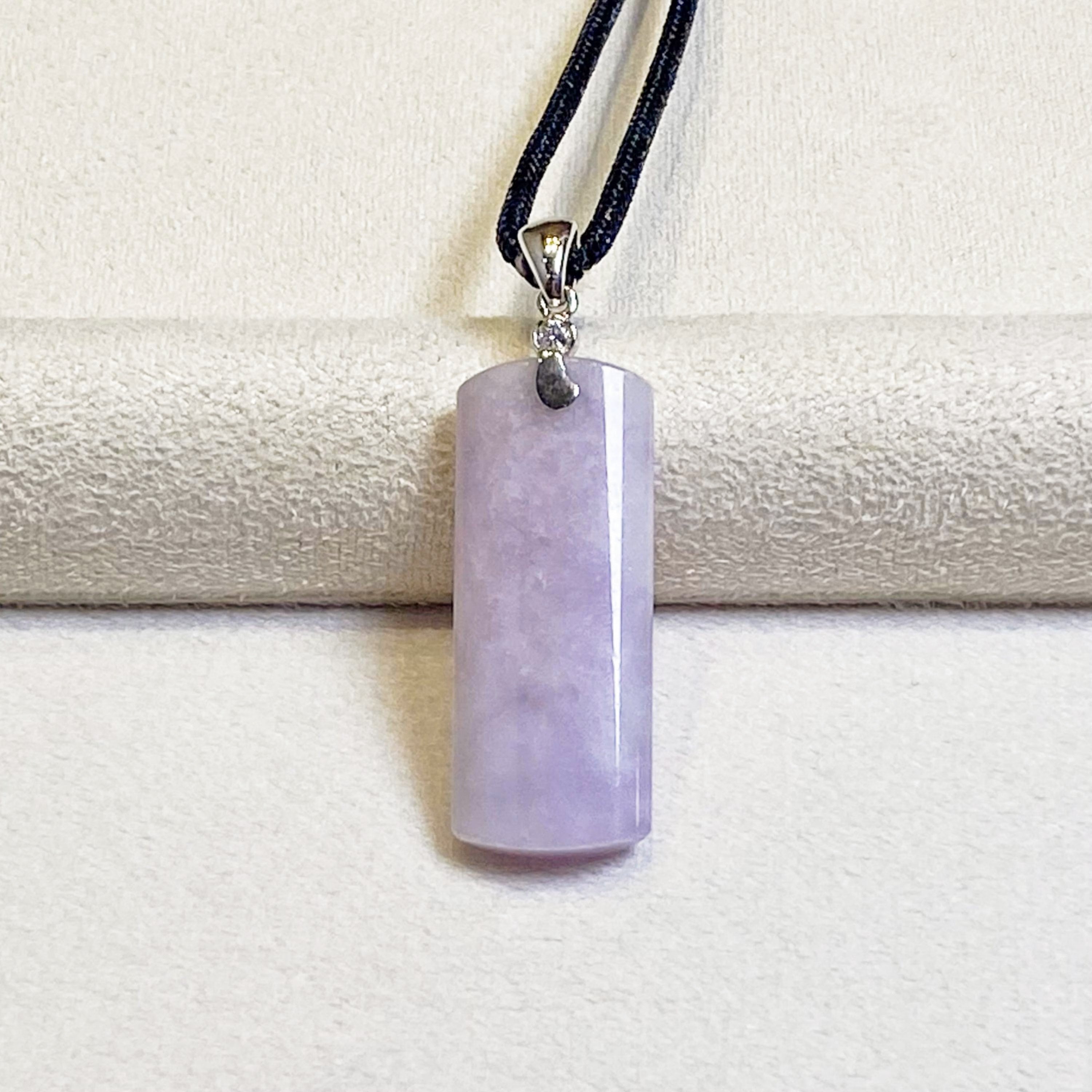 ✅This exquisitely crafted pendant features purple jade in a sleek rectangular shape, symbolizing creativity, balance, and serenity. Meticulously carved and skillfully polished, the pendant, set in 18k white gold bail, are delicately accented with a touch of minimalistic luxury.