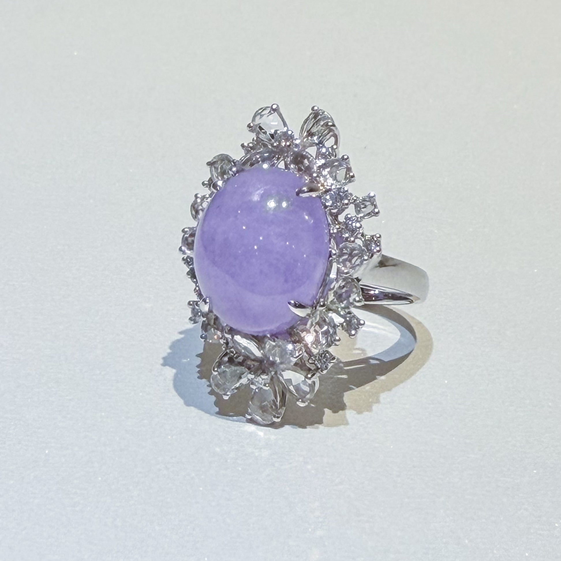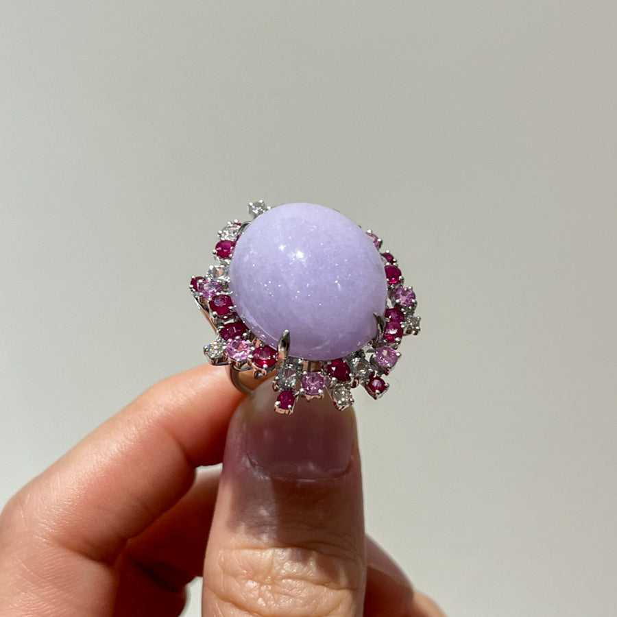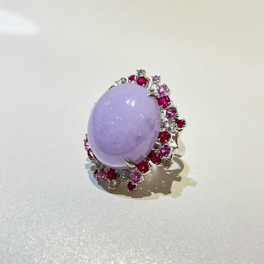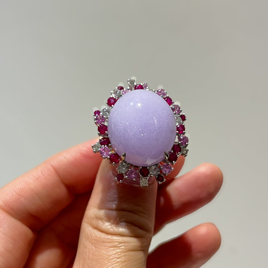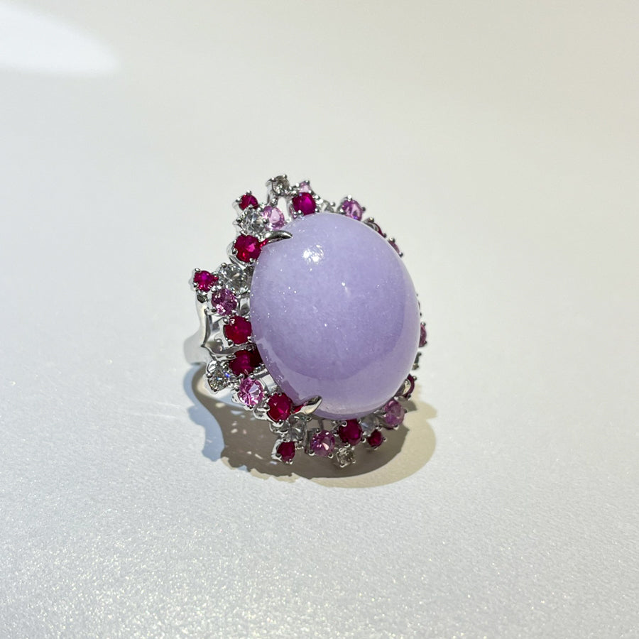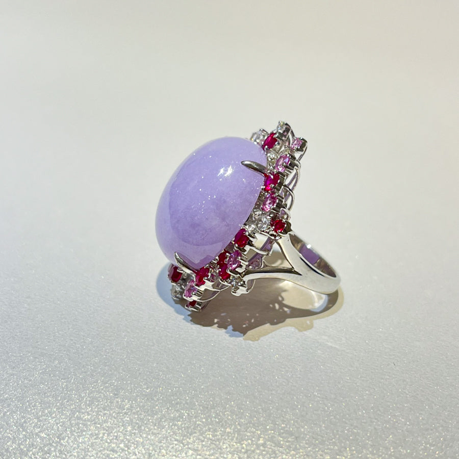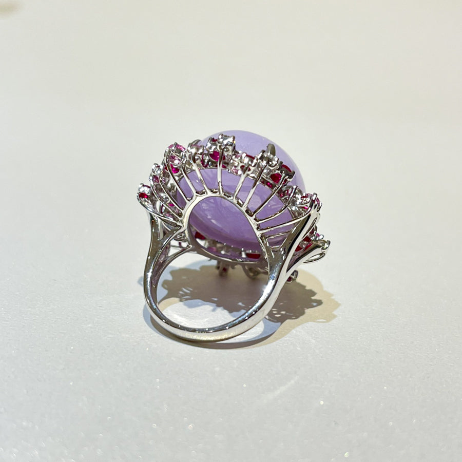 18K White Gold Diamonds Rare Purple Jade Ring - GRANSKY X KATHERINE Design