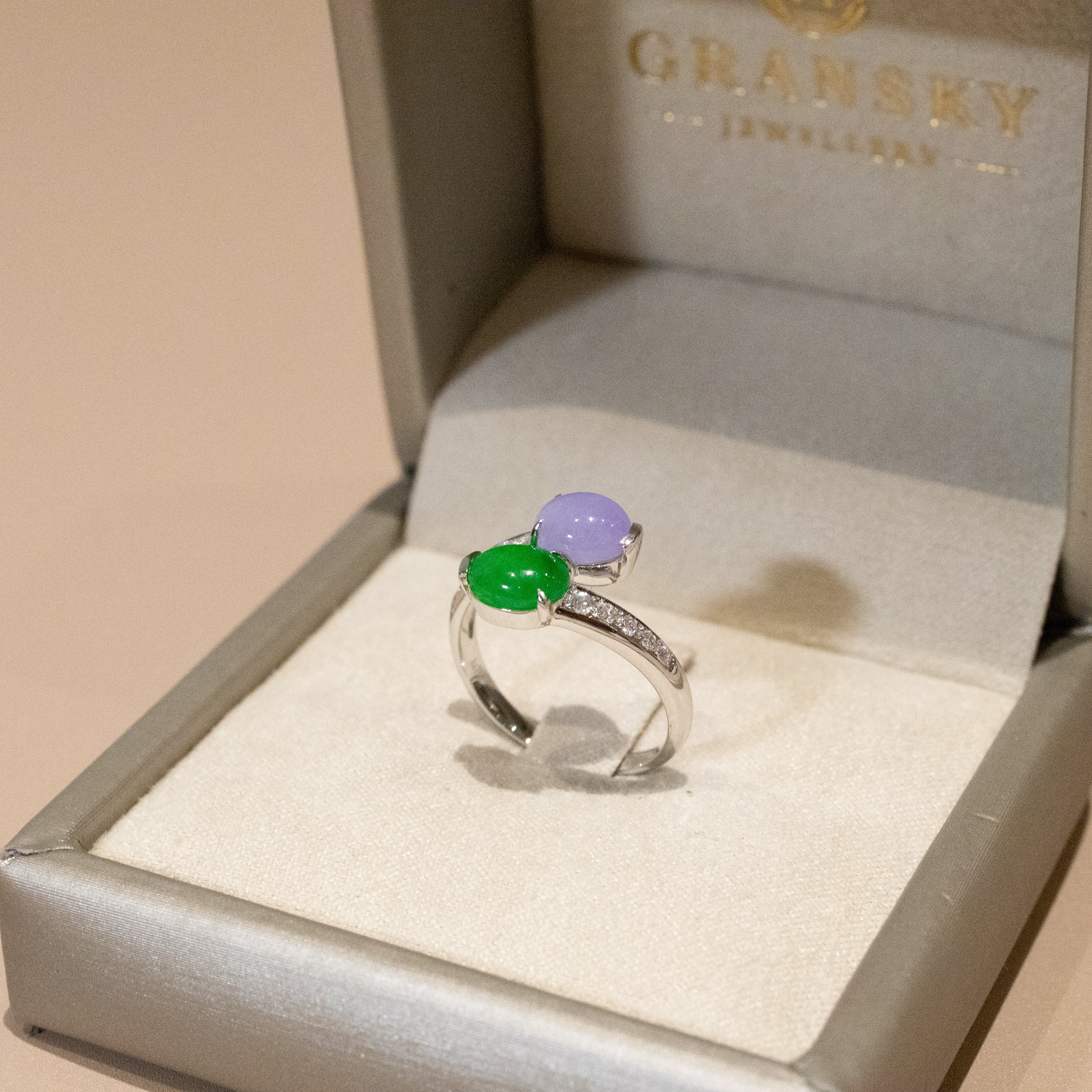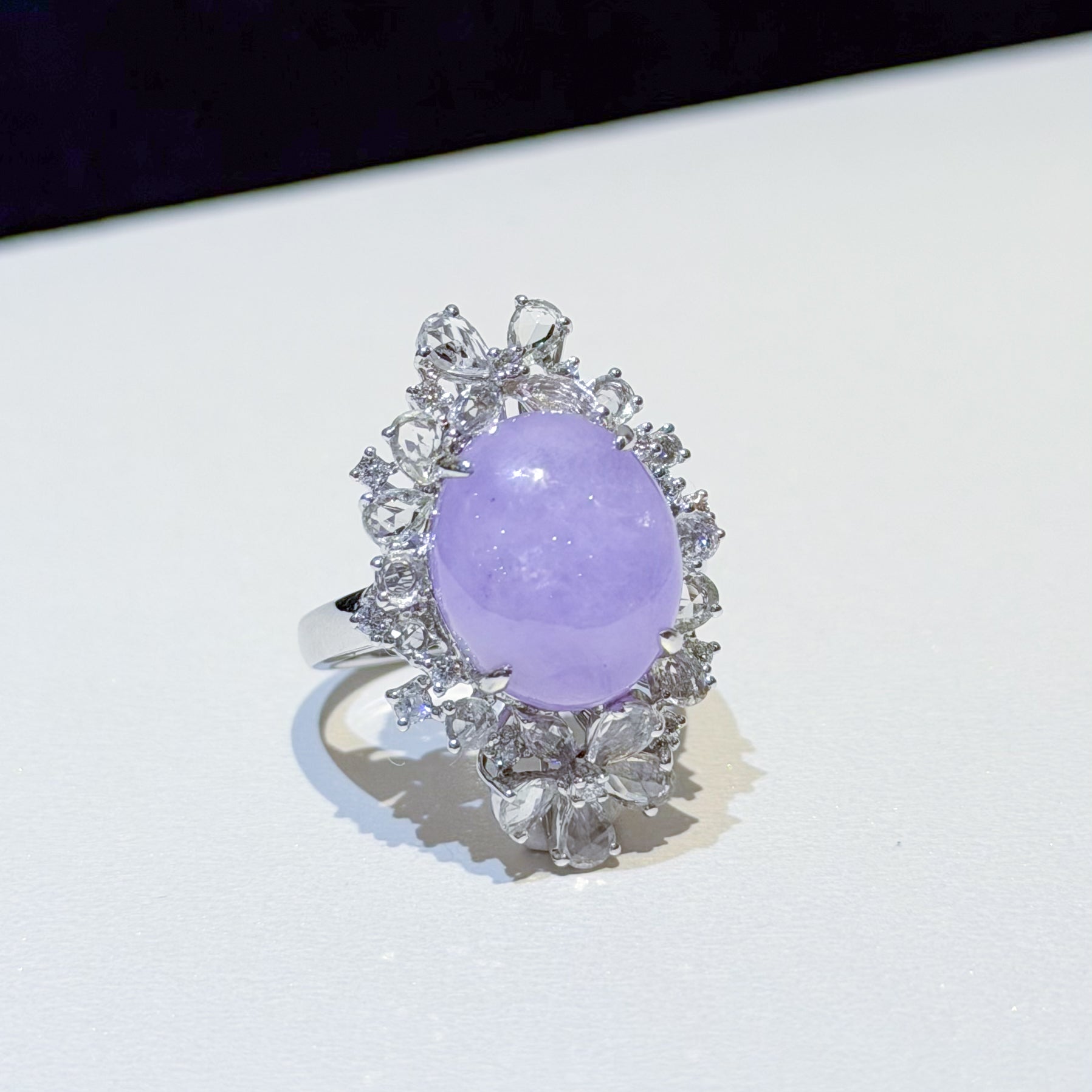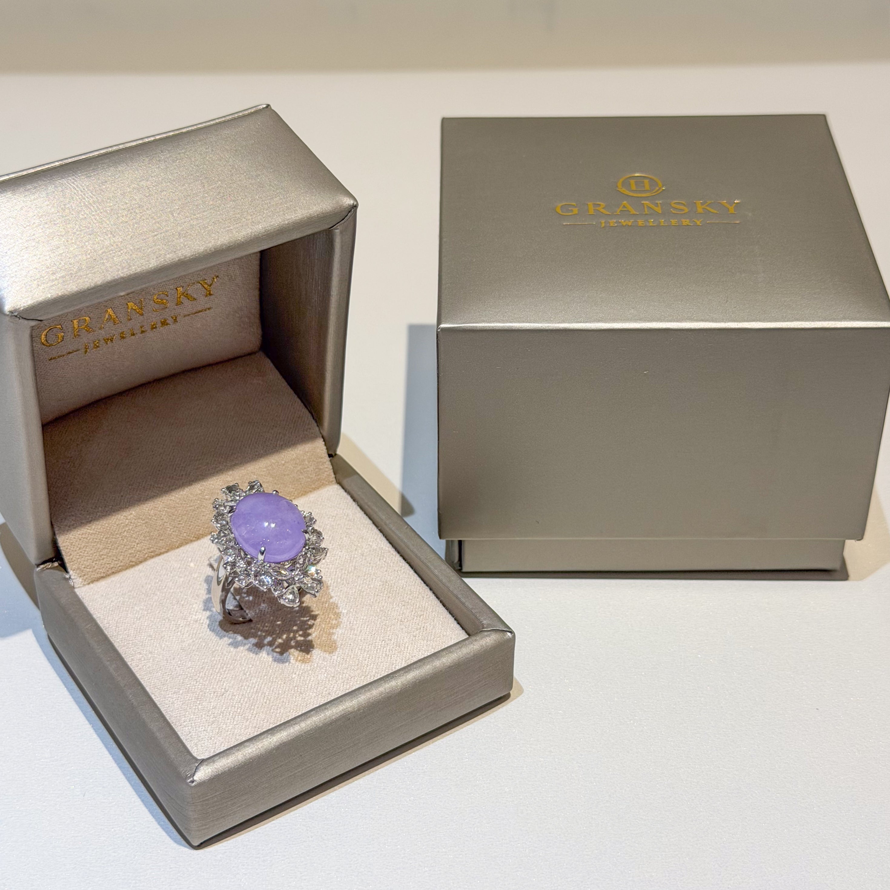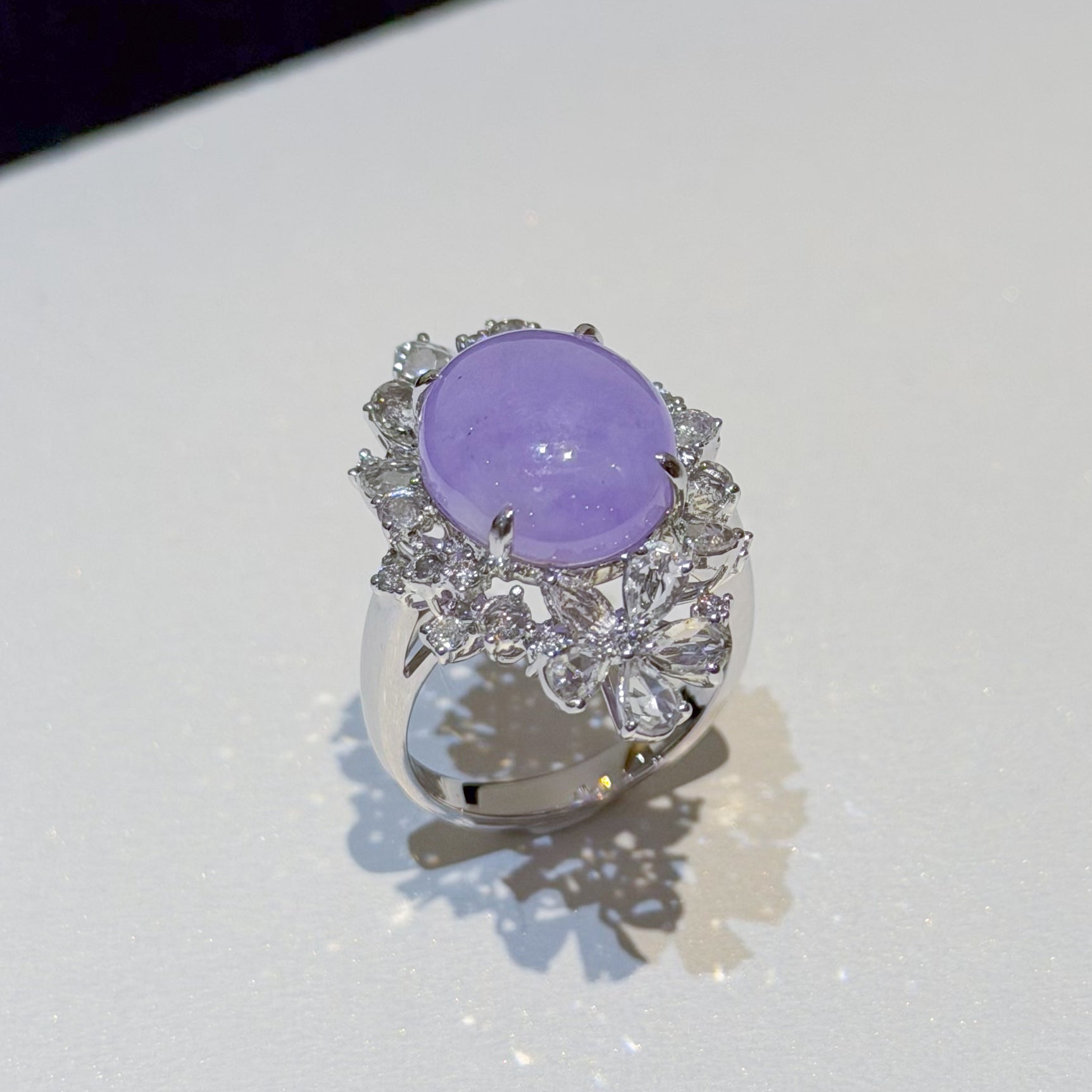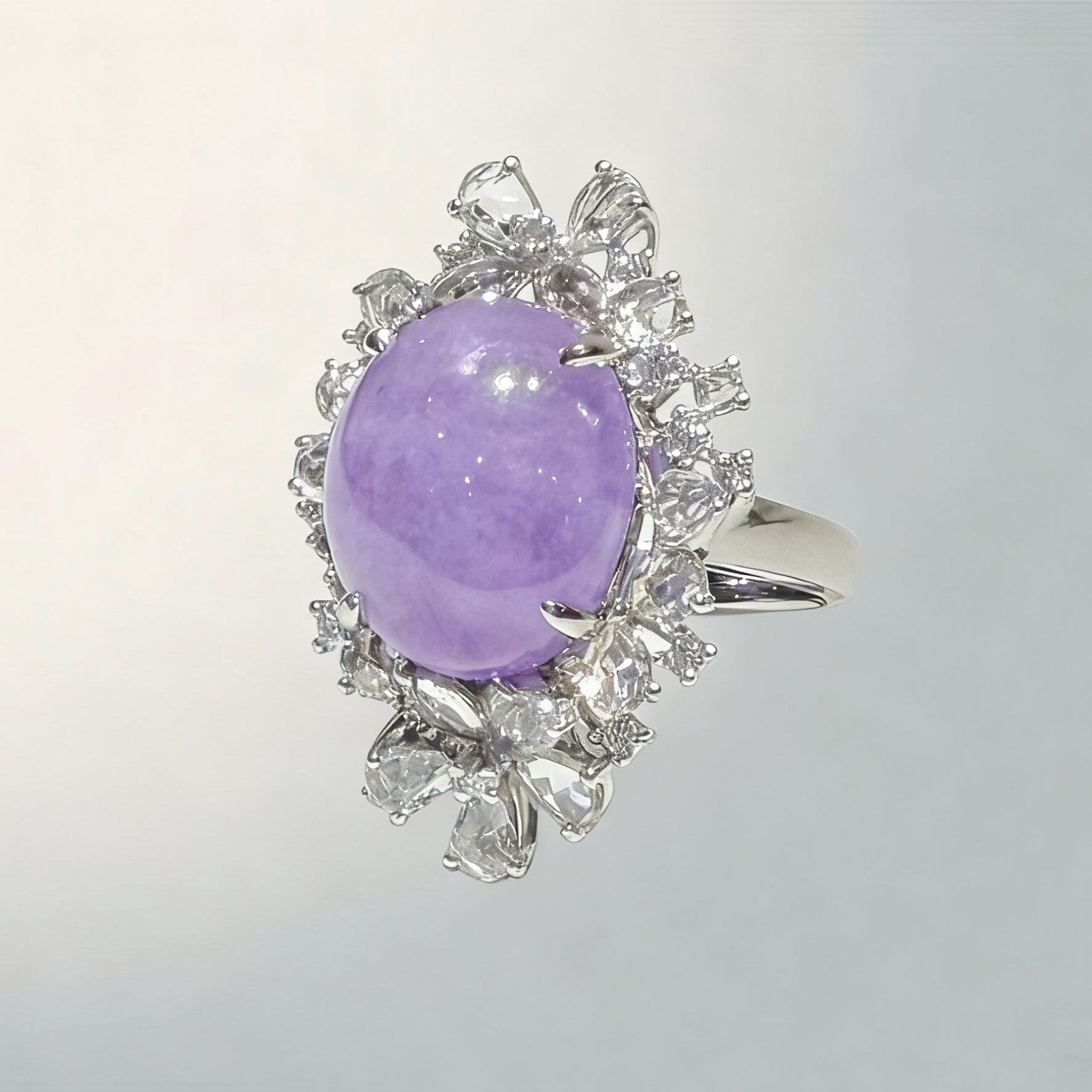 18K White Gold Diamonds Rare Purple Jade Ring - GRANSKY X KATHERINE Design