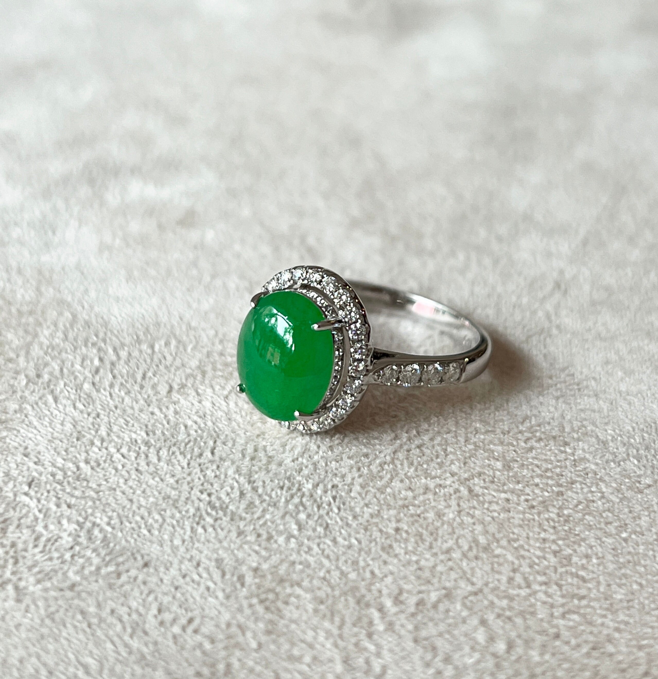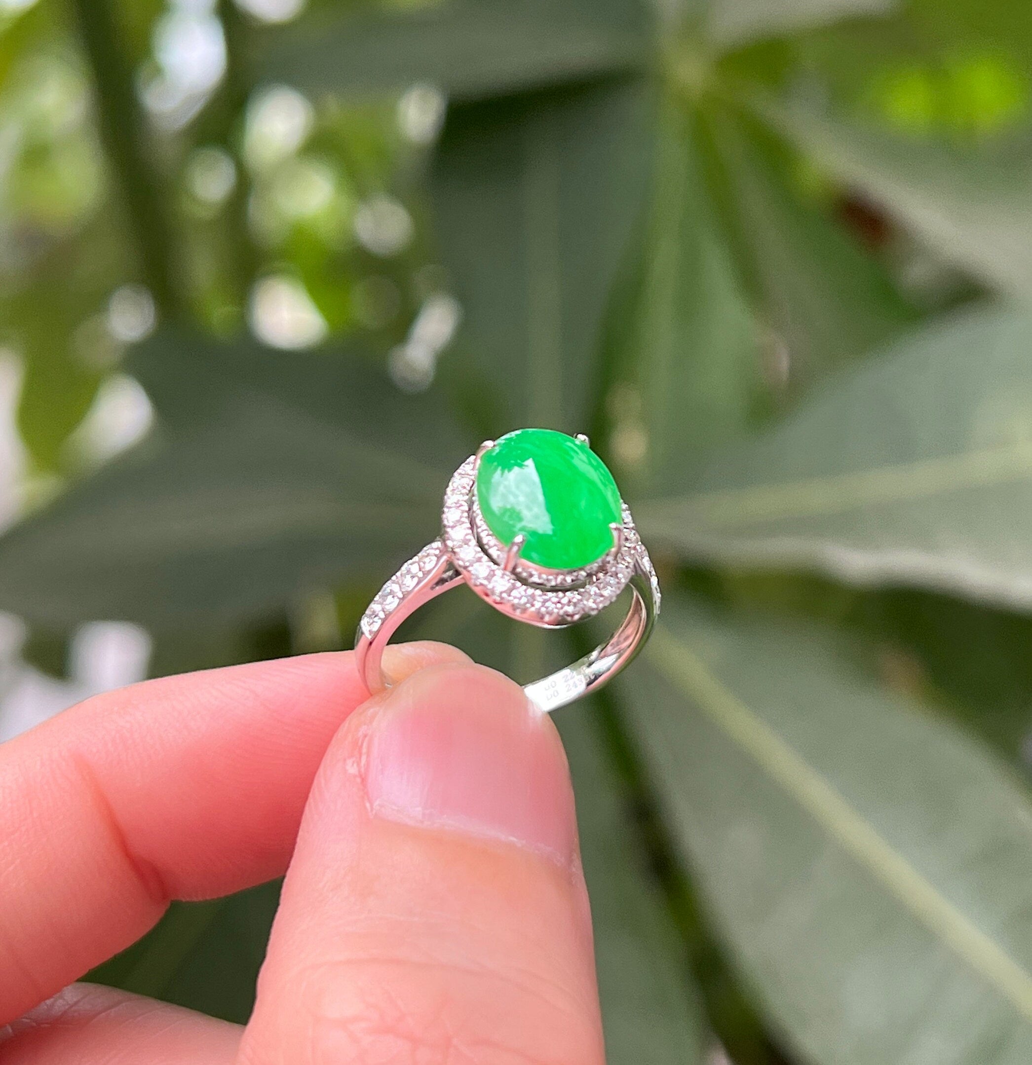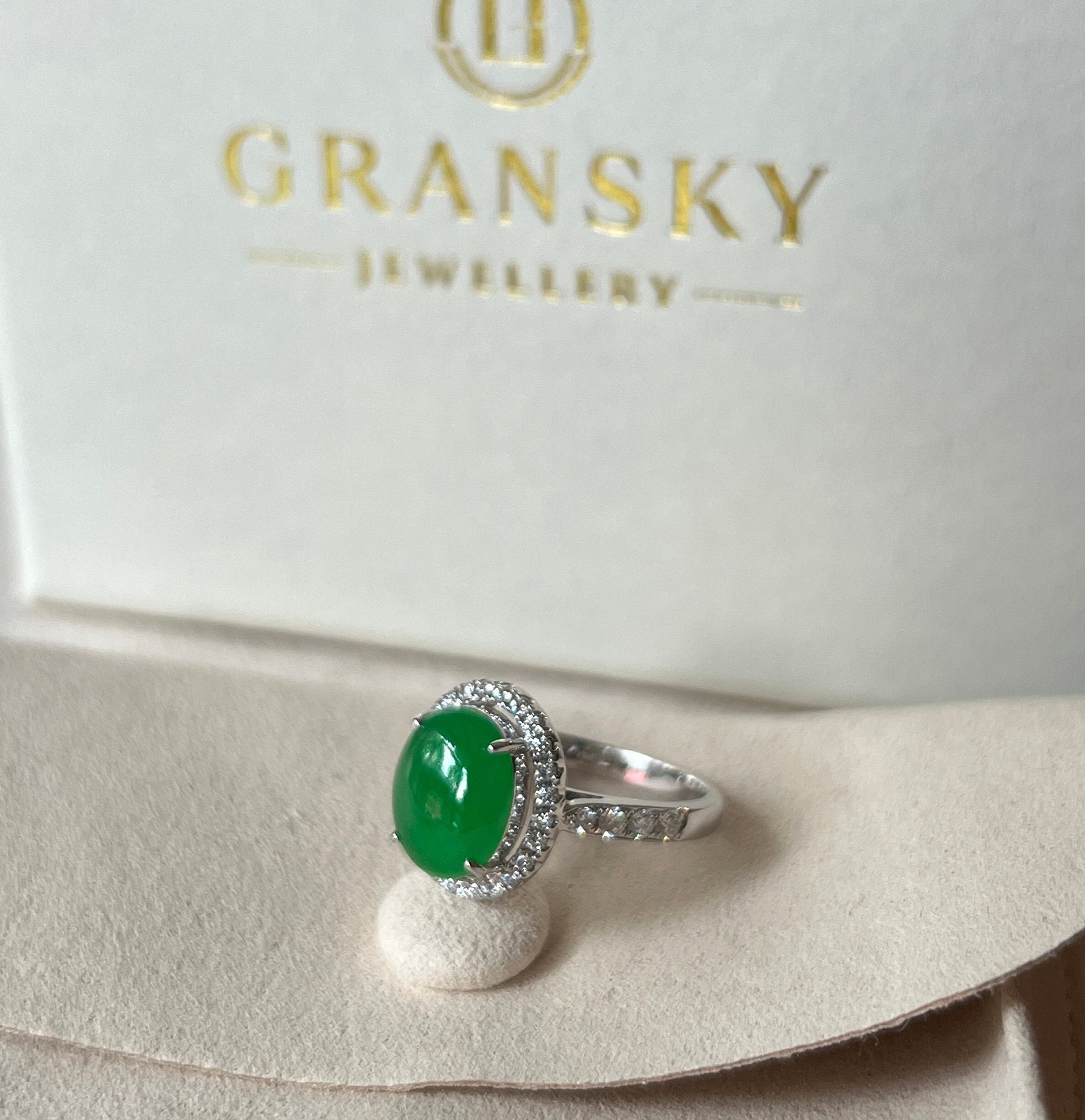Gransky Grade A Jadeite Natural Green Jade Ring US 7.5