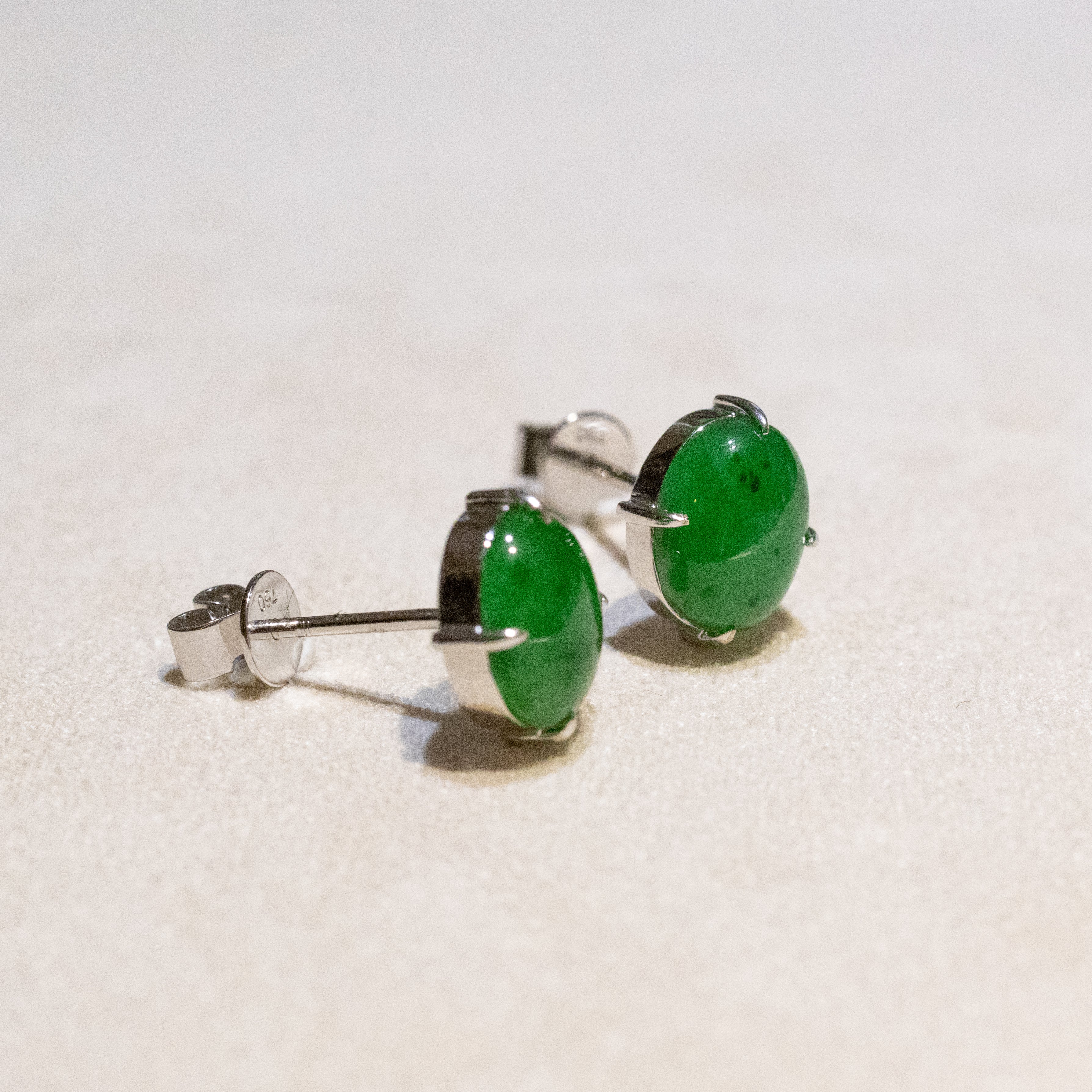 Imperial Green Jade Stud Earrings 18K White Gold – Natural Type A Burmese Jadeite