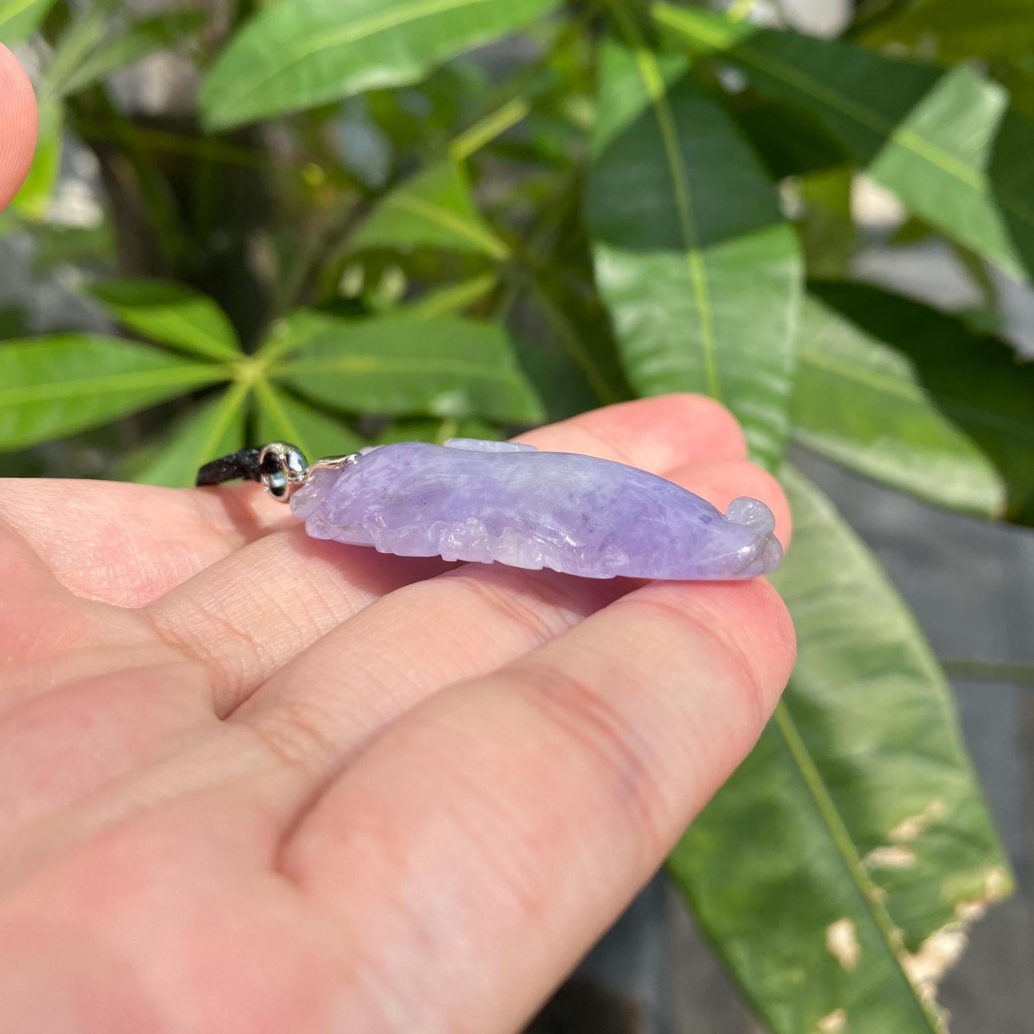 ✅Crafted from rare, collection-quality imperial purple jade, this stunning melon-shaped pendant is a true treasure. The deep, vibrant hue—highly sought after for its rarity—is expertly carved into a smooth, symbolic melon design, representing prosperity and longevity. Suspended from a sleek 18K white gold bail, this pendant blends timeless elegance with modern luxury.