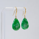 Imperial Green Pear-Shaped Drop Jade Earrings in 18k Yellow Gold