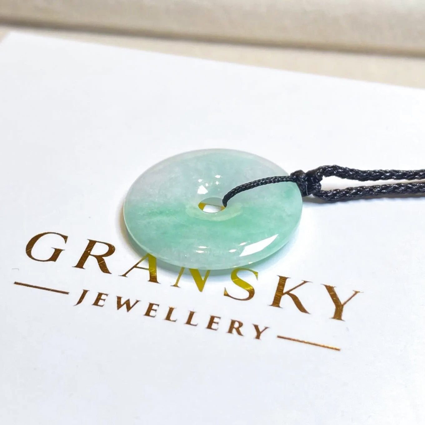 ✅This beautifully crafted pendant features a round donut shape in bright apple green jade, showcasing a captivating gradient color distribution that transitions smoothly across the piece. Renowned for its calming and protective properties, this jade pendant promotes harmony and balance, making it a perfect accessory for everyday wear. This exquisite piece not only enhances your style but also serves as a meaningful reminder of mindfulness and spiritual connection, making it an ideal gift for someone you cherish.