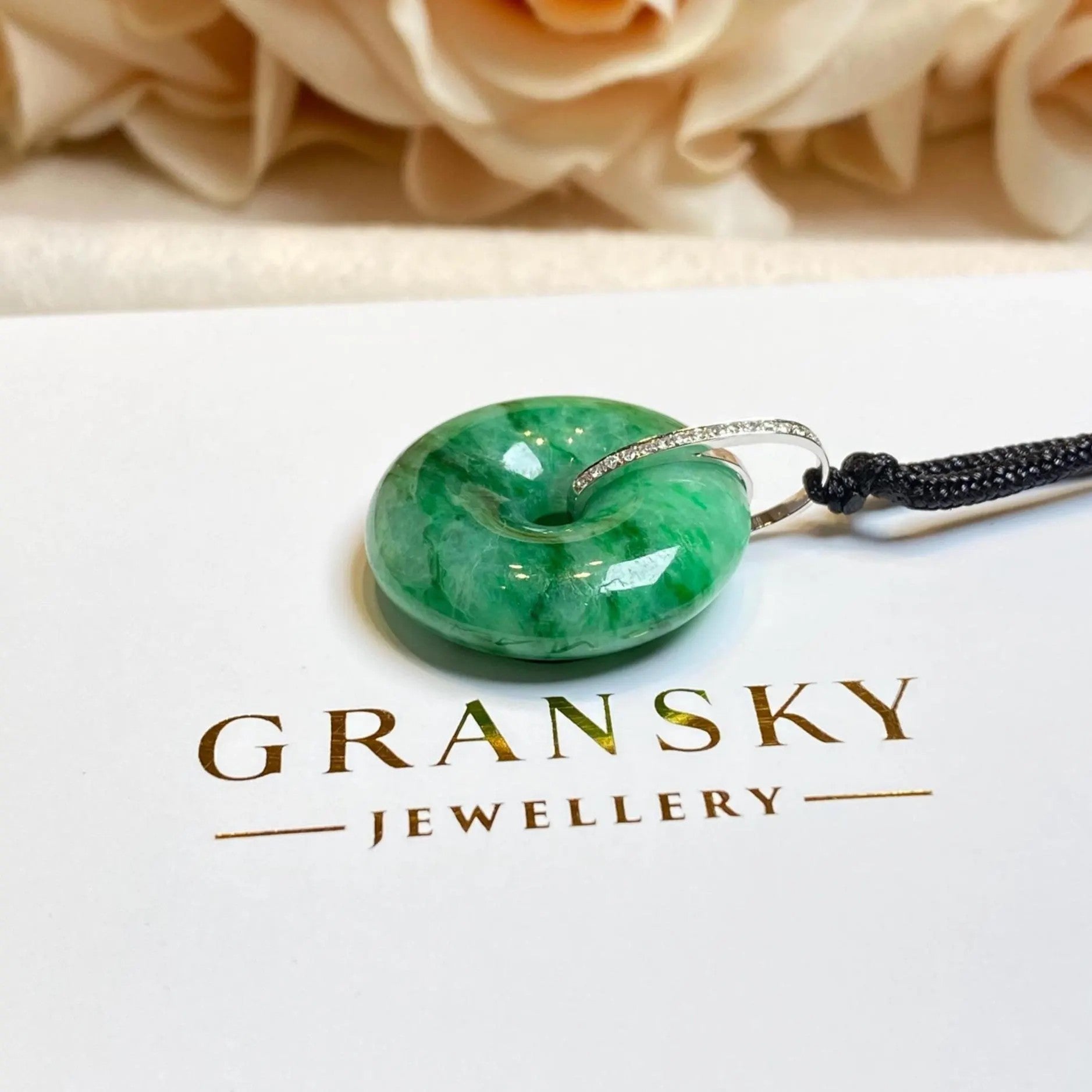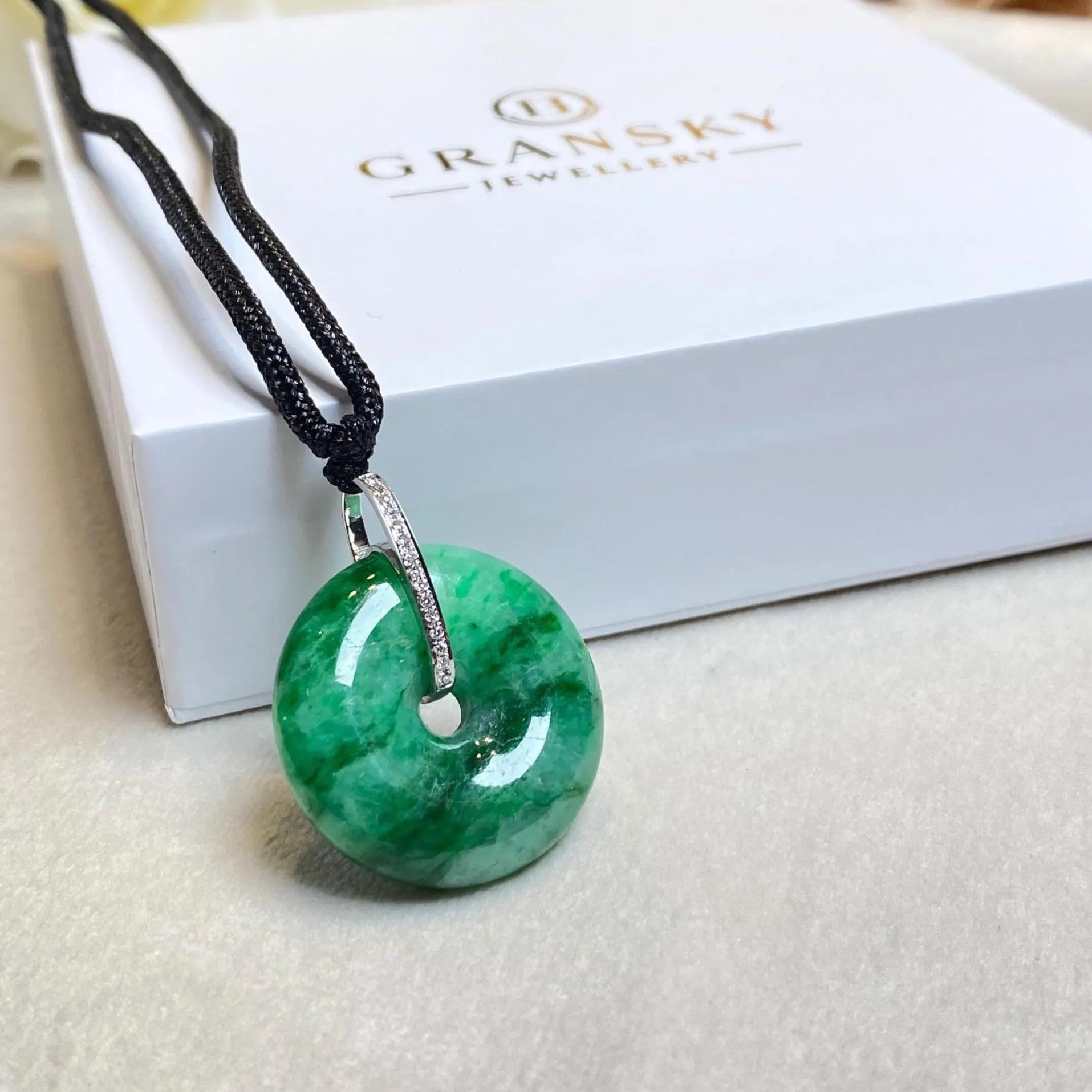 24mm Imperial Green Jade Donut Pendant – 18K White Gold & Diamonds