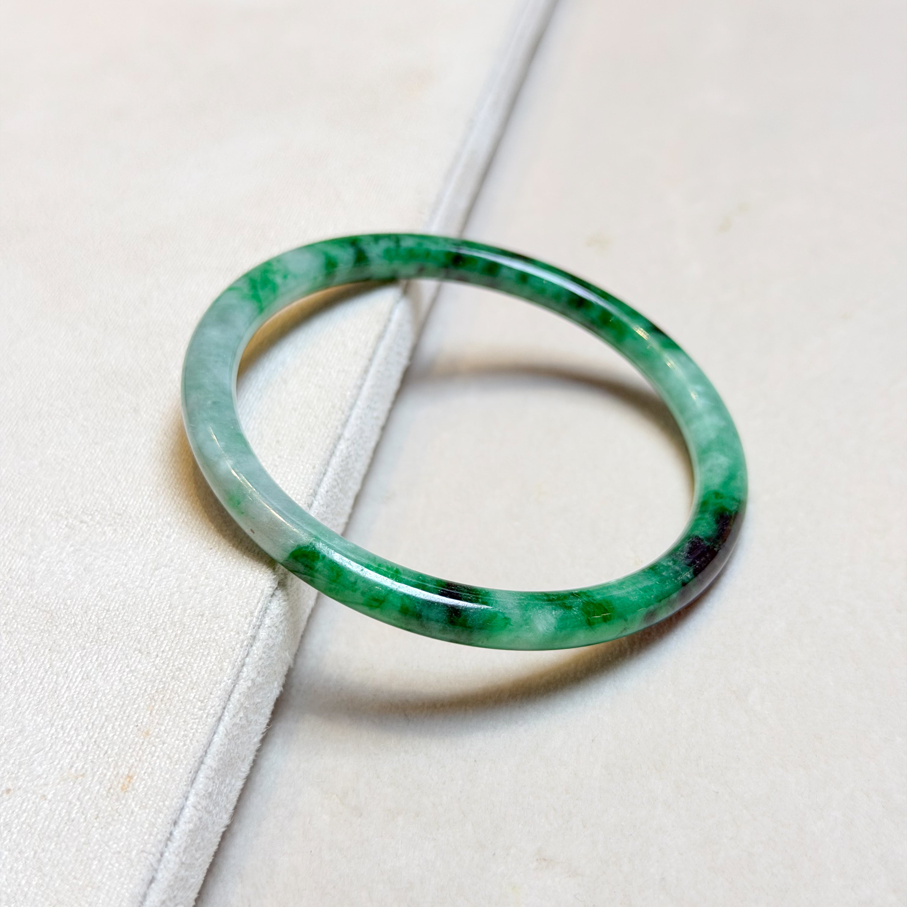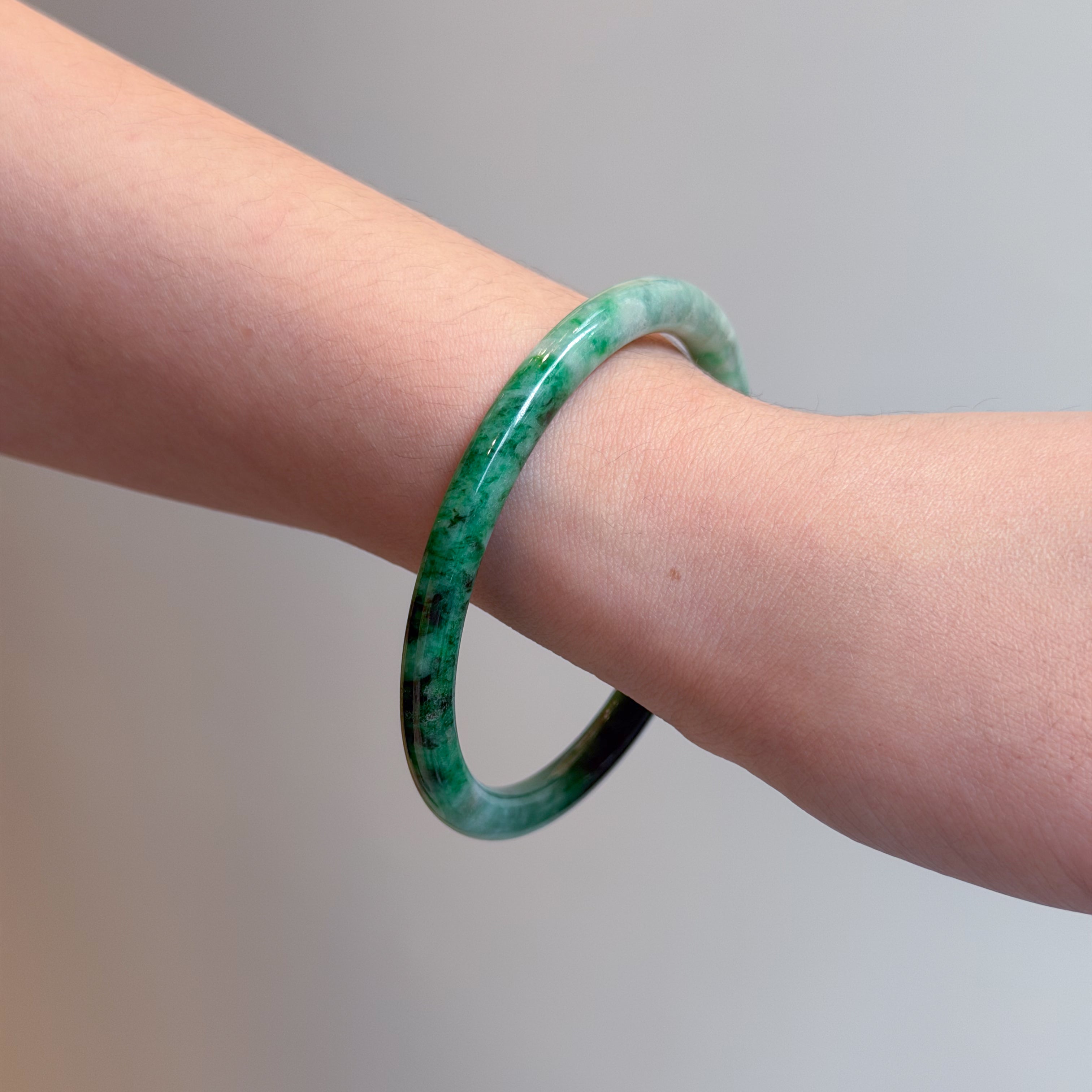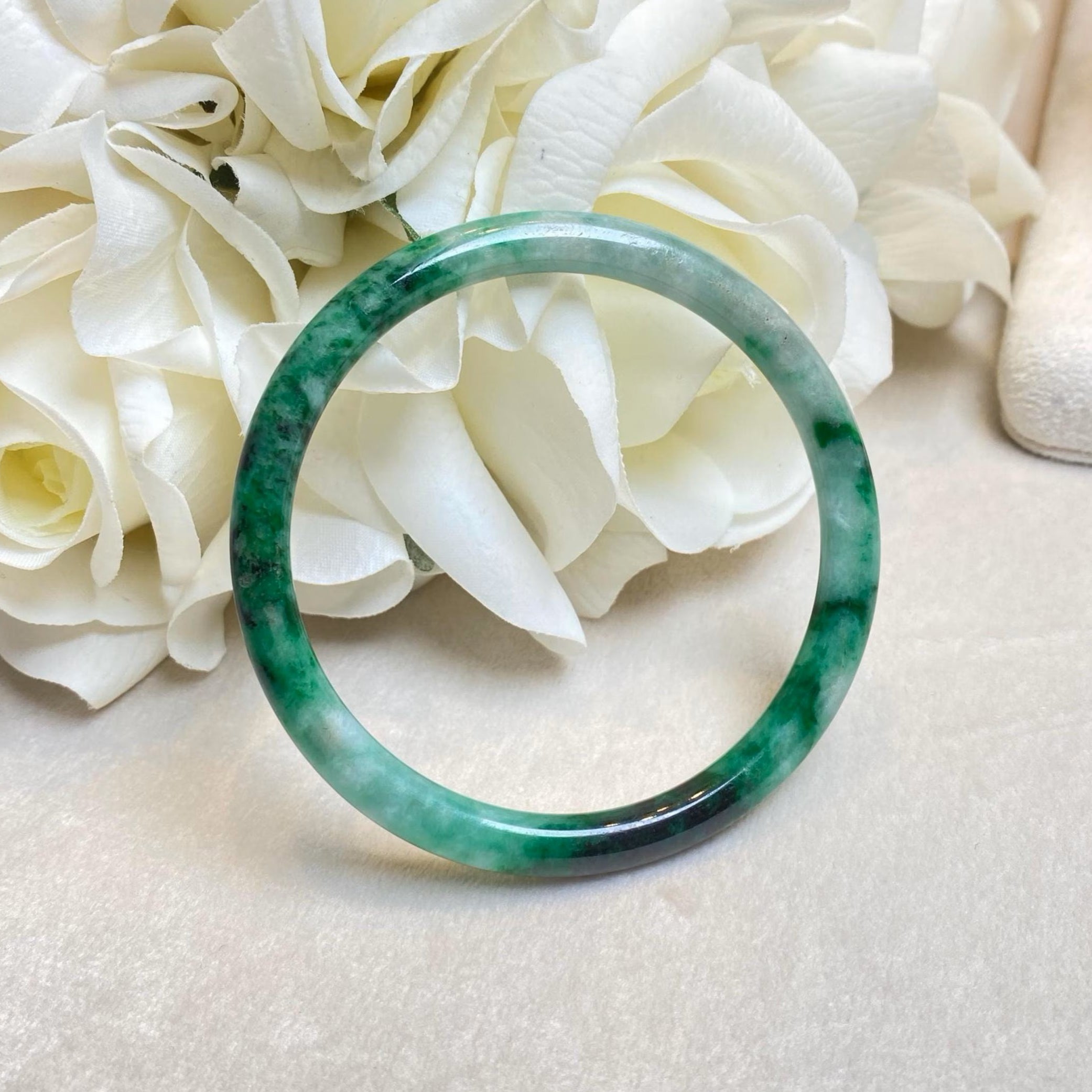 ✅This stunning green jadeite bangle features untreated Type-A jadeite in an imperial green color, crafted in a classic round shape with a 54mm inner diameter for a comfortable fit and timeless elegance. The smooth, polished design highlights the vibrant green hue, making it a standout accessory. Known for its harmonizing properties, this bangle is perfect for meditation, mindfulness, or as a meaningful everyday accessory.