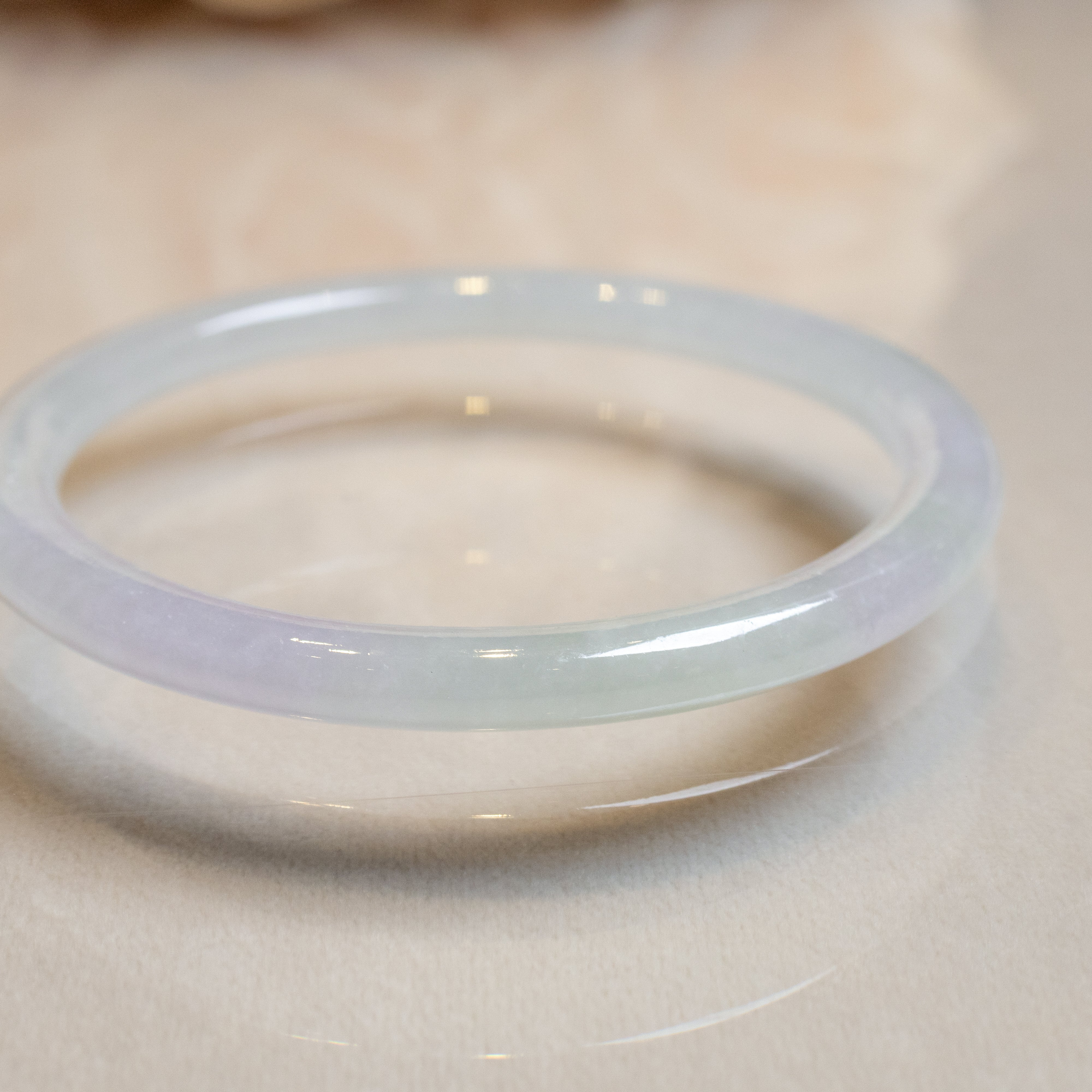 59mm Two-Tone Green Purple Color Jadeite Bangle – Natural Grade-A Jade