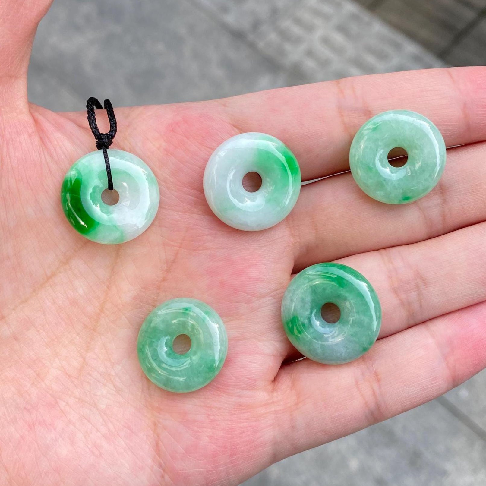 ✅Our Bright Apple Green Burmese Jade Donut Pendant, a handcrafted masterpiece from our exclusive Burmese Jade Pendant Collection, showcases the timeless beauty of authentic, natural Type-A jadeite. Available in five distinct variants, each pendant features a unique color distribution and hue of vibrant apple green, embodying serenity and harmony.