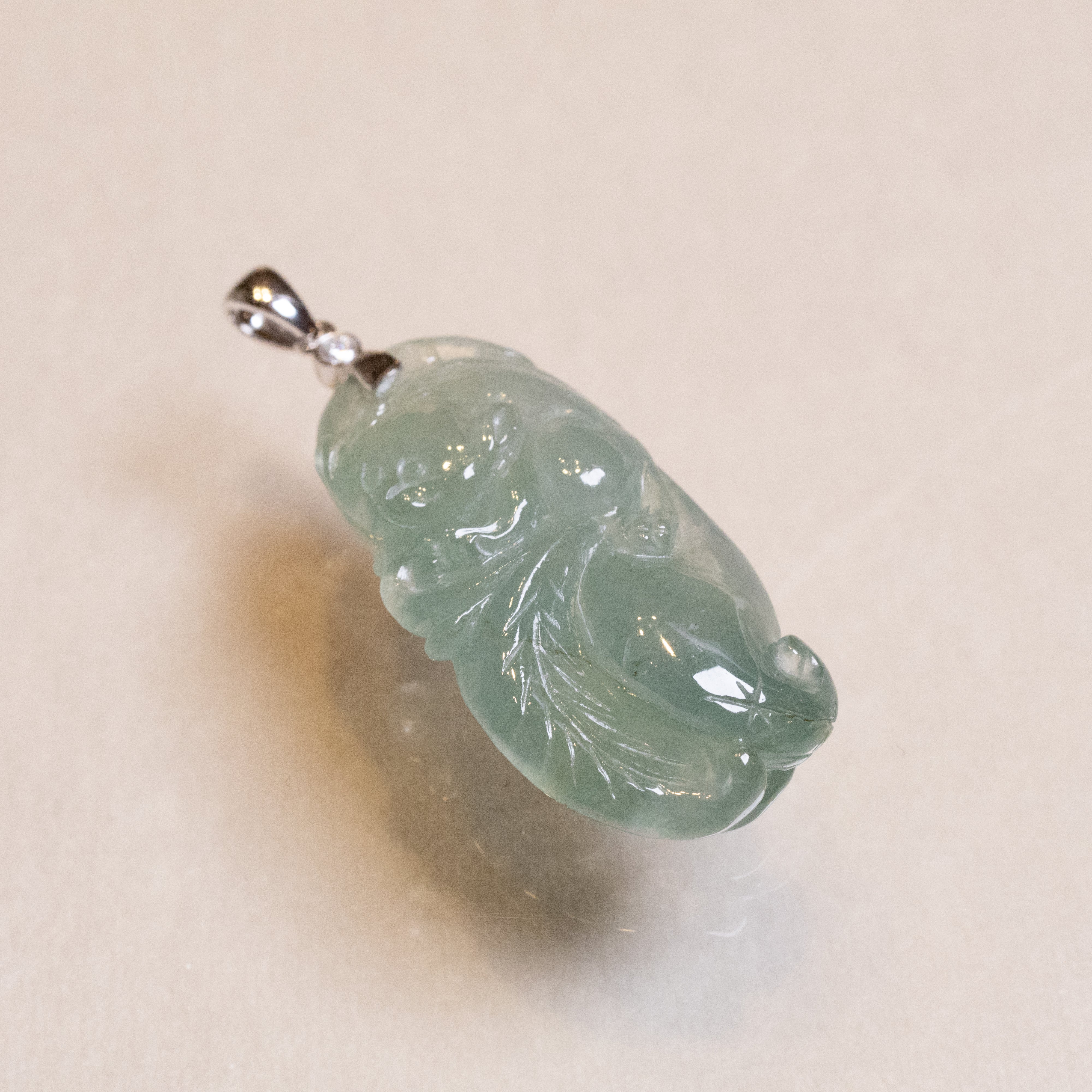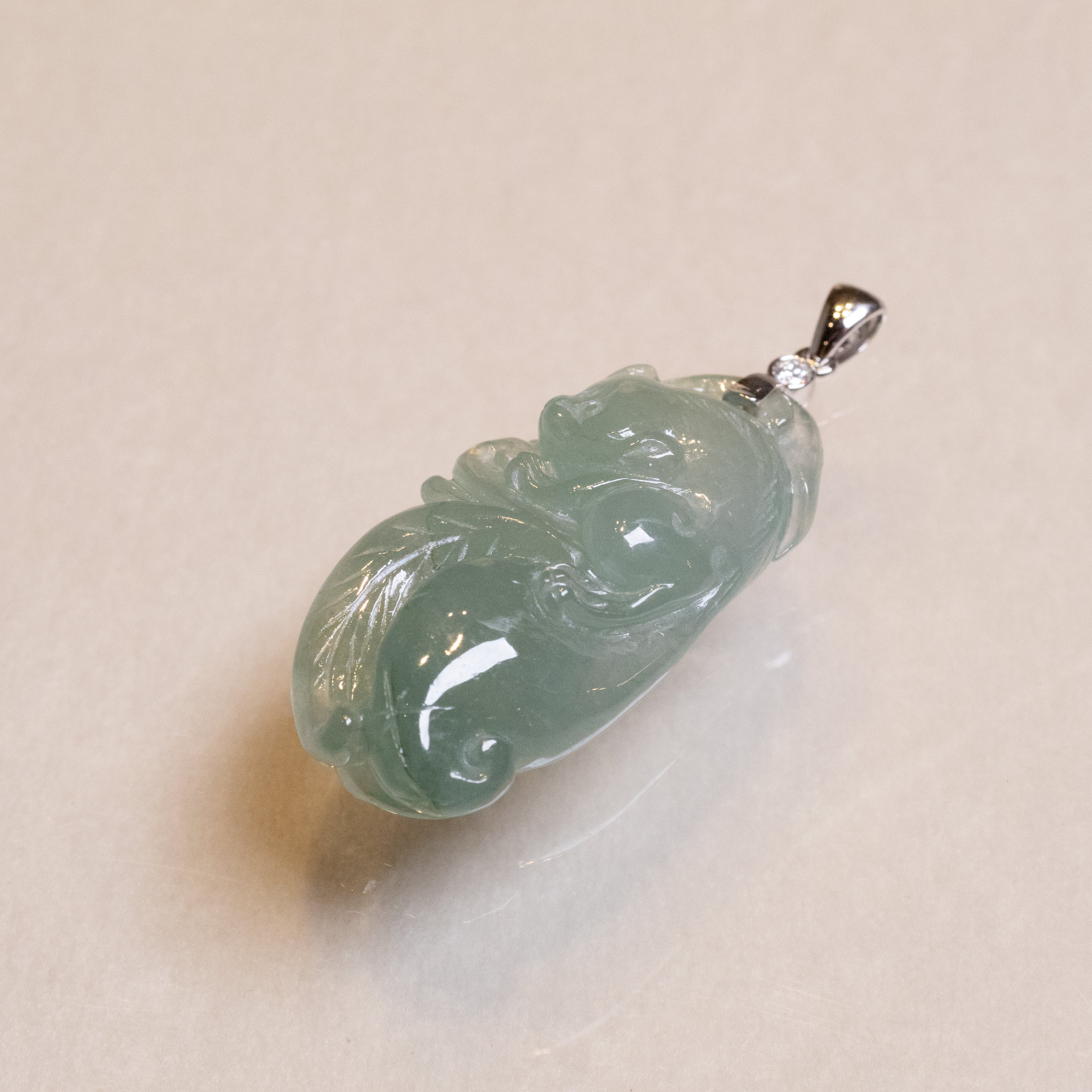 ✅This captivating pendant features a smooth green jade, intricately carved with the Lucky Rat and Ruyi motifs, symbolizing prosperity, good fortune, and wish fulfillment. Expertly set in an elegant 18K white gold bail and adorned with sparkling diamonds, this pendant radiates timeless luxury and cultural significance.