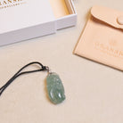 With a total length of 48.5mm (including bail), a width of 18.5mm, and a 11mm thickness, this pendant is a perfect blend of tradition and elegance. Renowned for its soothing energy and protective aura, green jade promotes harmony and balance, making this piece an ideal accessory for daily wear or a cherished gift for a loved one.