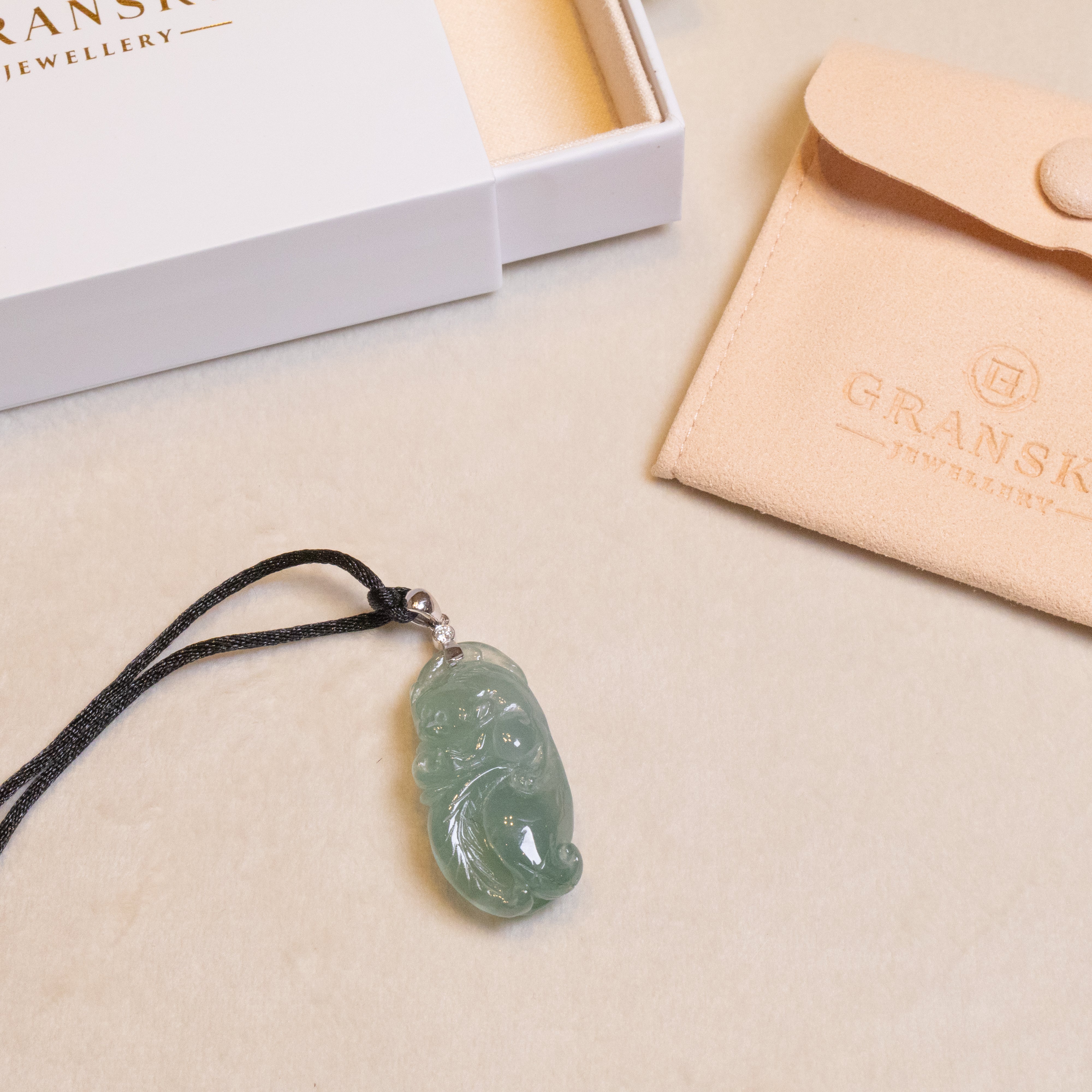 At Gransky, every piece of jade that is used in our jewelry is guaranteed to be created from natural jade rough and of Hong Kong Jade & Stone Laboratory Ltd. (HKJSL) certifiable jadeite grade in type A. That is 100% natural and free from any form of chemical treatment.
