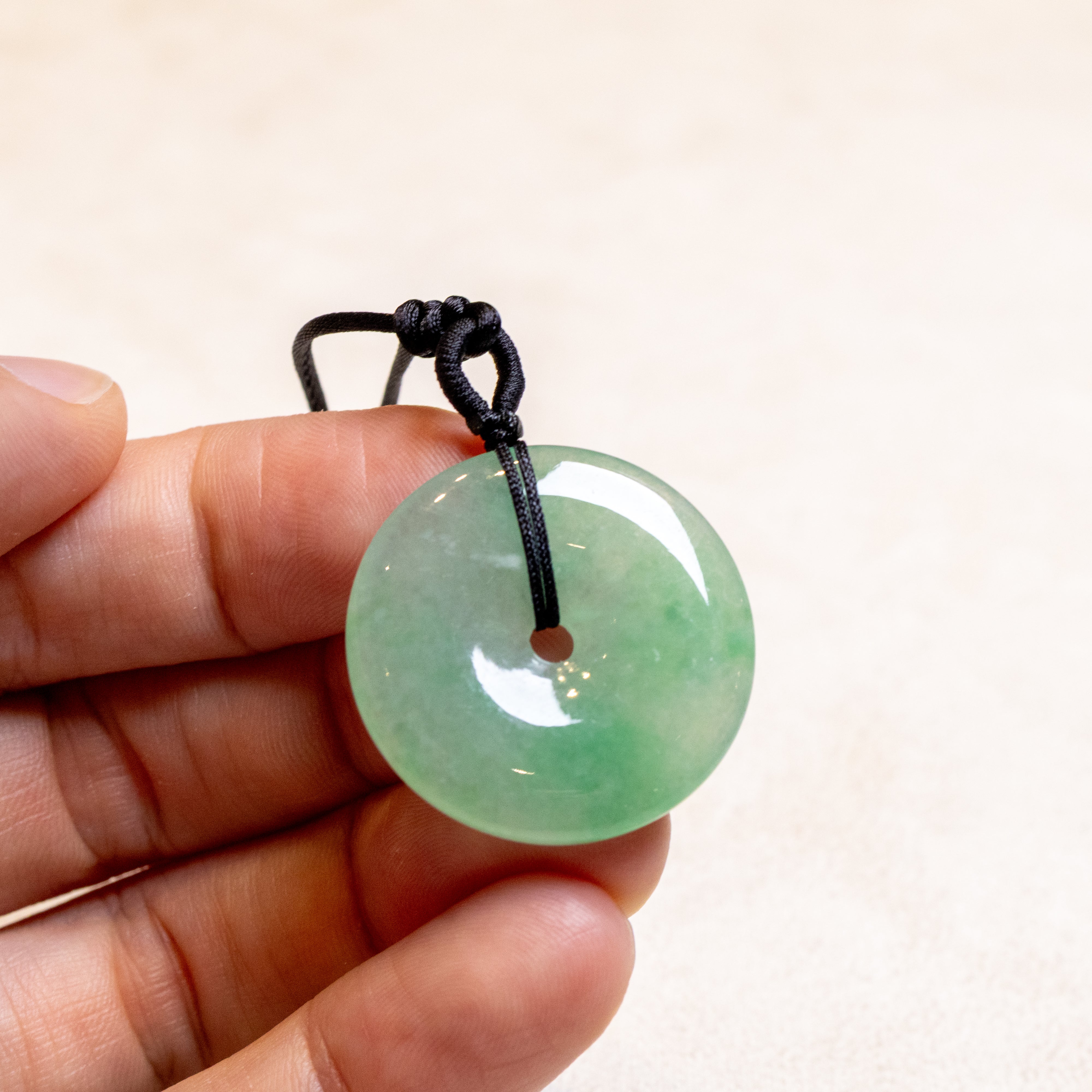 28.3mm Green Jade Donut Pendant - Grade-A Natural Jadeite
