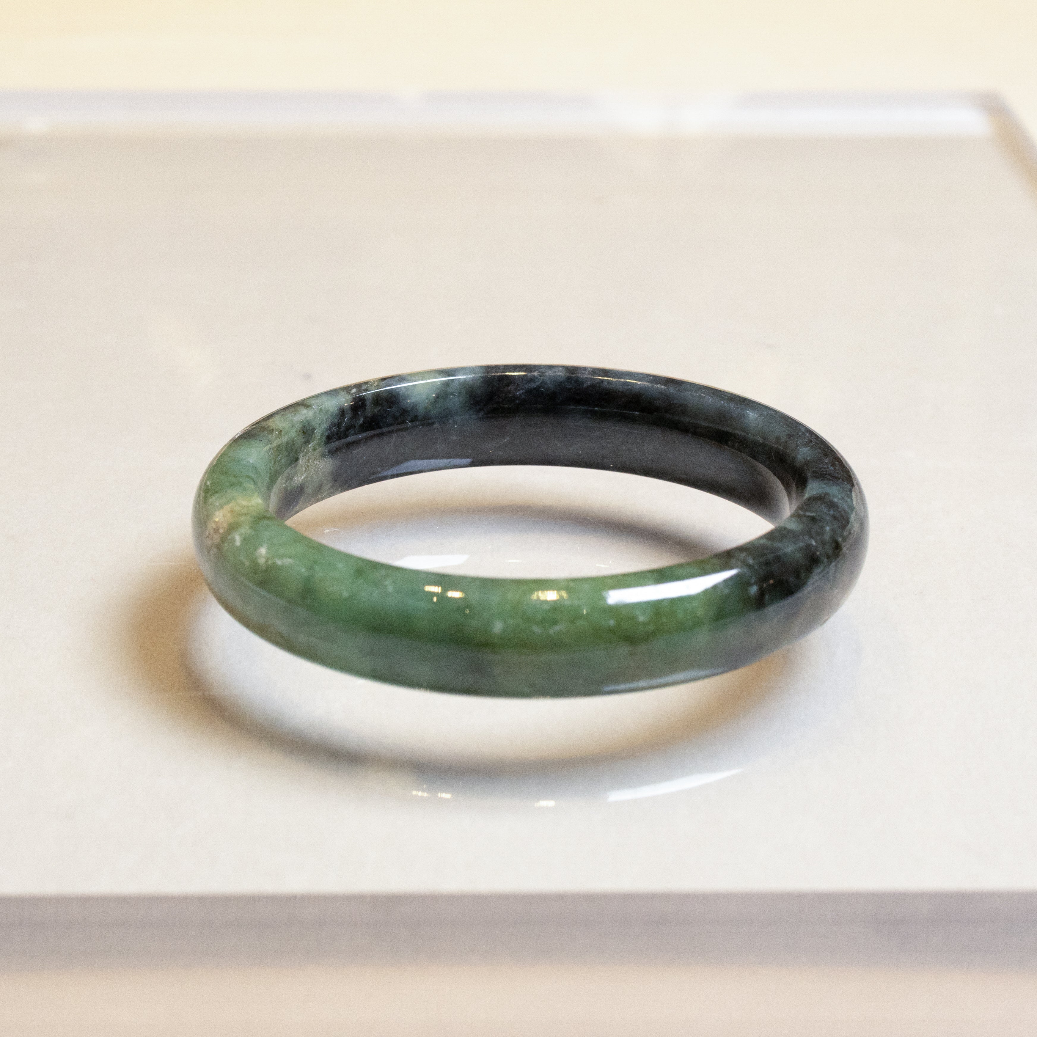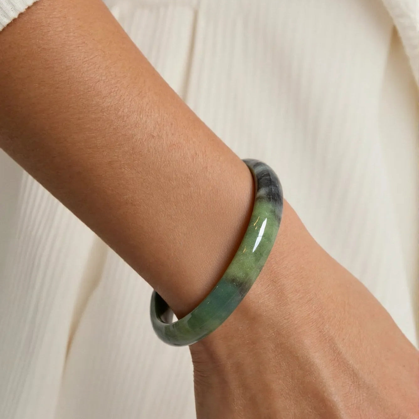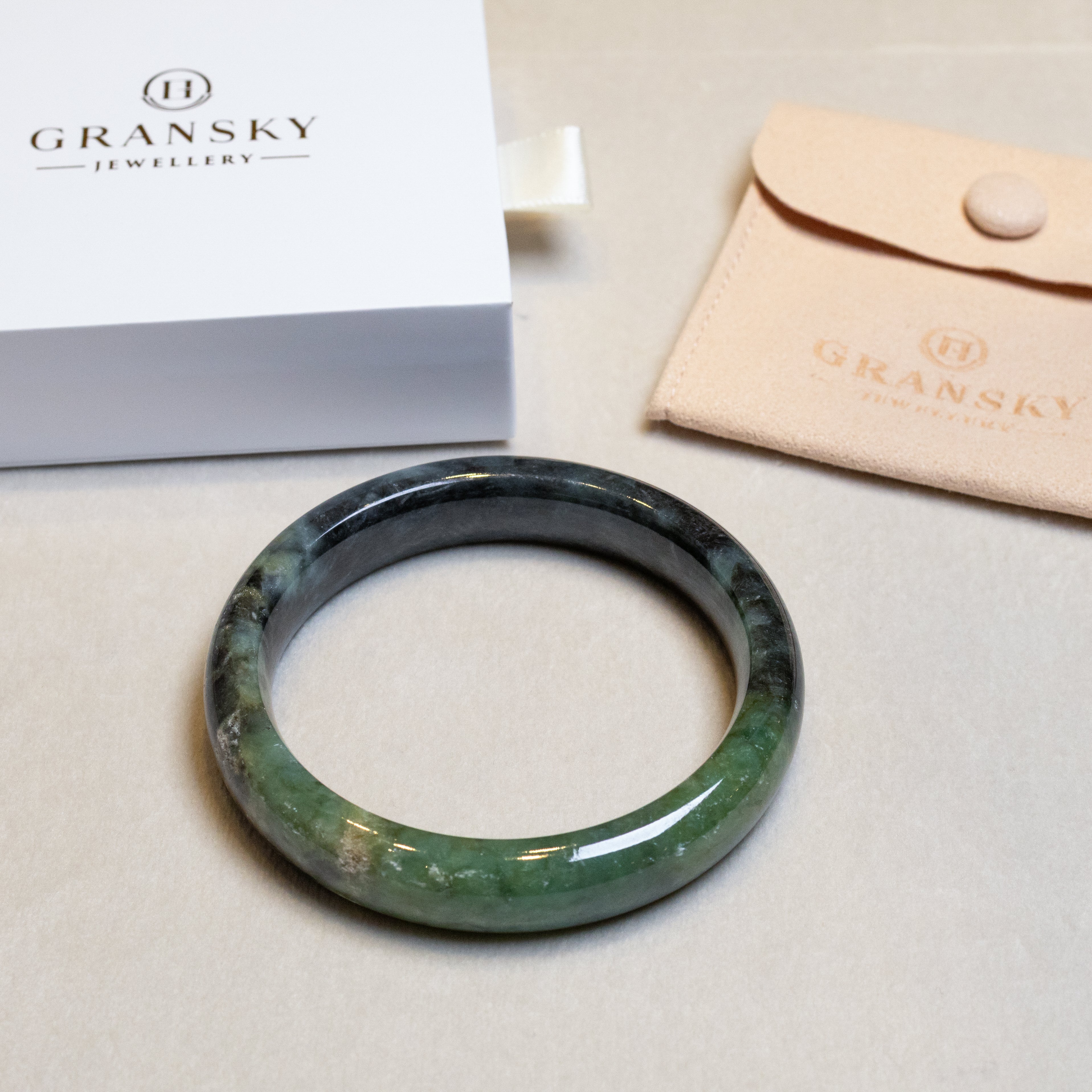 A perfect fusion of natural beauty and spiritual significance, this green and black jadeite bangle is a thoughtful gift or a cherished treat for yourself. Its versatile design complements both casual and formal occasions, elevating any look with effortless elegance.
