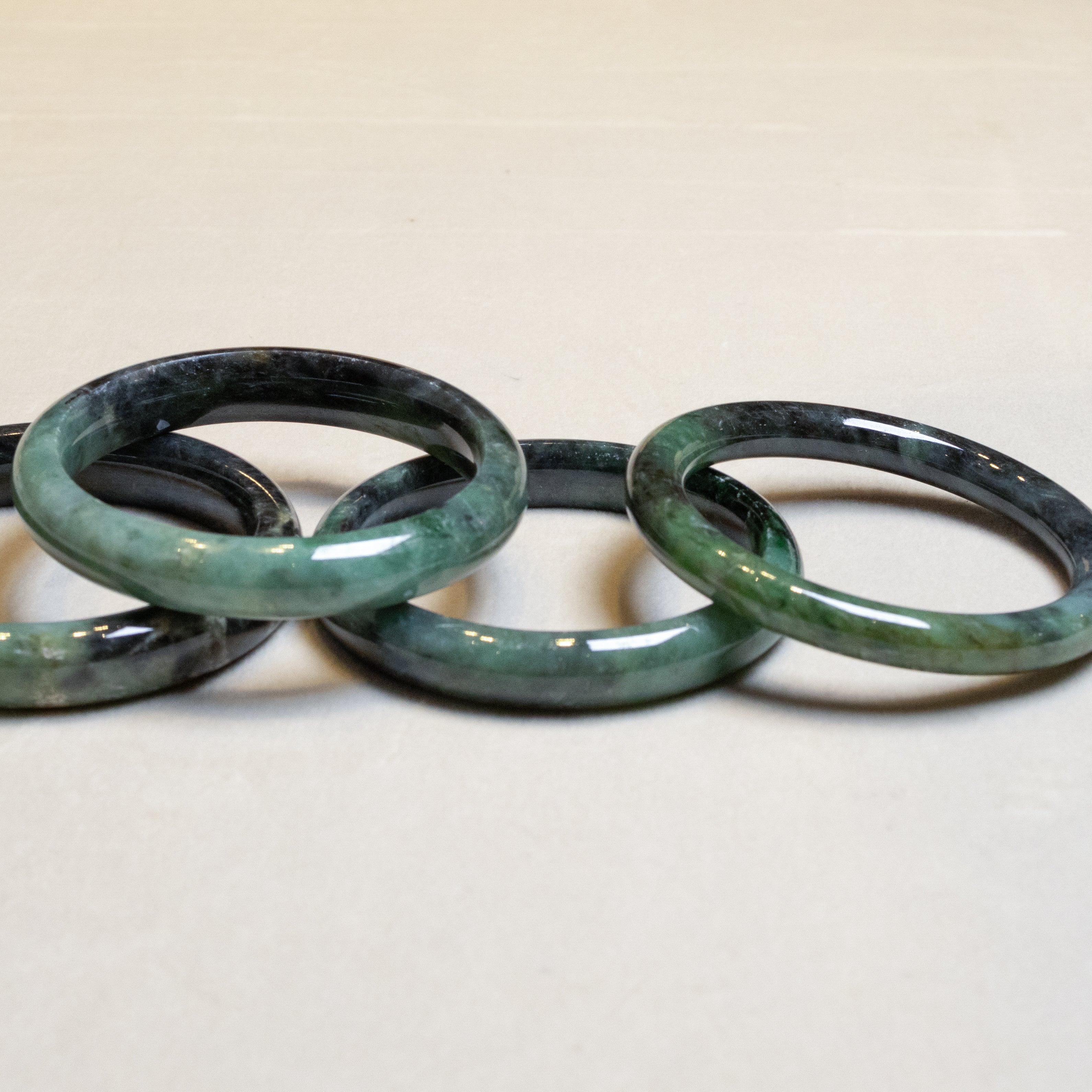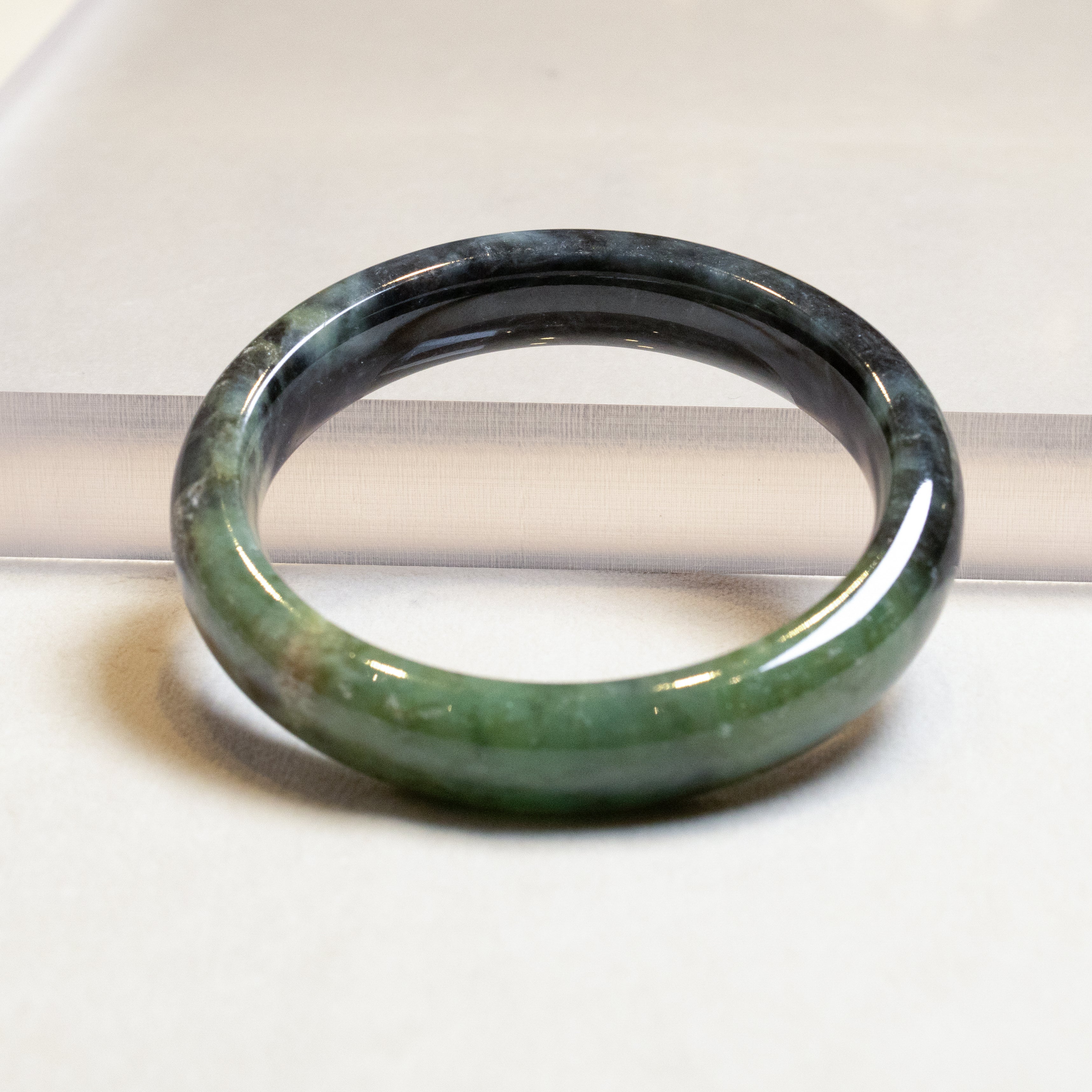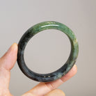 58-60mm Green and Black Jadeite Flat Bangle Bracelet
