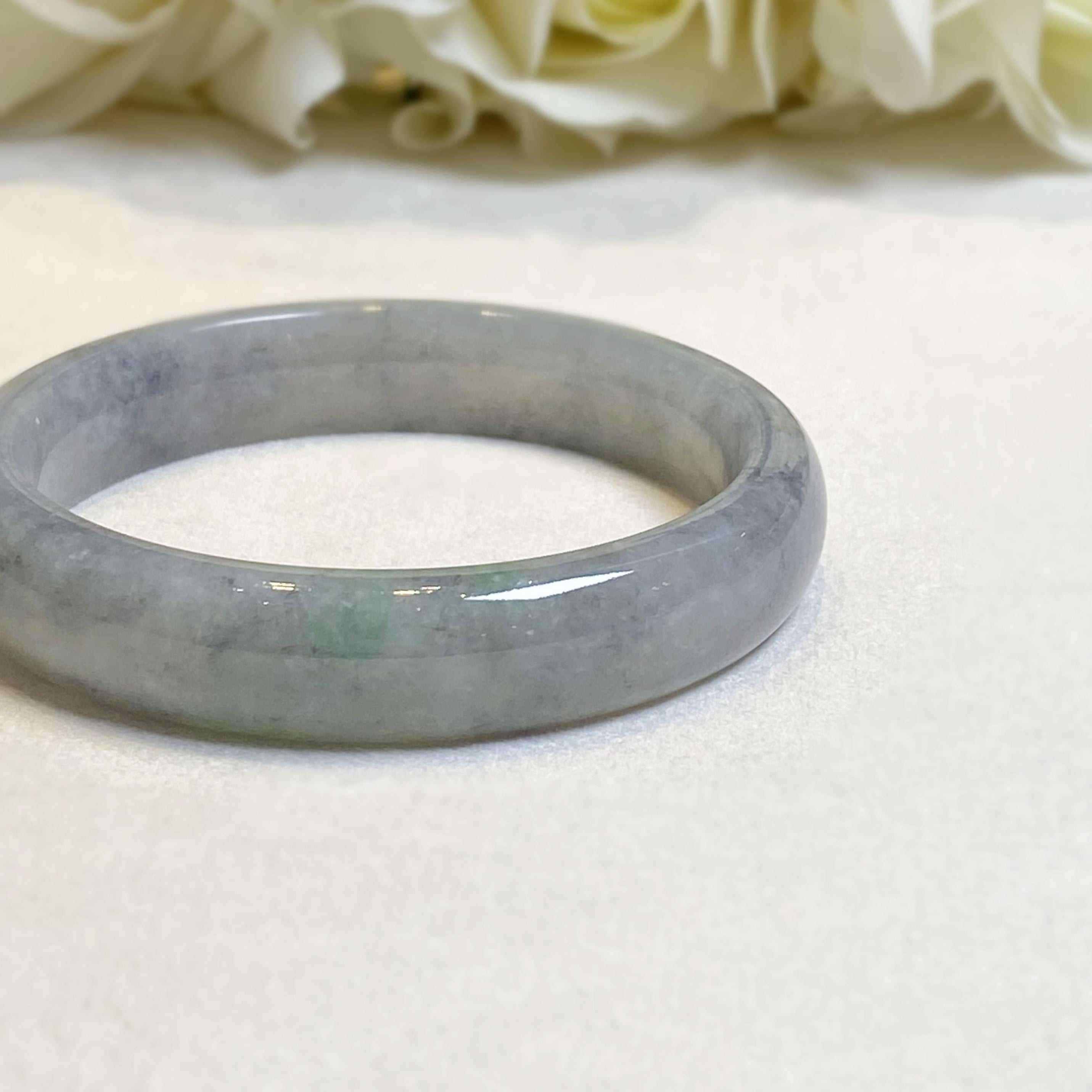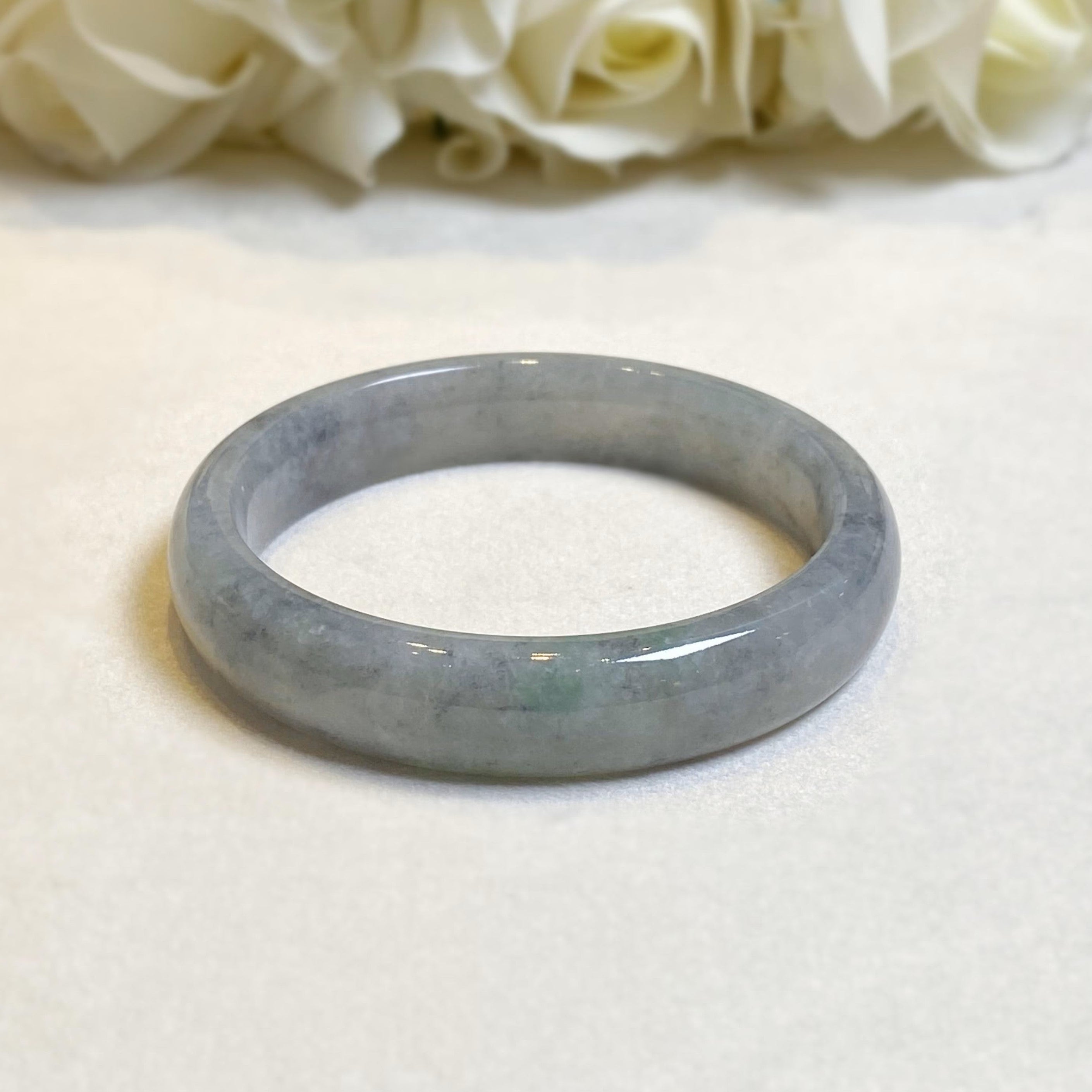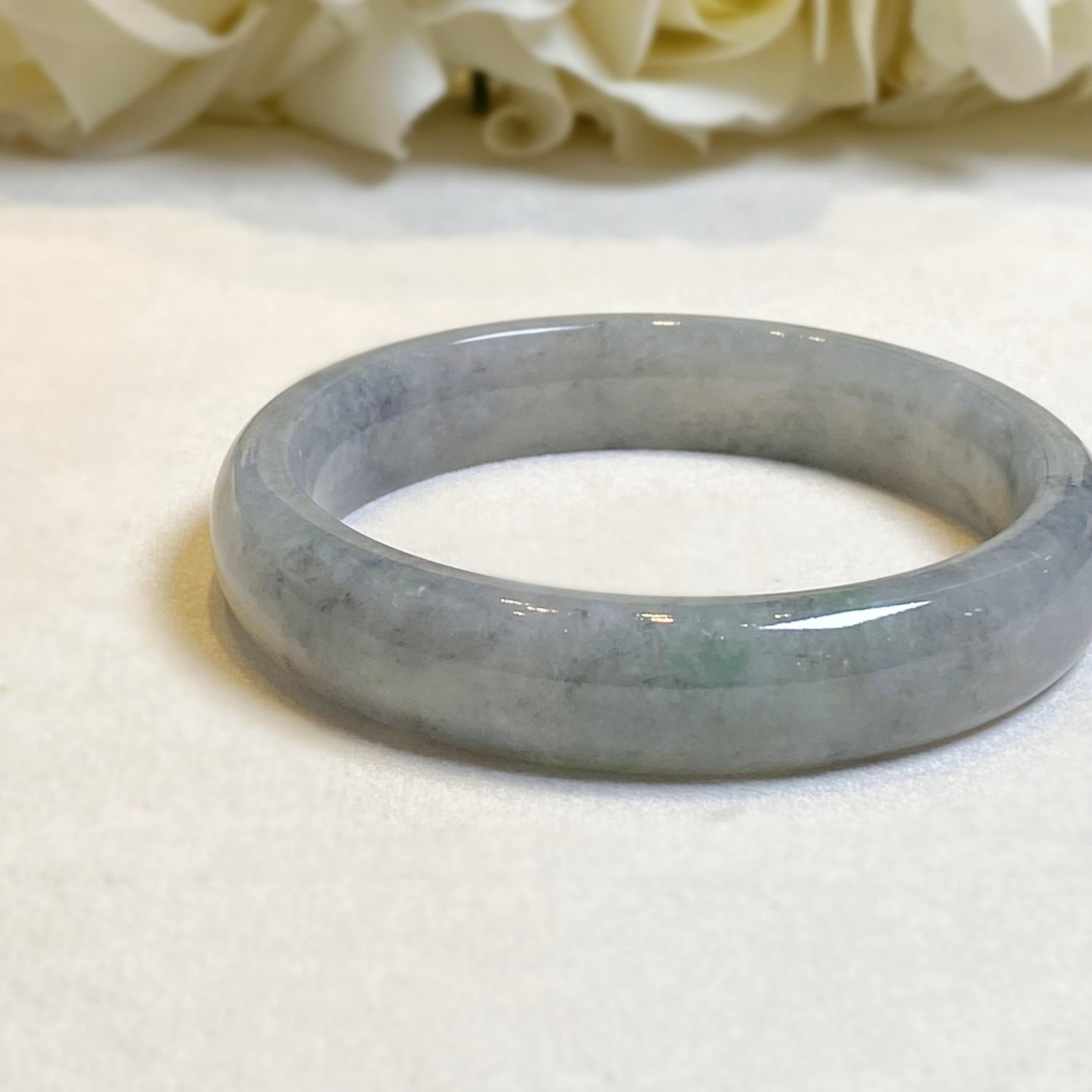 Grey Jade Bangle 56-58mm – Natural Type A Burmese Jadeite, Flat Bangle