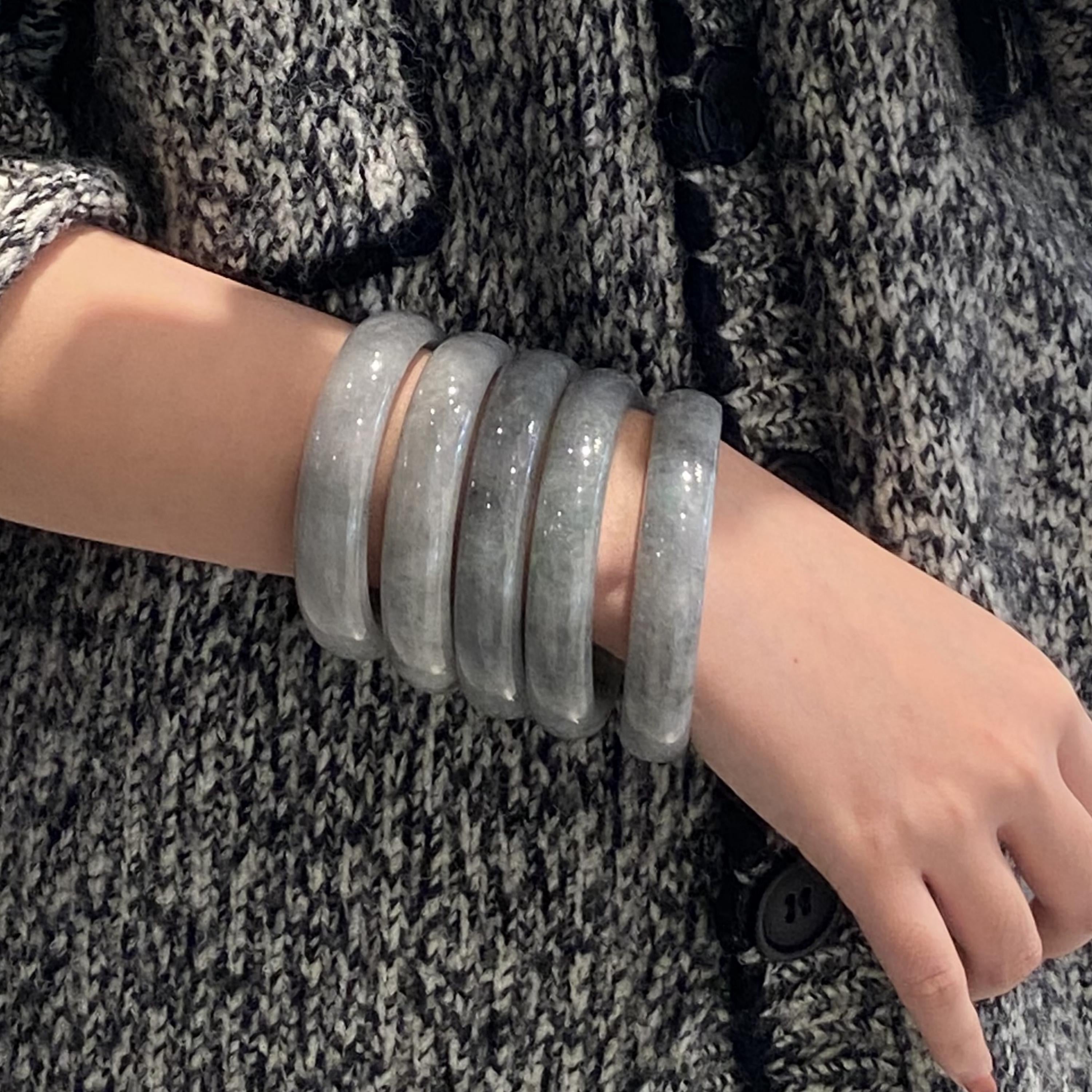 ✅These flat grey jade bangle is crafted from natural, untreated Type-A Burmese jadeite, showcasing a striking translucent grey hue. Each bangle is fully handcrafted and available in inner diameter sizes 56-58mm—with limited stock available. A timeless and collectible jade piece, perfect for daily wear or gifting.