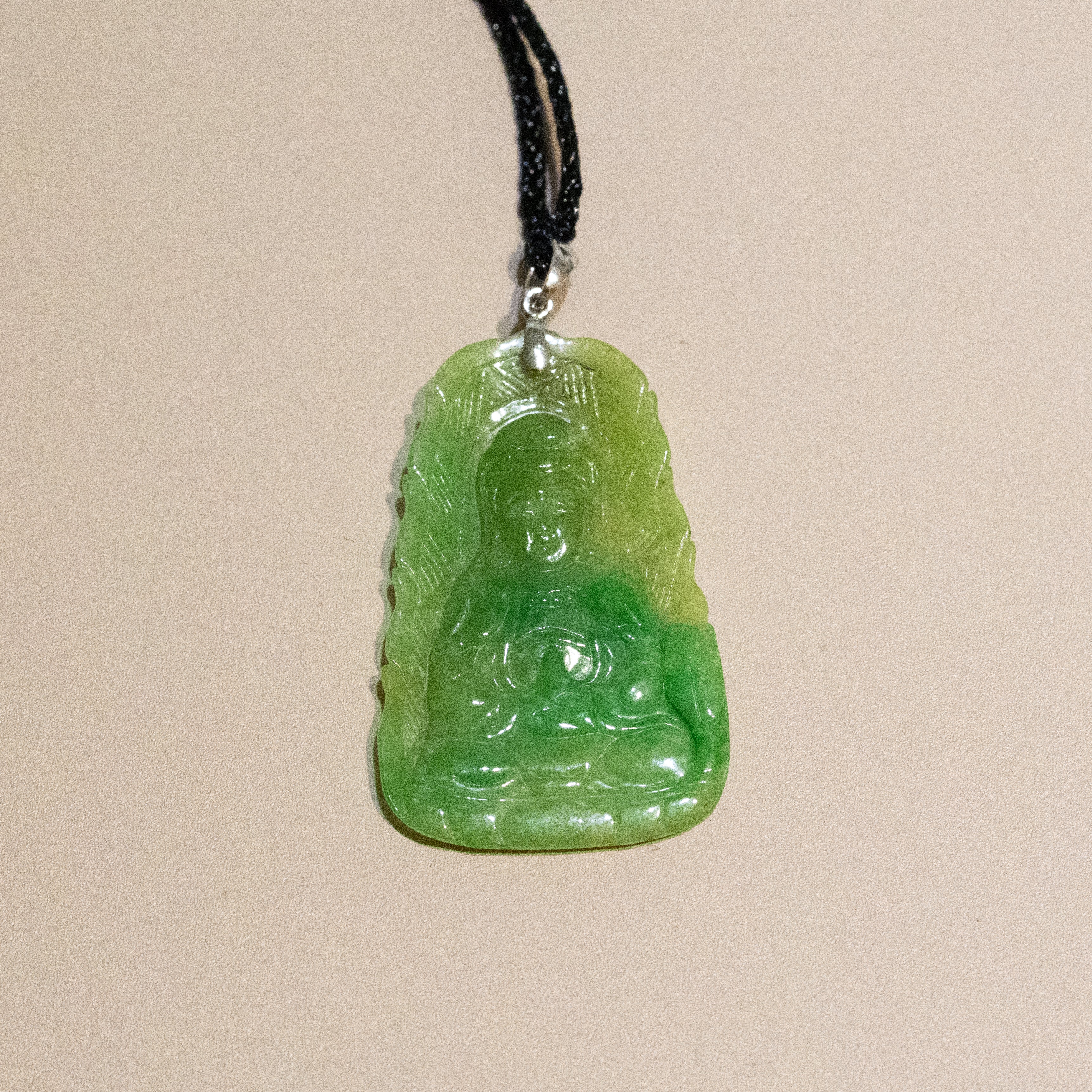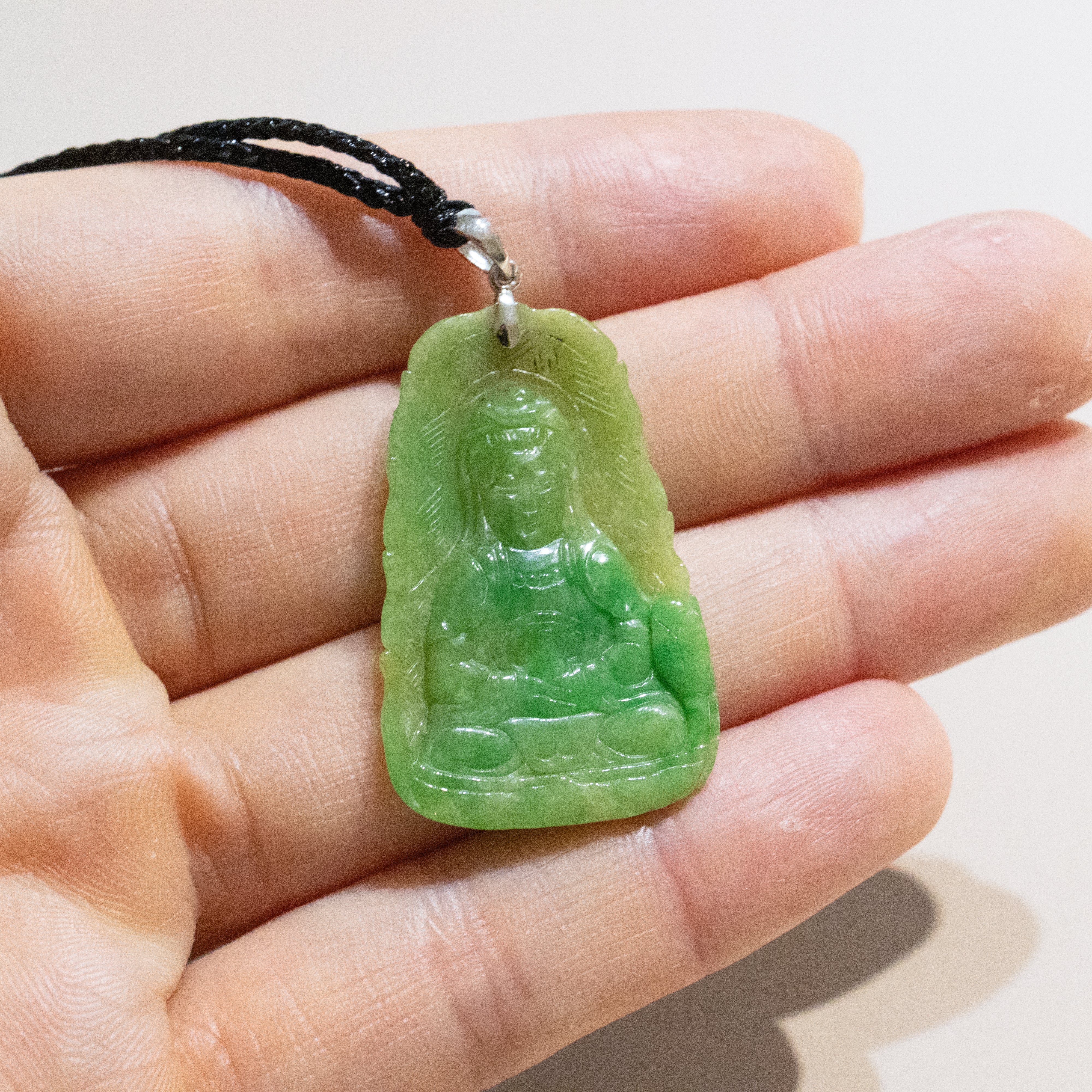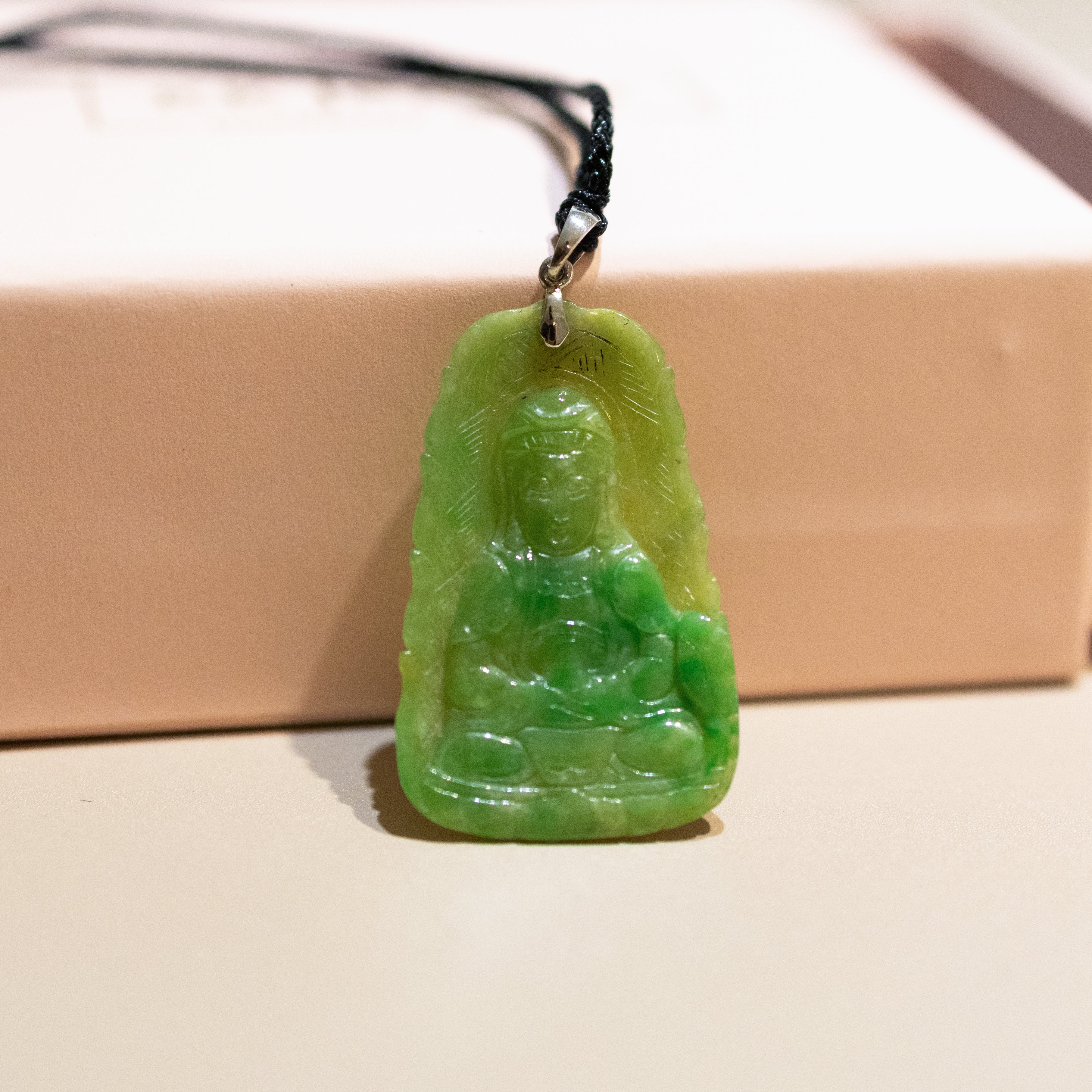 Symbolizing compassion, protection, and serenity (Guanyin, the goddess of mercy, is a revered figure in Asian culture), this exquisitely carved jade pendant is both a spiritual talisman and a statement of refined taste. Its versatile design pairs effortlessly with casual or formal wear, making it a meaningful gift or a cherished addition to any jewelry collection.