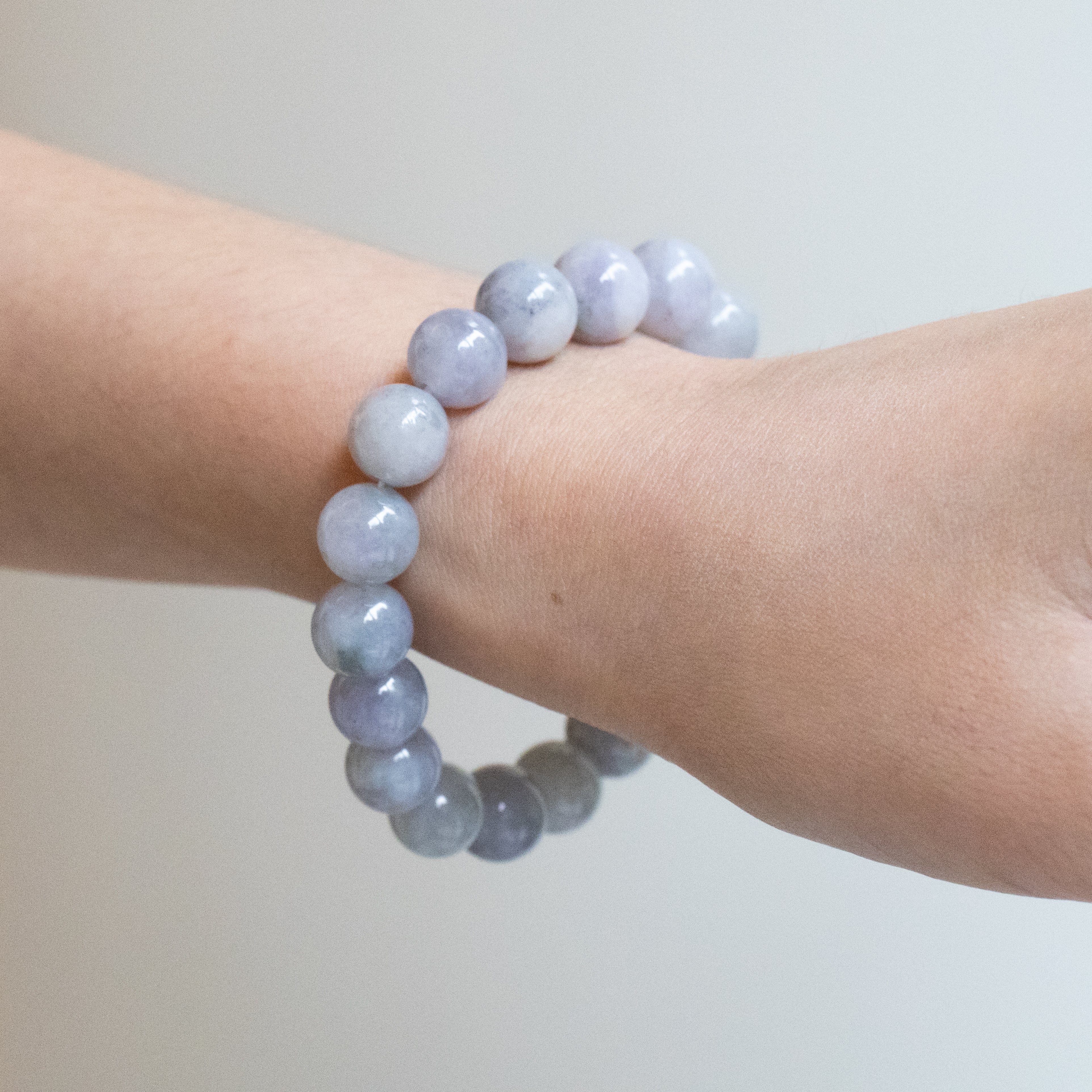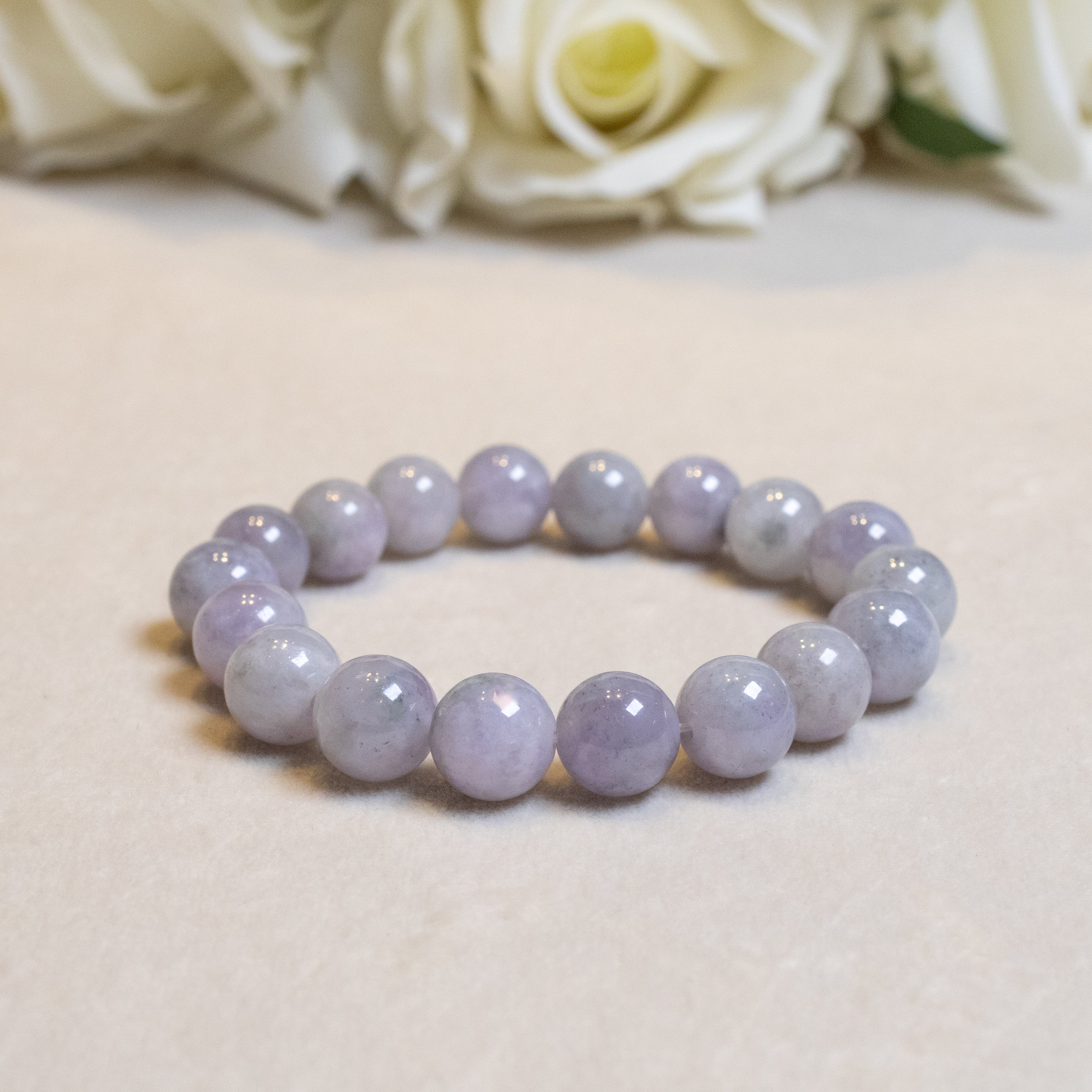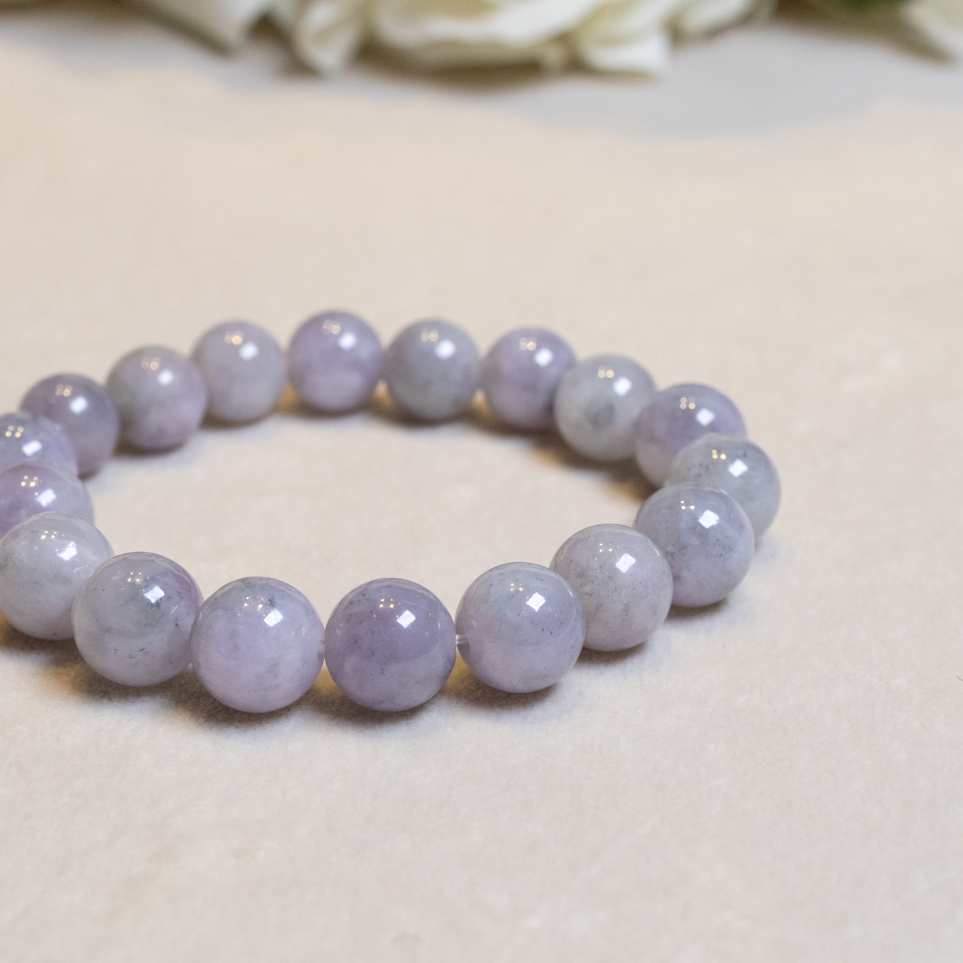 ✅An exquisite bracelet showcasing rich, deep purple Burmese jadeite beads, each naturally formed with unique color distribution throughout each jade bead and polished to a luminous finish. The Type-A 10mm jade beads radiate a calm, grounding energy and are strung securely on a flexible elastic cord for a comfortable fit. Designed with refined simplicity, this bracelet pairs effortlessly with both modern and traditional looks.