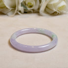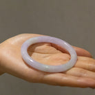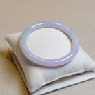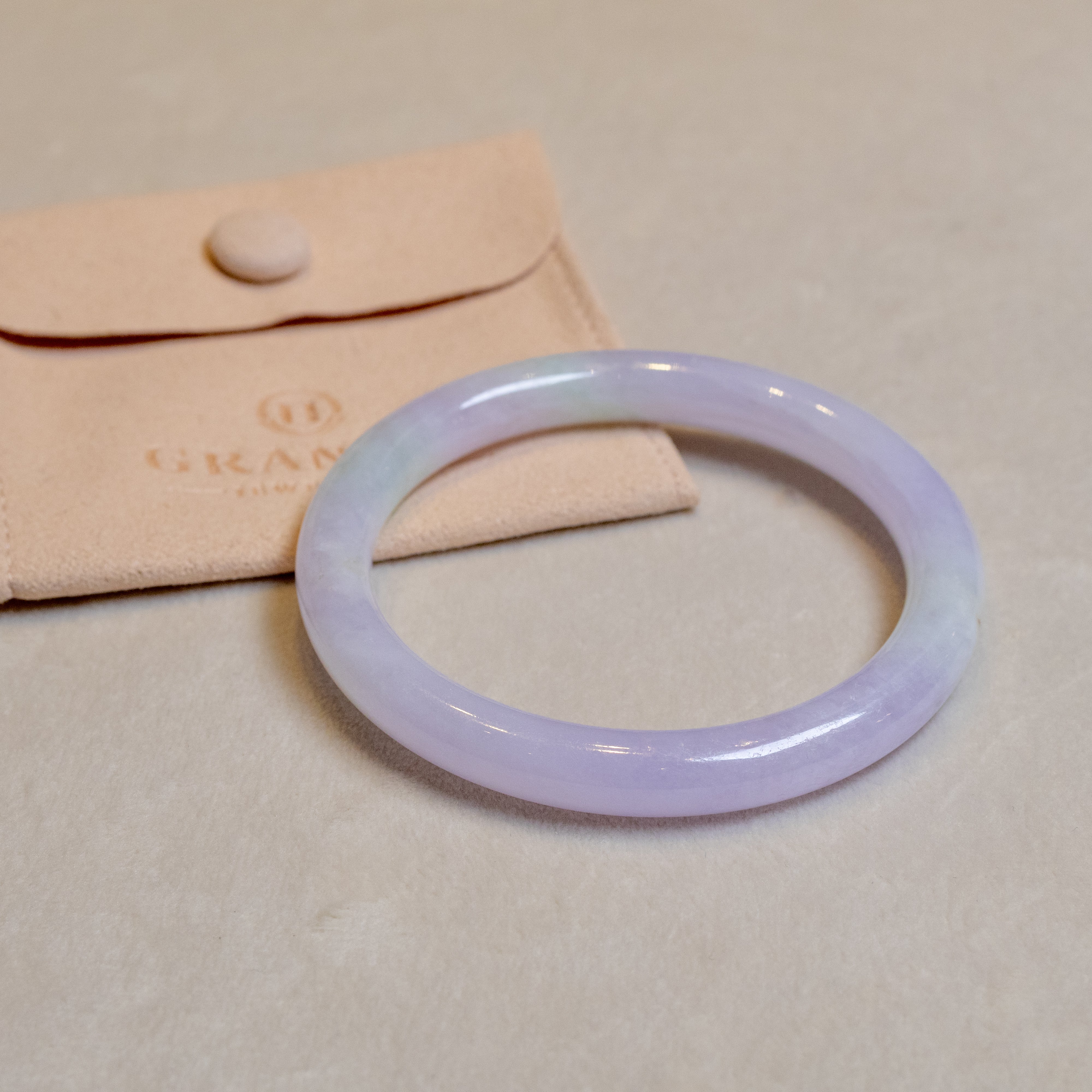 ✅This exquisite jadeite bangle features untreated Type-A Burmese jadeite, showcasing a sweet purple color evenly distributed throughout, with a striking bright vivid green spot on one side. Crafted in a classic round shape with a 55.6mm inner diameter, it ensures a comfortable fit and timeless elegance. Known for its harmonizing properties, this bangle is perfect for meditation, mindfulness, or as a meaningful everyday accessory.
