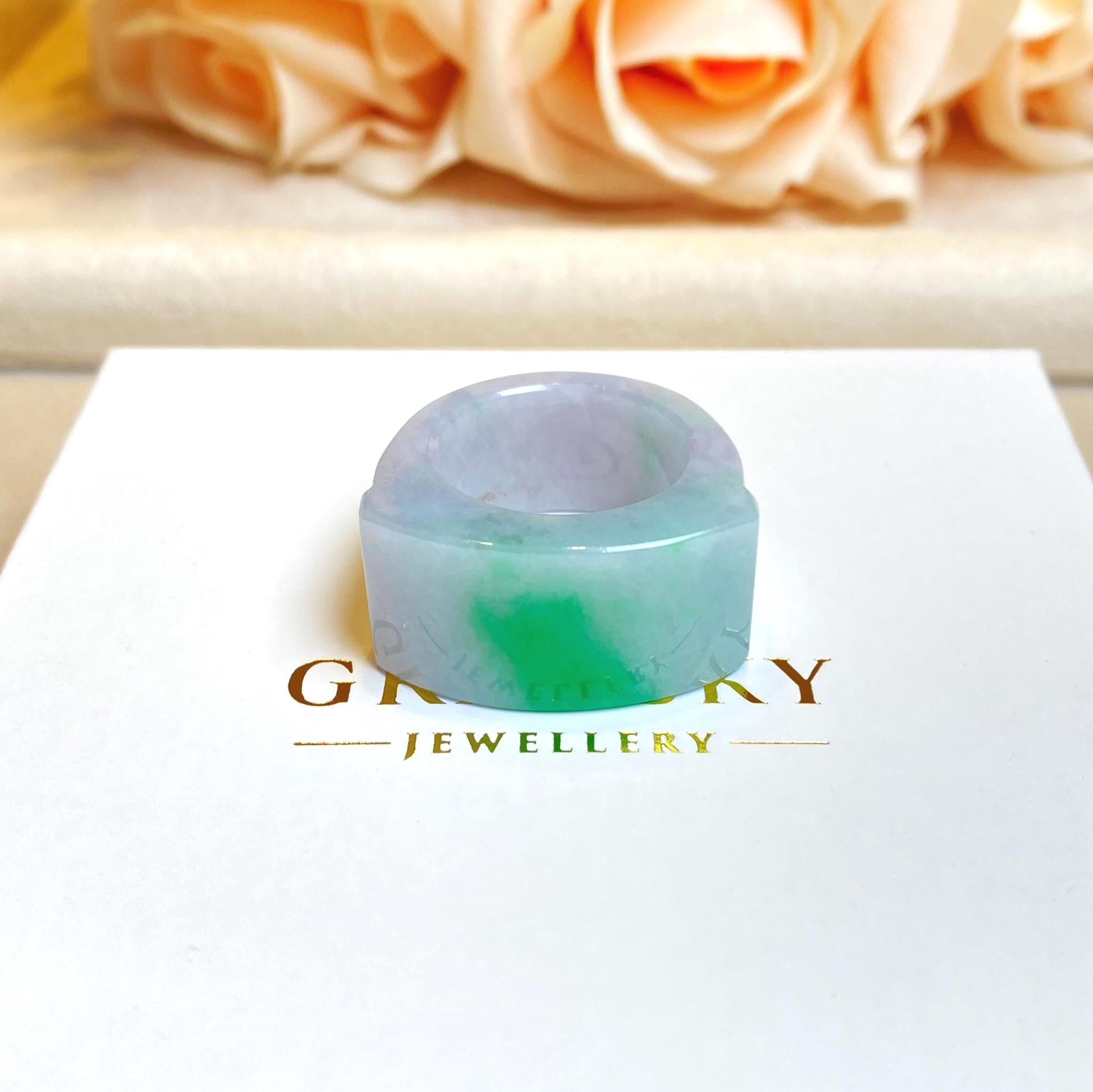 ✅This Type-A Burmese Green Jade Saddle Ring exudes bold sophistication with its striking color contrast. The vibrant green jade gracefully cascades across the top of the saddle design, while the rest of the ring features smooth, luminous white jade—creating a mesmerizing natural pattern. Expertly crafted for a flawless fit, this ring is sized at US 9.25 (inner diameter 19.2mm). A rare and captivating piece, it symbolizes passion and purity, making it a standout gift or a treasured addition to any jewelry collection.