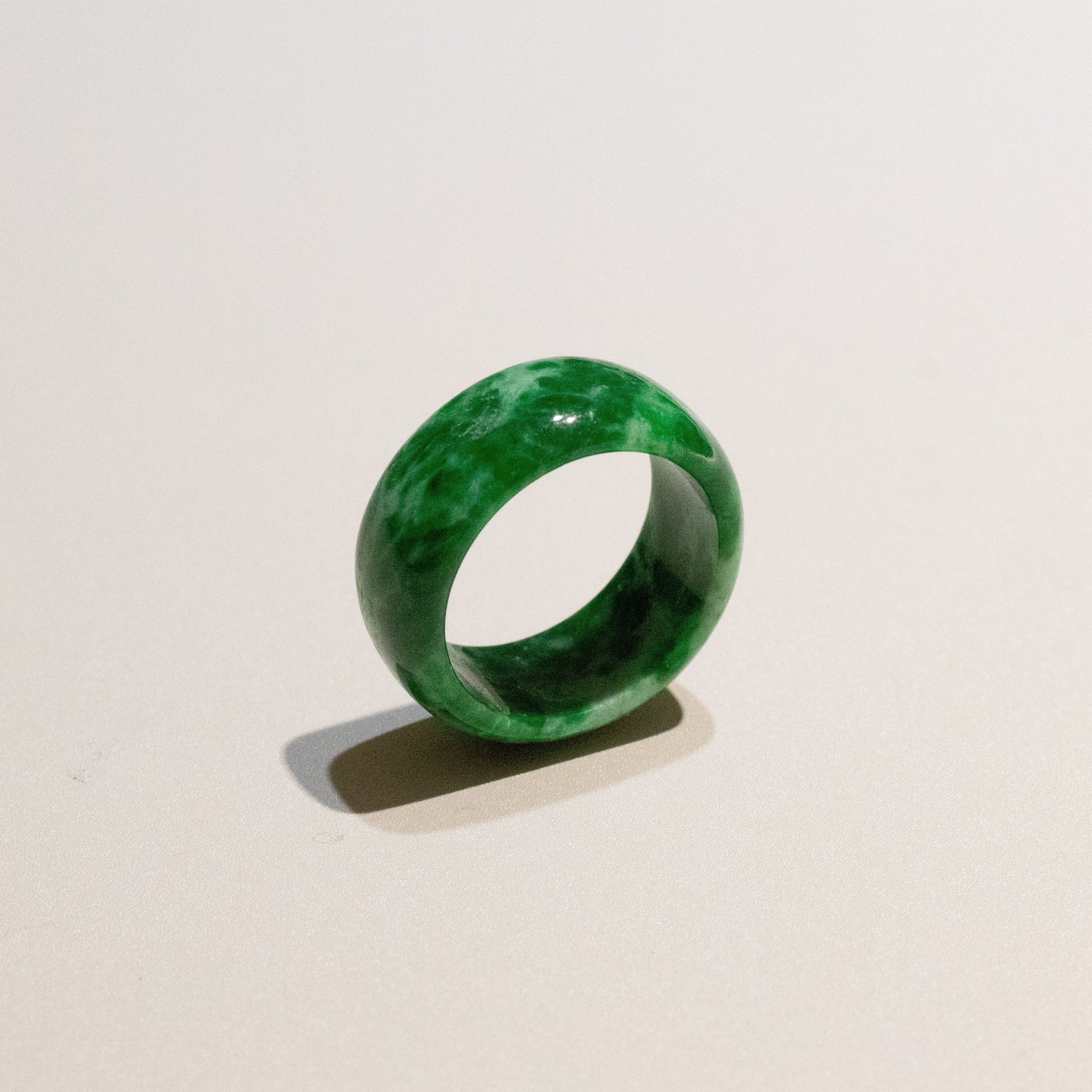 ✅These Type-A Burmese Green Jade Saddle Rings exude bold sophistication with its striking color contrast. The intense green jade gracefully cascades across the top of the saddle design, while the rest of the ring features smooth, luminous white jade—creating a mesmerizing natural unique pattern. Expertly crafted for a flawless fit, these rings are available in sizes US 6 (inner diameter 16.6mm). A rare and captivating piece, it symbolizes passion and purity, making it a standout gift or a treasured addition to any jewelry collection.