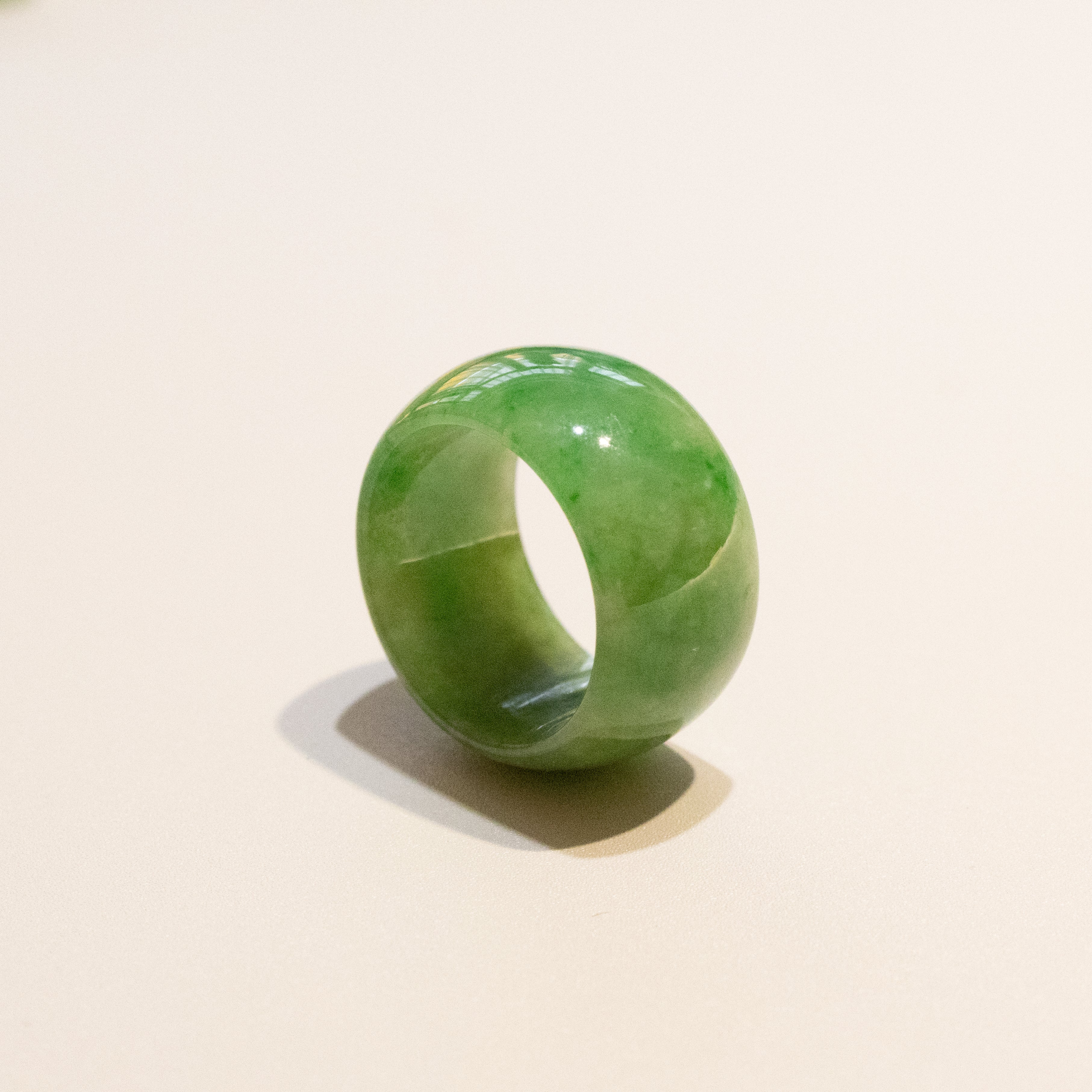 ✅This beautiful ring showcases imperial green natural Type-A Burmese jade in a intense green hue, a rare and coveted quality that radiates elegance and sophistication. Crafted to fit a US size 7.5, with a refined wide jade band width of 12.3mm, this versatile piece is designed to suit both men and women, making it a timeless addition to any jewelry collection. The intense green jade, known for its calming and balancing properties, symbolizes harmony and emotional well-being. Its exceptional translucency and vibrant color make it a standout piece, perfect for everyday wear or special occasions. Whether as a meaningful gift for a loved one or a cherished addition to your own collection, this Burmese jade ring is a symbol of beauty, rarity, and connection.