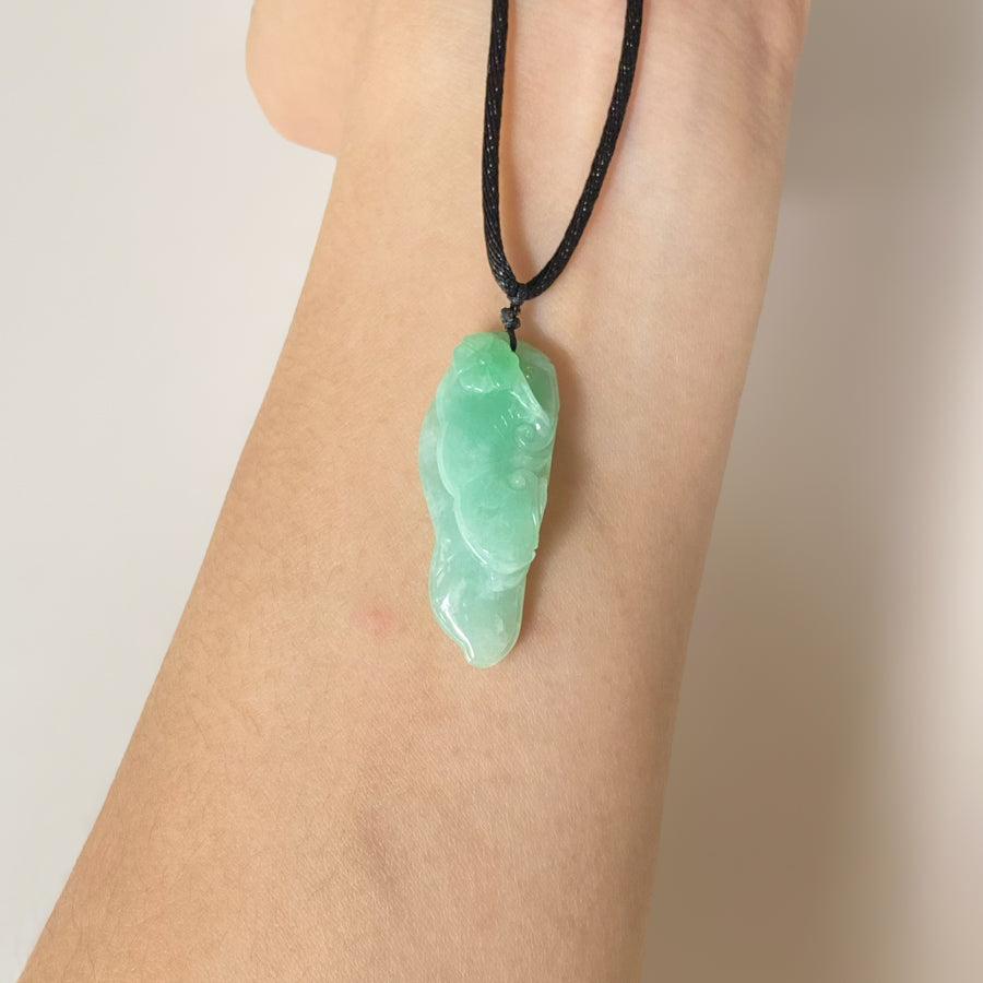 Apple Green Carved Pepper Ruyi Jade Pendant - Type A Burmese Jadeite