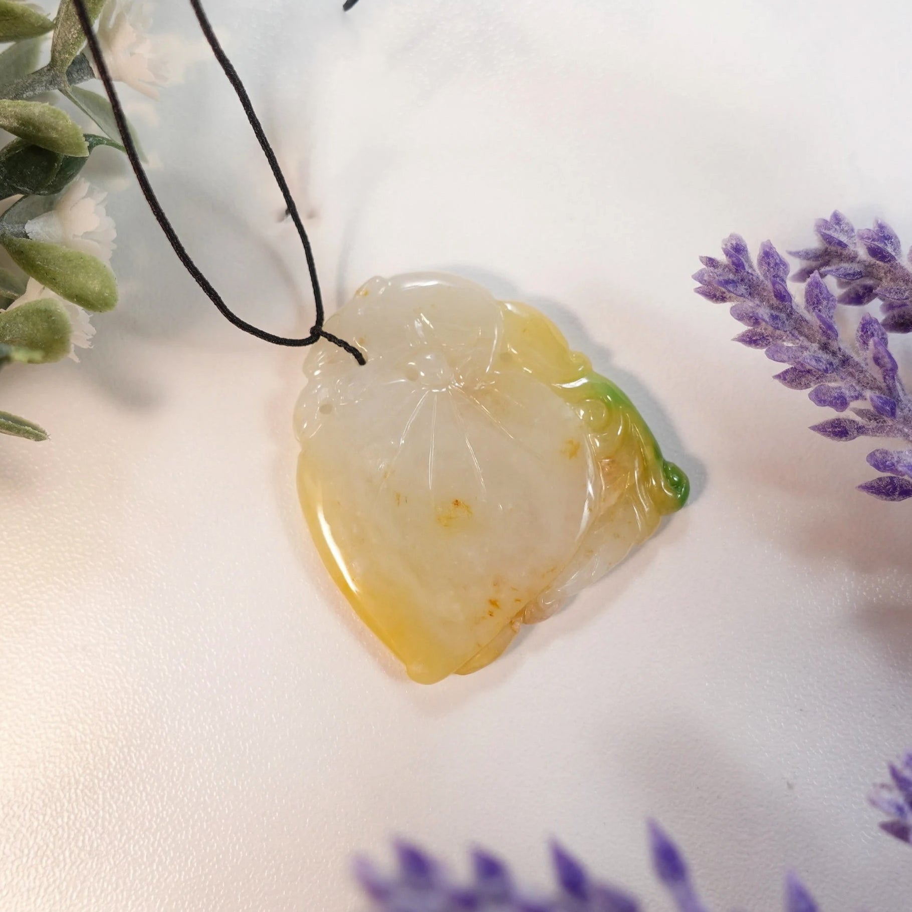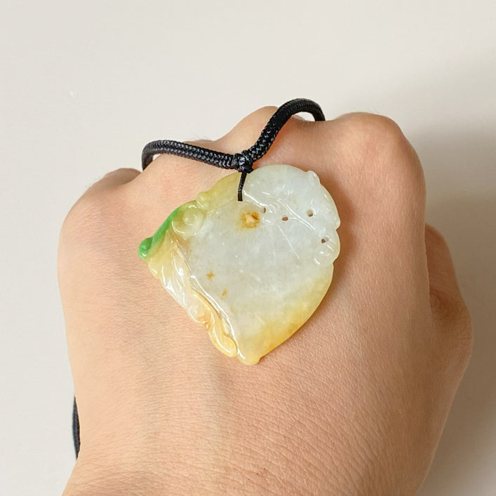 Yellow Peach-Shaped Carved Jadeite Pendant Necklace