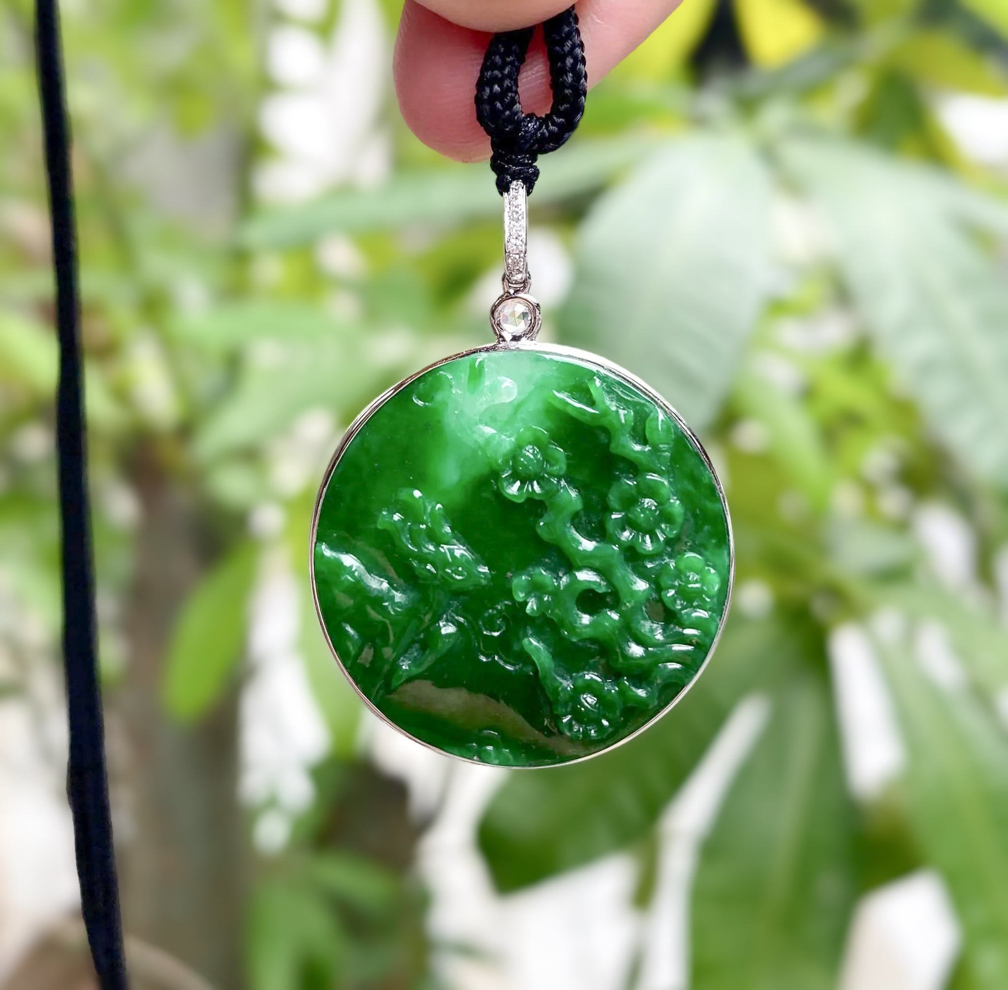 Highly Translucent Bright Green Burmese Jade Disc Pendant