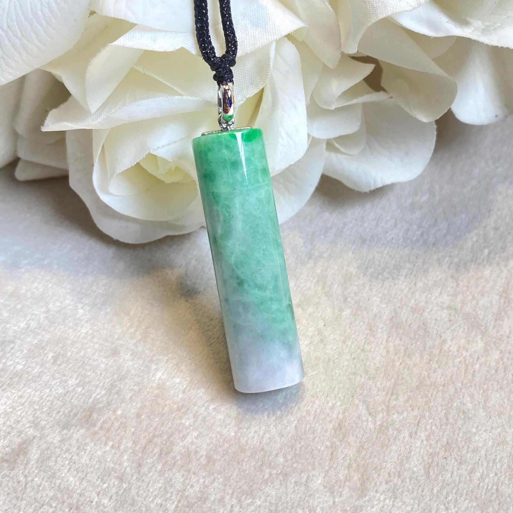 Genuine Green Jade Rod Pendant – Natural Untreated Burmese Jadeite