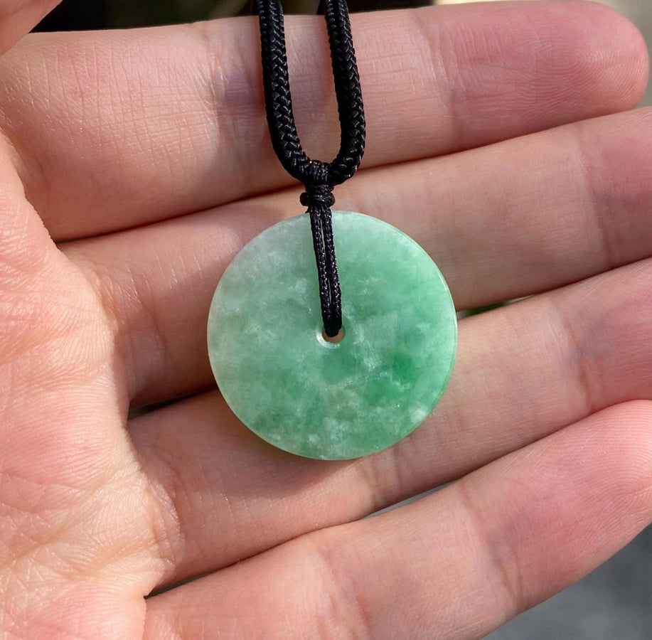 Delicate Green Round Disc Jade Pendant - 24.5mm Width Adjustable Cord