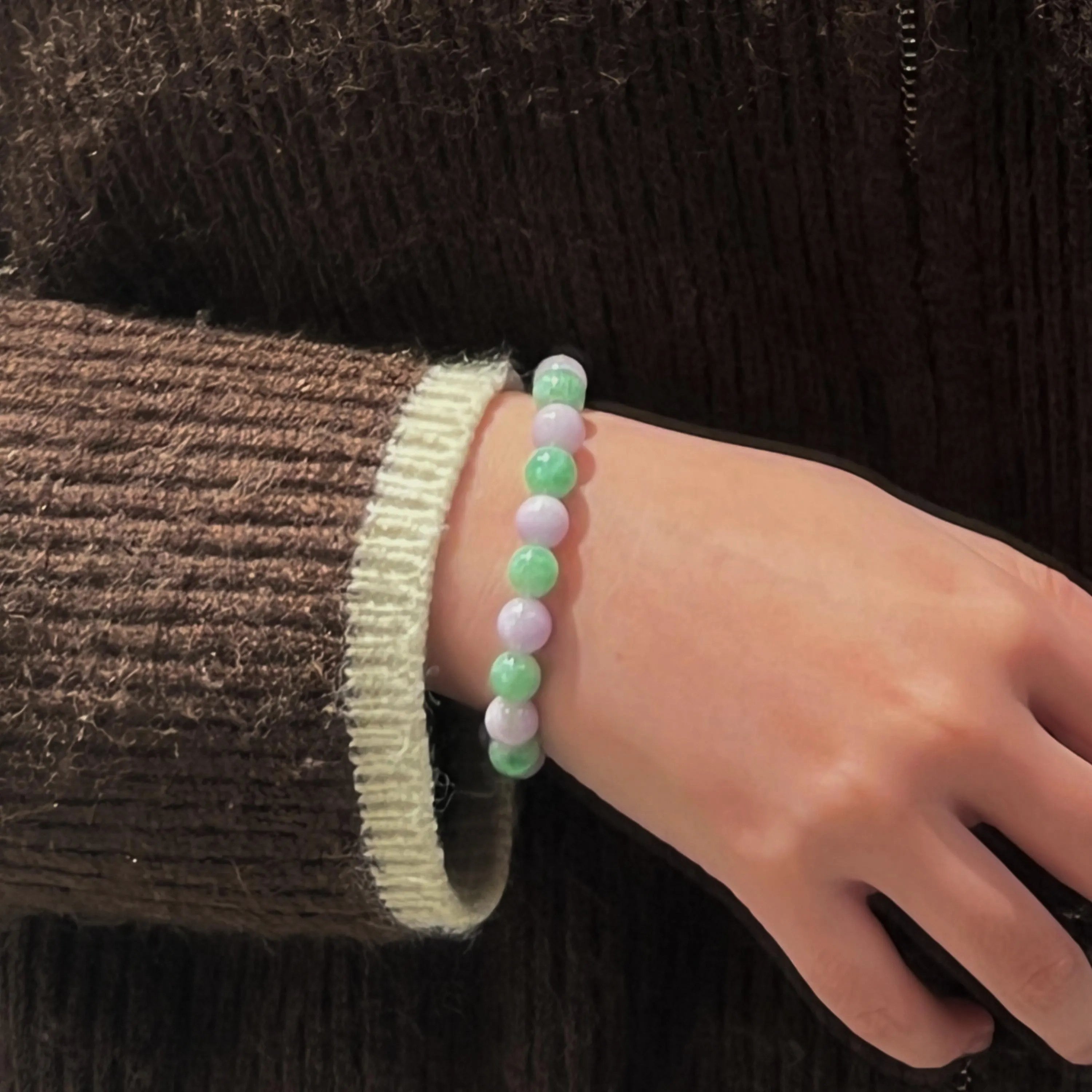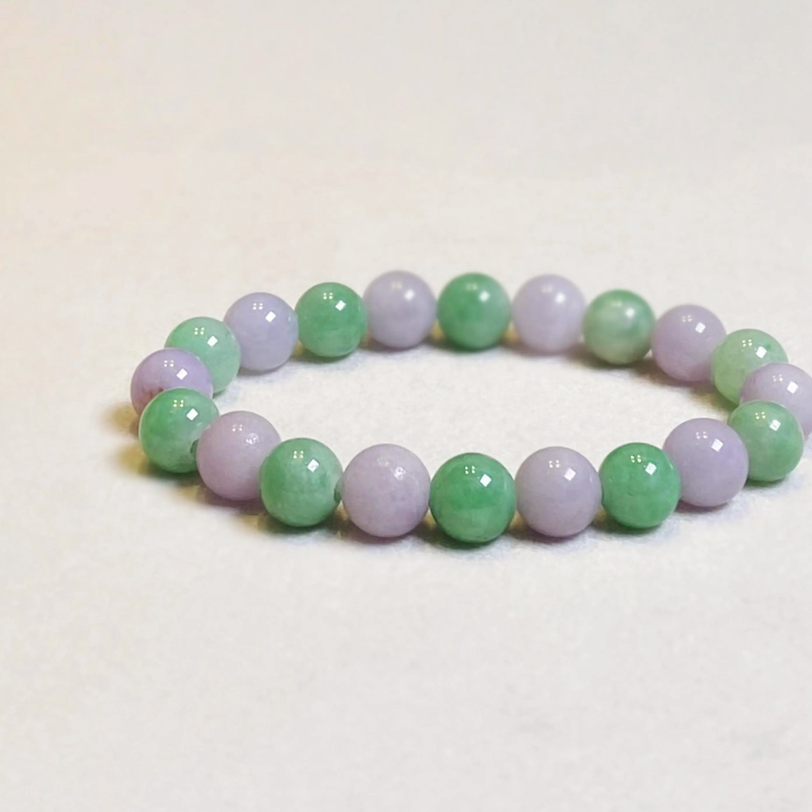 Green & Purple Burmese Jadeite Beaded Bracelet 16.5cm – Grade A Natural Jade