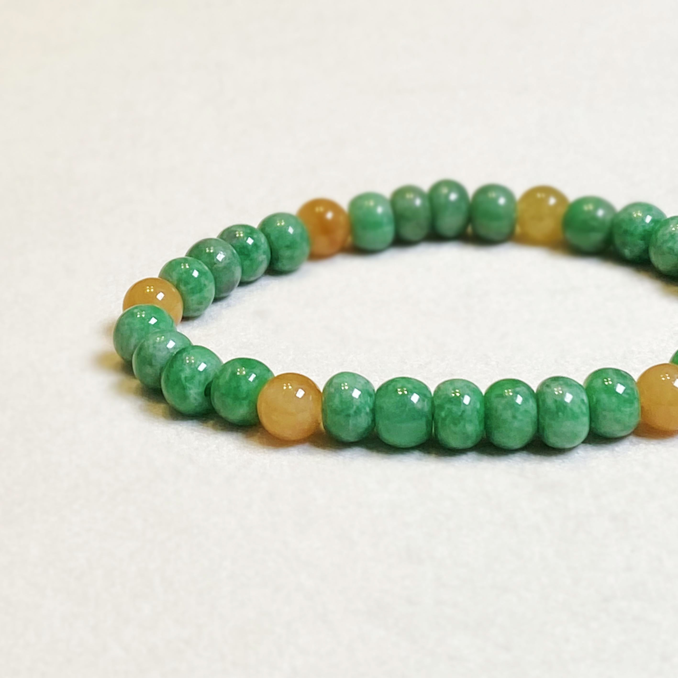 Apple Green Jade Beaded Bracelet - Natural Type-A Burmese Jadeite, Elastic Band