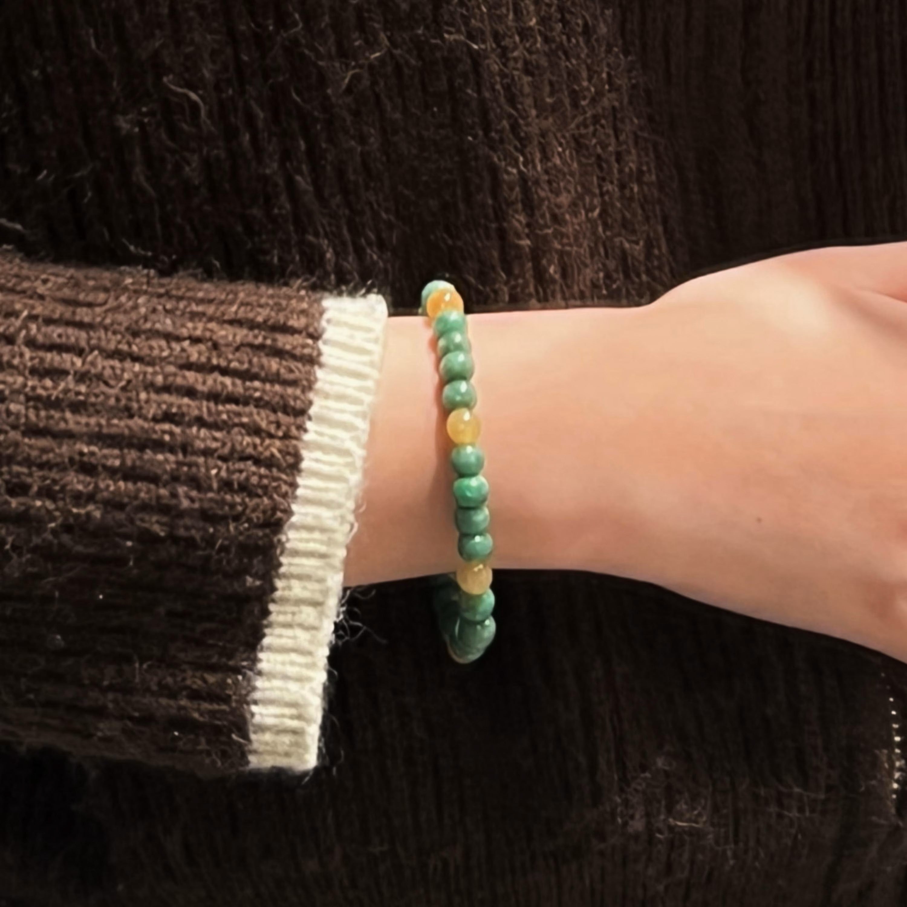 Green & Brown Jade Bead Bracelet 18cm – Natural Burmese Type A Jadeite