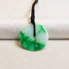 ✅This beautifully crafted pendant features a round donut shape in imperial green jade, showcasing a captivating unique color distribution that transitions smoothly across the piece. Renowned for its calming and protective properties, this jade pendant promotes harmony and balance, making it a perfect accessory for everyday wear. This exquisite piece not only enhances your style but also serves as a meaningful reminder of mindfulness and spiritual connection, making it an ideal gift for someone you cherish.