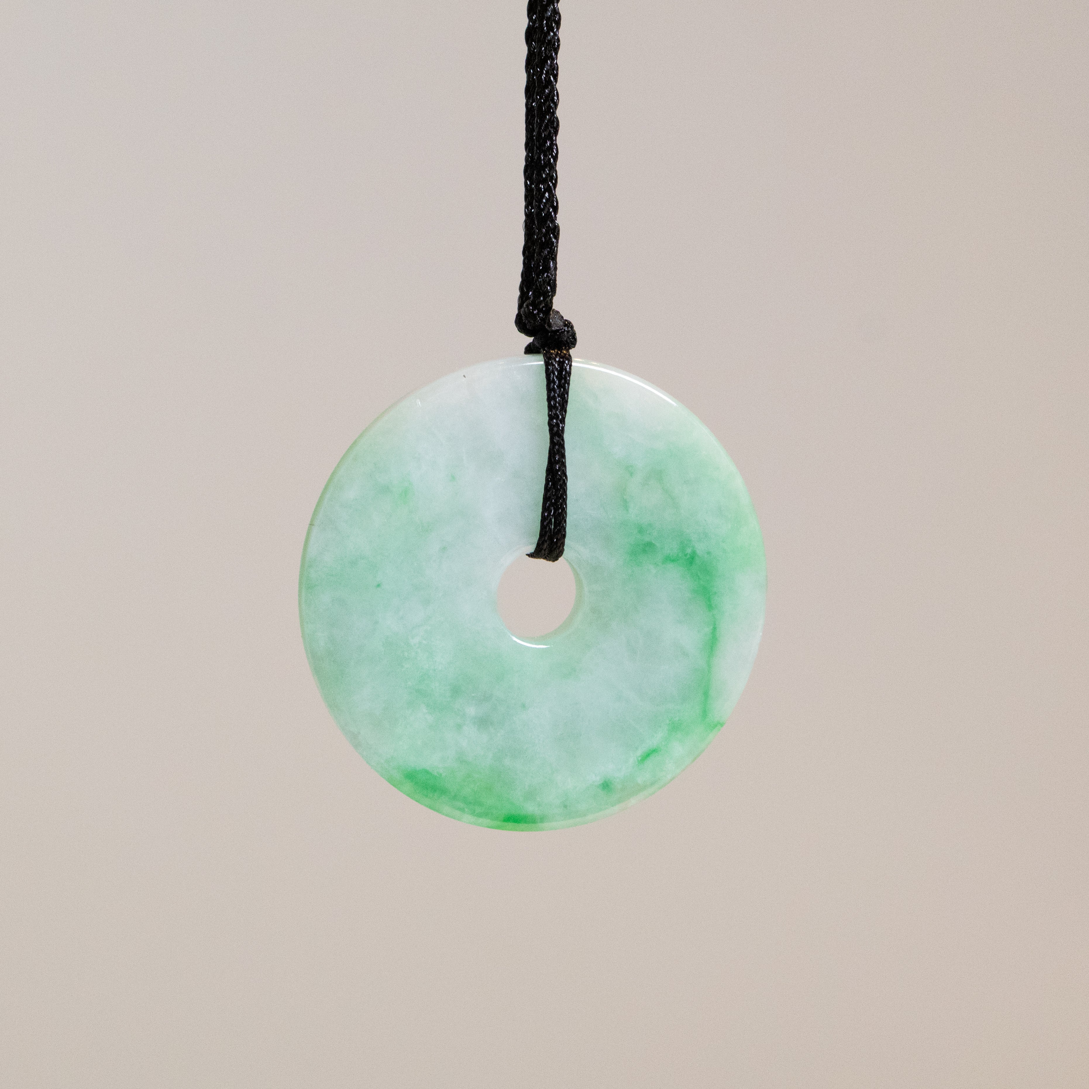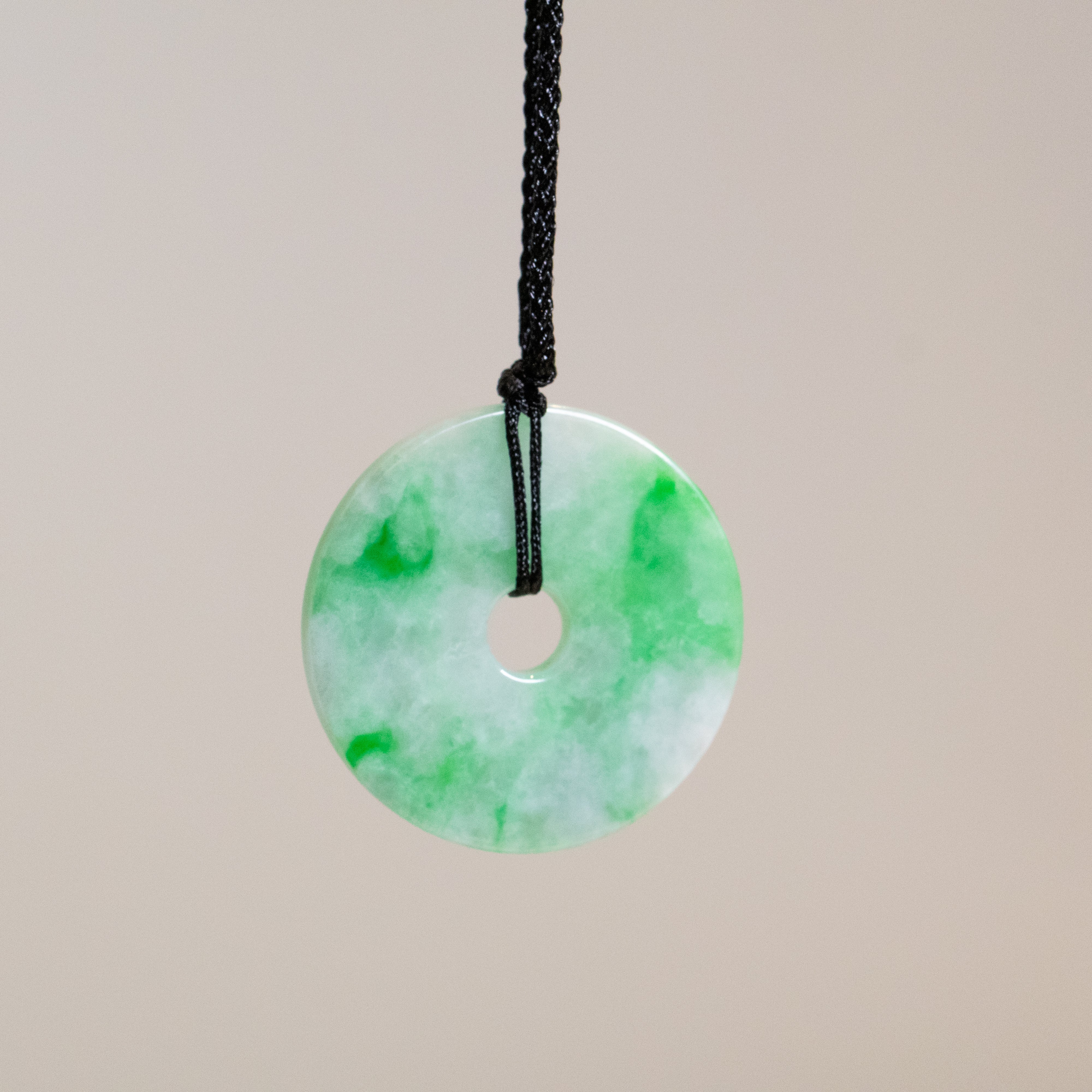 Green Jade Round Donut Pendant 32mm - Calming Gemstone