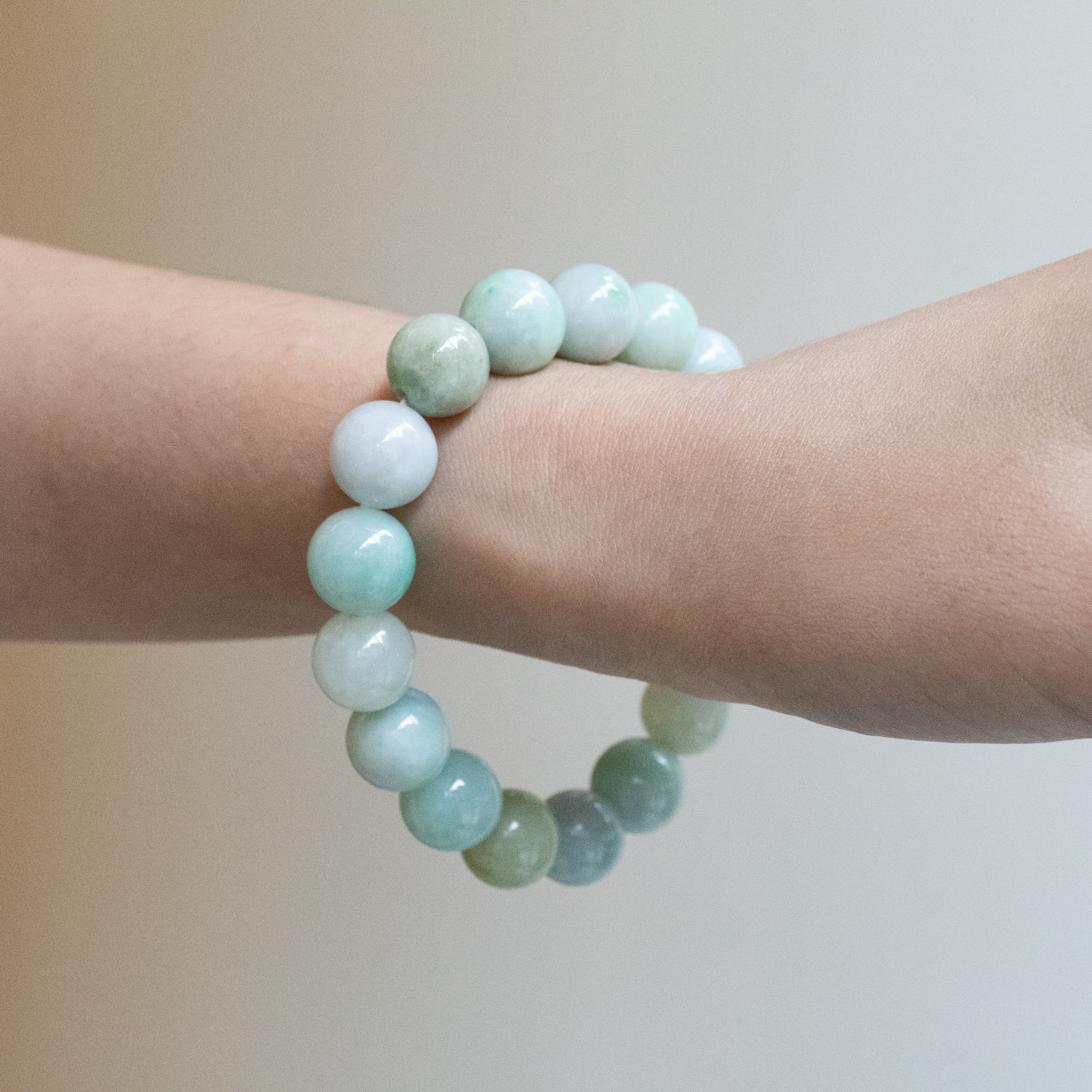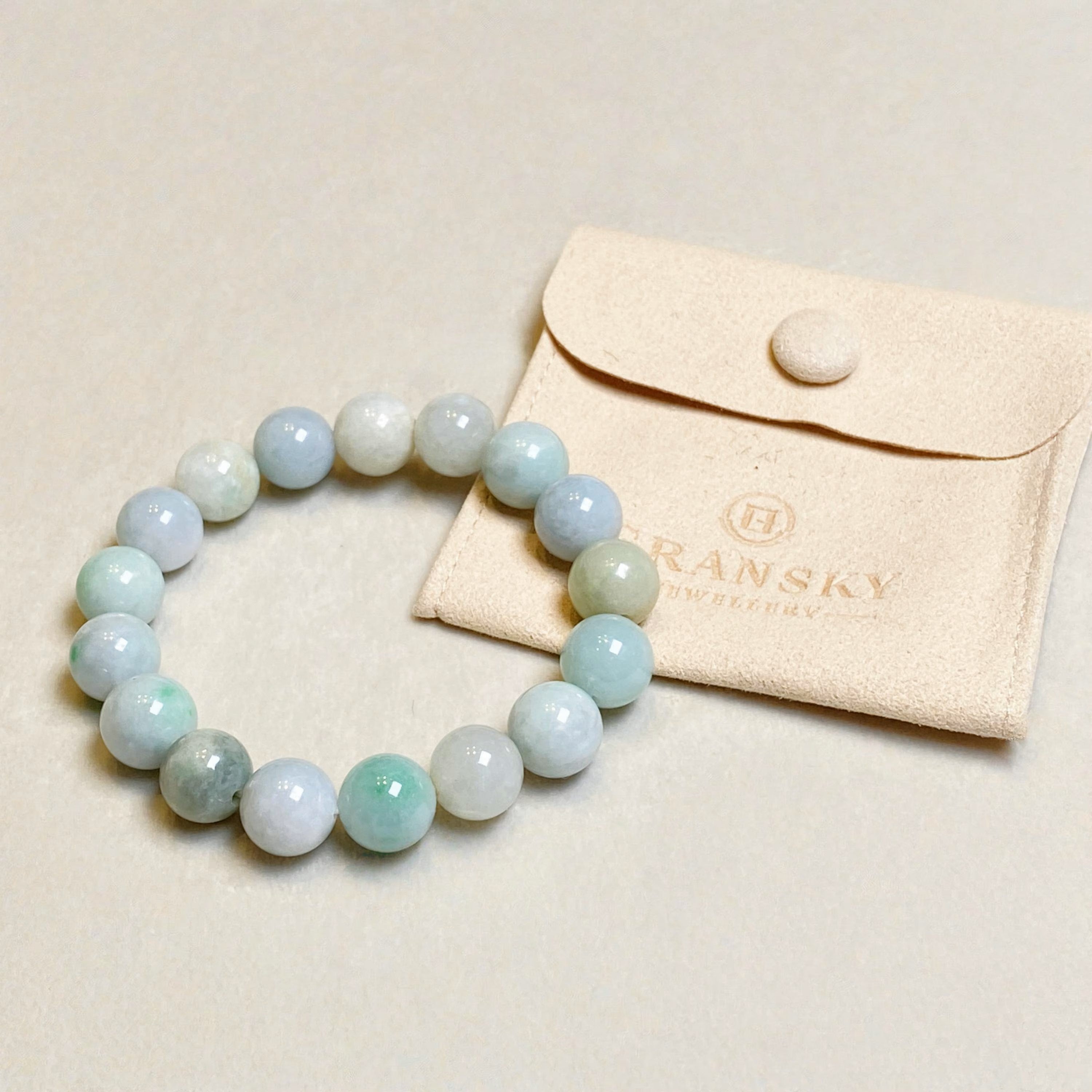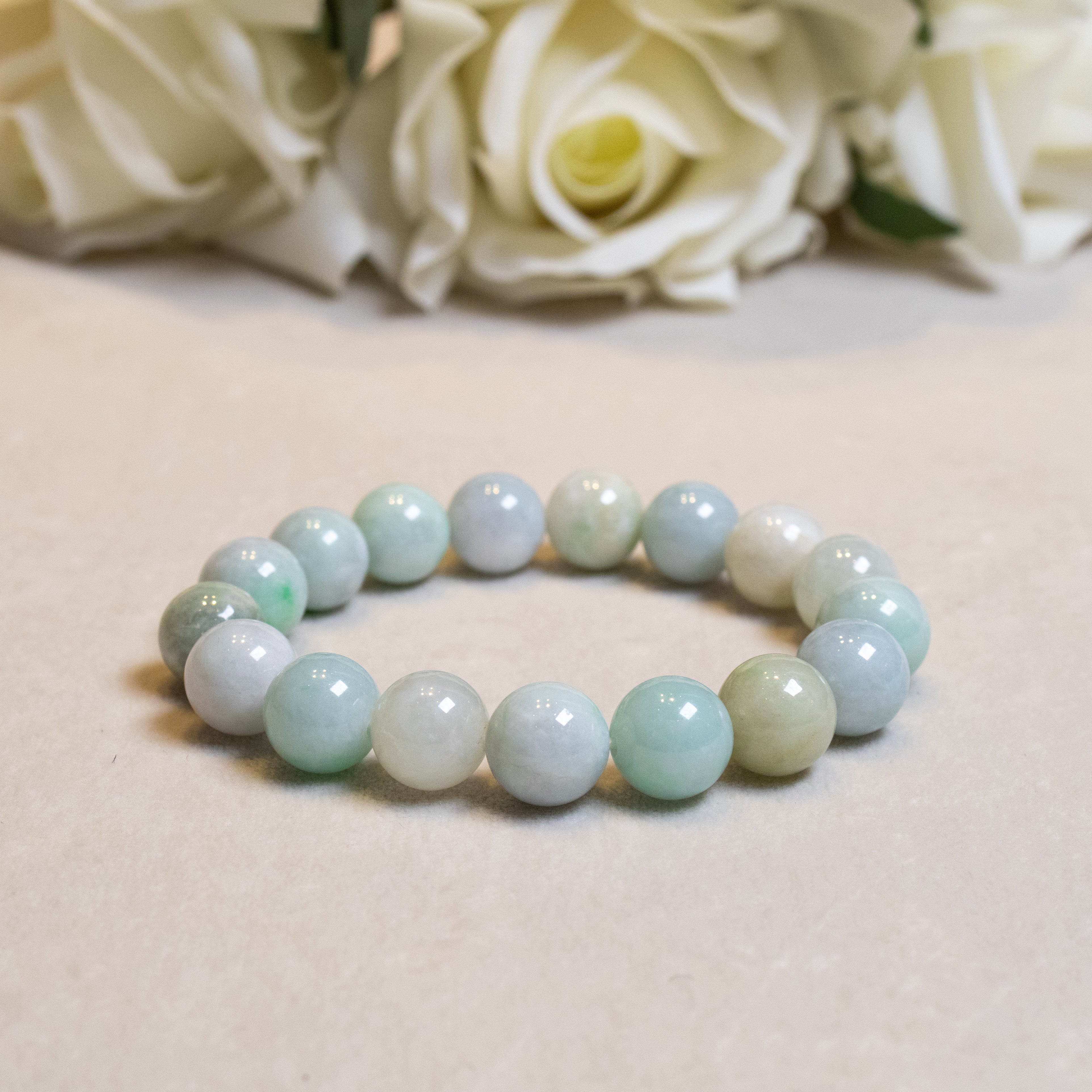 A beautiful jade bracelet crafted from natural Burmese jadeite beads in natural multi-color jade beads, including green, purple, brown. Each bead carries the serene beauty and protective energy that jade has symbolized for centuries. Handcrafted in Hong Kong, this elegant piece of natural jade jewelry is perfect for daily wear, gifting, or as a meaningful heirloom.